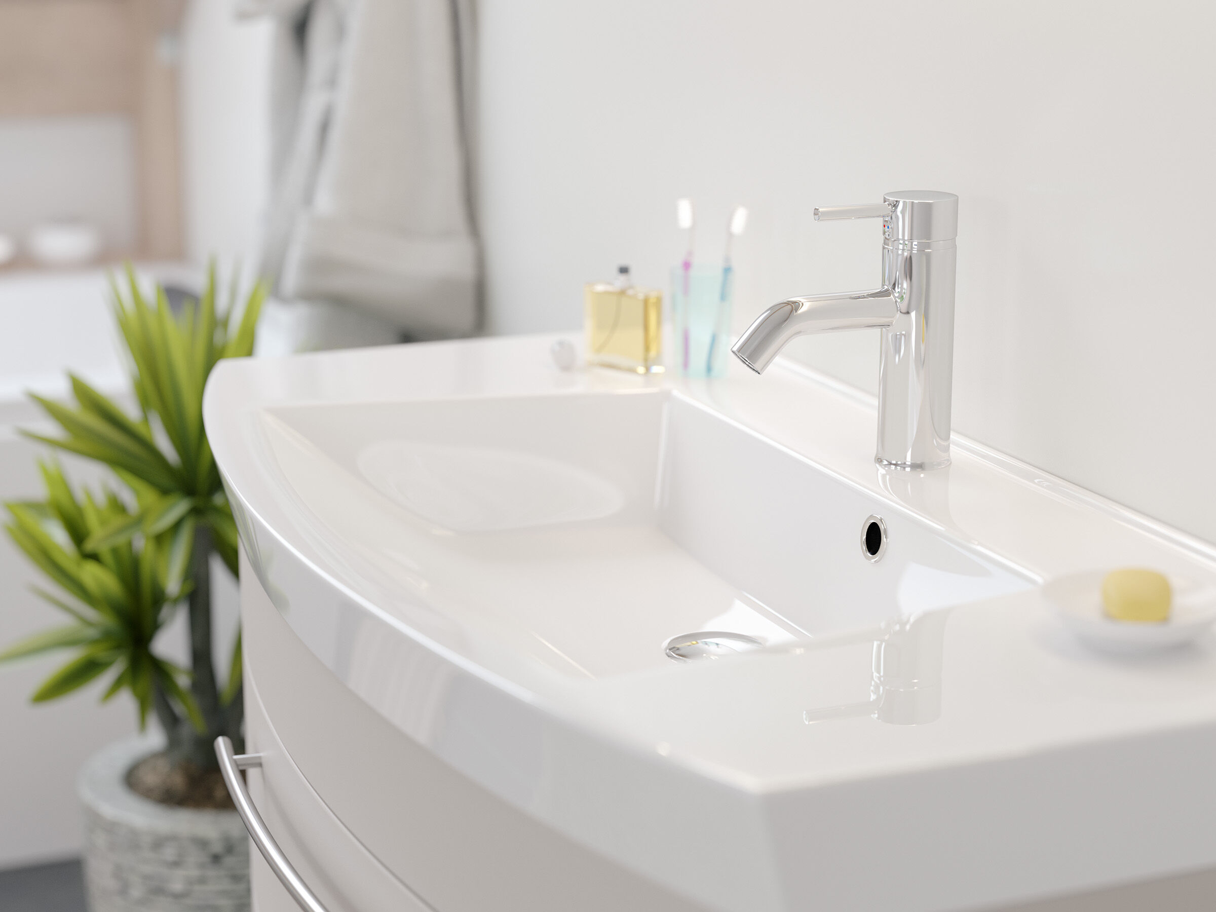 Ein herausragendes Qualitätsmerkmal unserer Badmöbel sind die hervorragend verarbeiteten Oberflächen. Die Beschichtung ist - sowohl über die Frontseite, als auch über die sichtbaren Seitenteile - über die Kanten und Ecken tiefgezogen und weich abgerundet.