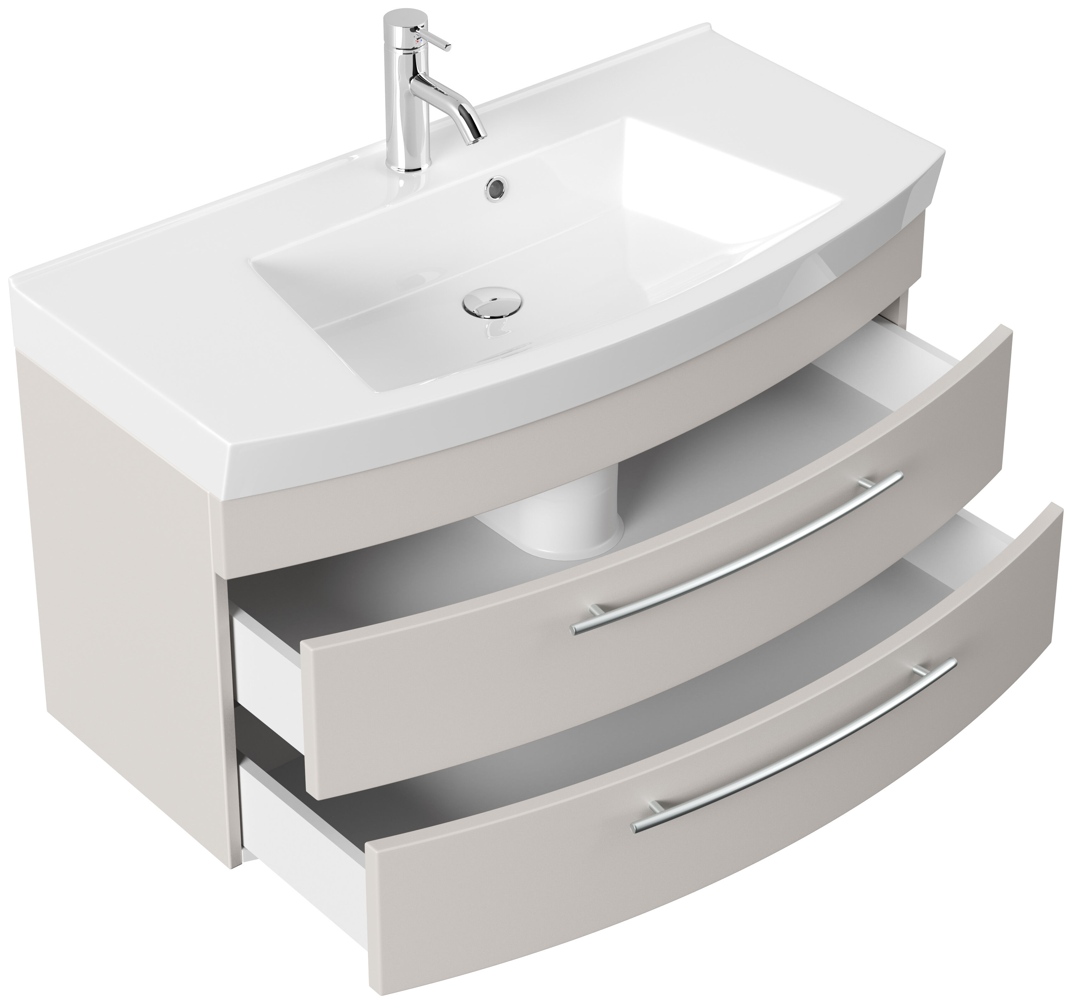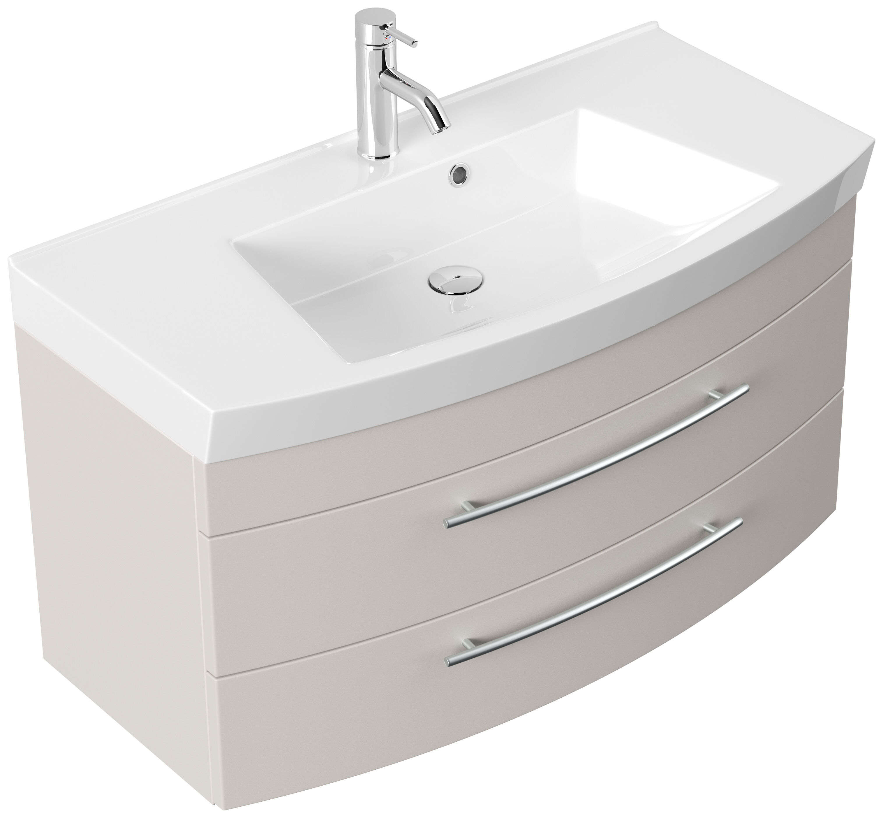 Badmöbel Bella 100 mit runder Front SoftClose lackiert kaschmir matt LED Spiegel