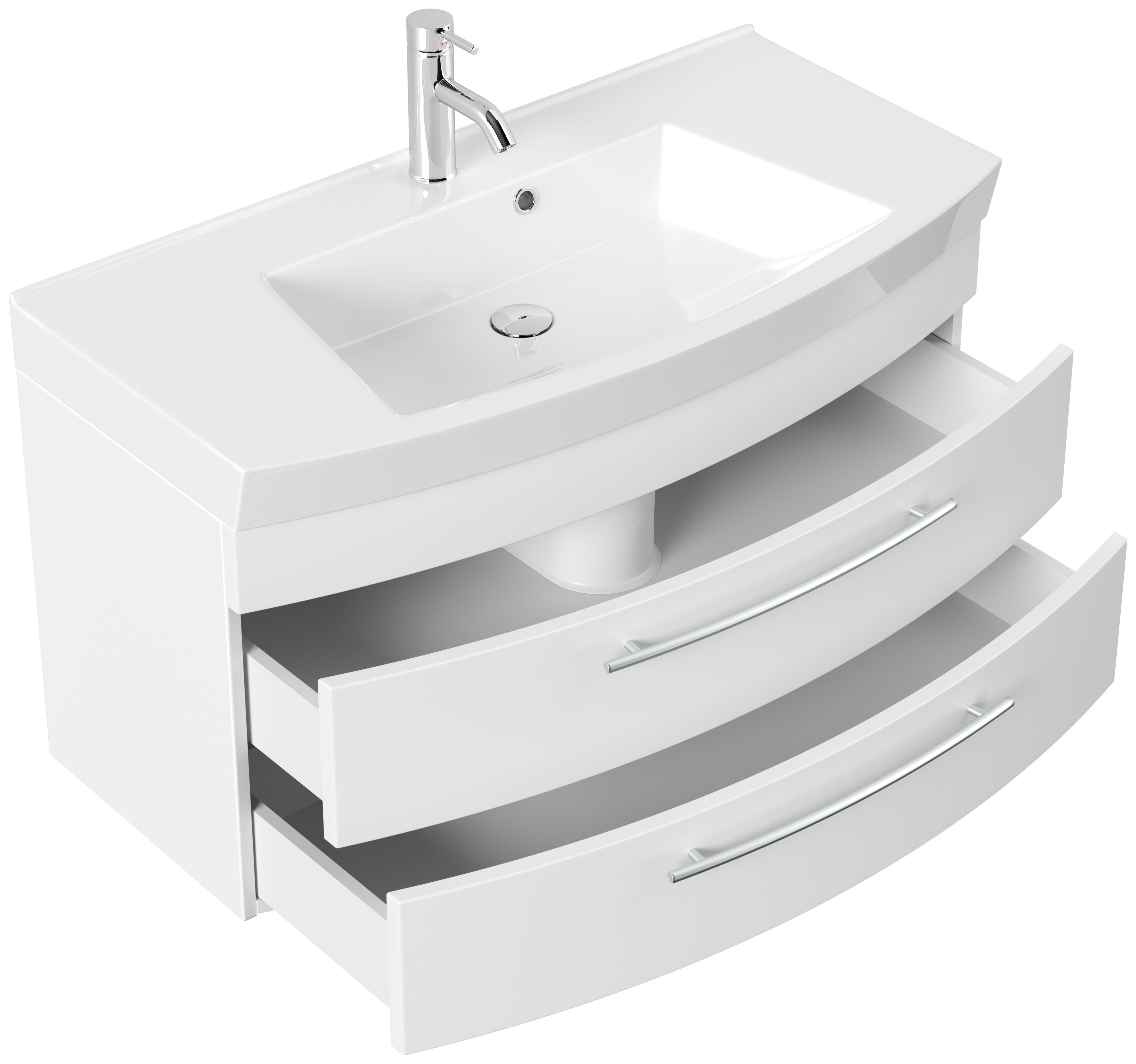 Badmöbel Bella 100 mit runder Front SoftClose lackiert weiss matt LED Spiegel
