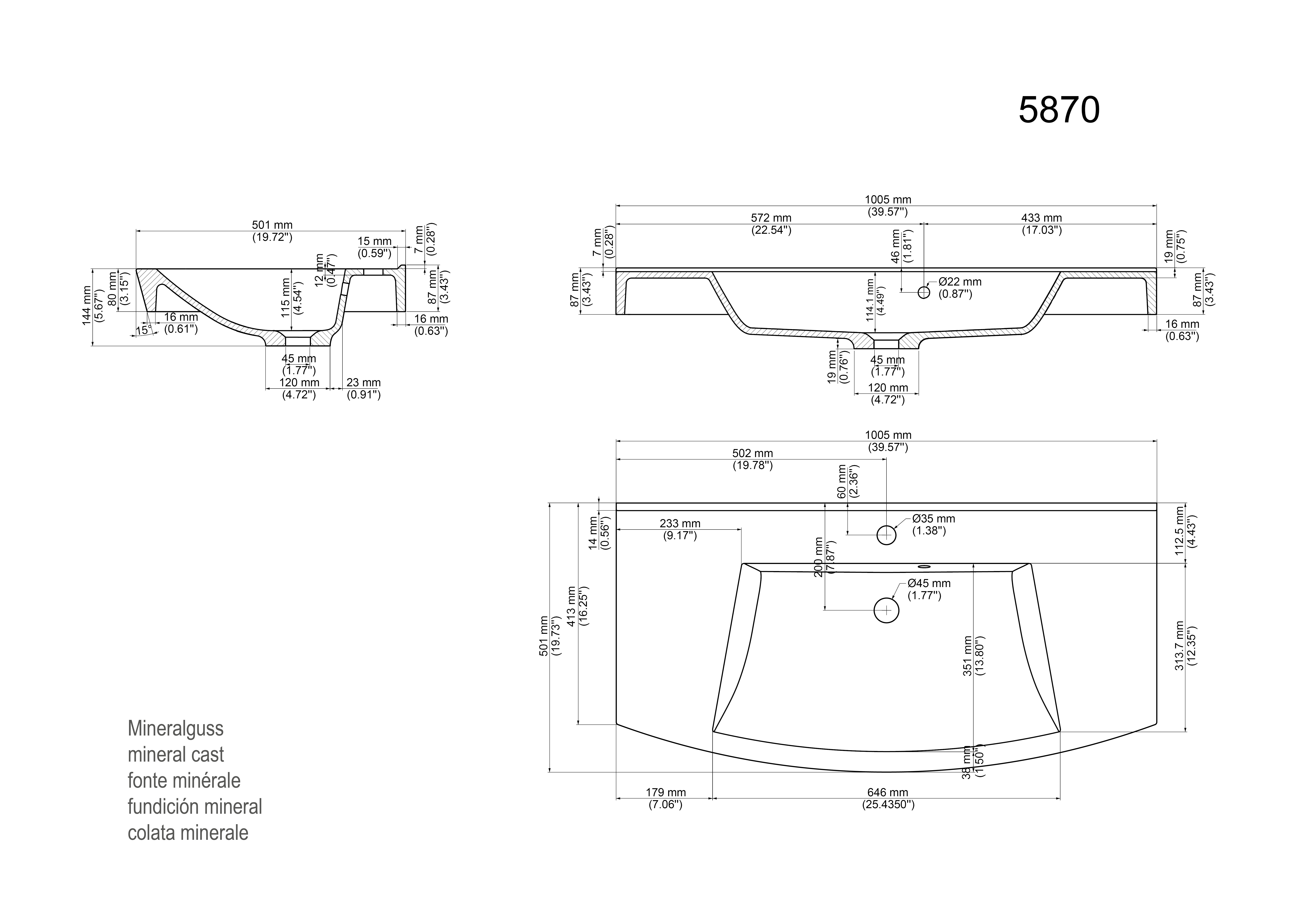 - 1 Mineralguss-Waschbecken mit Überlauf,