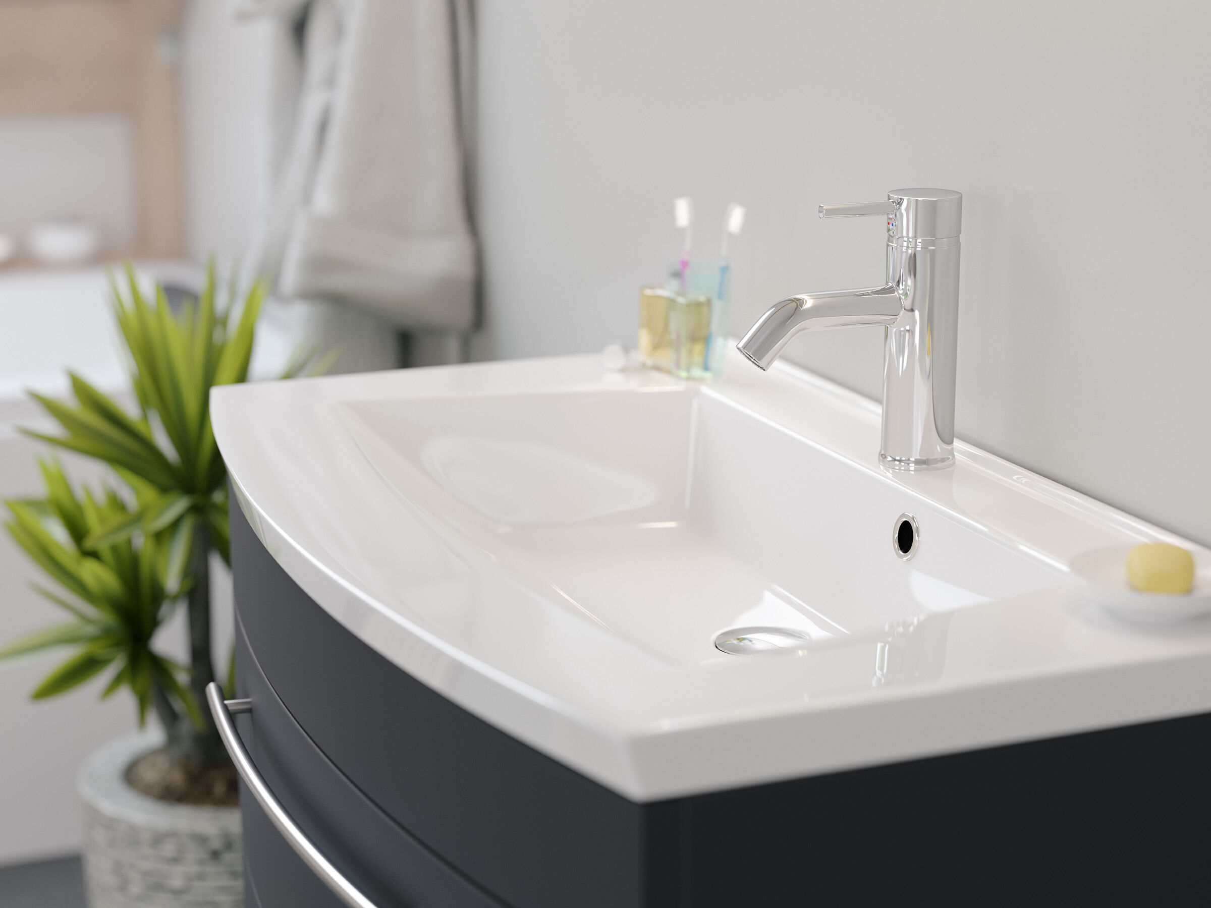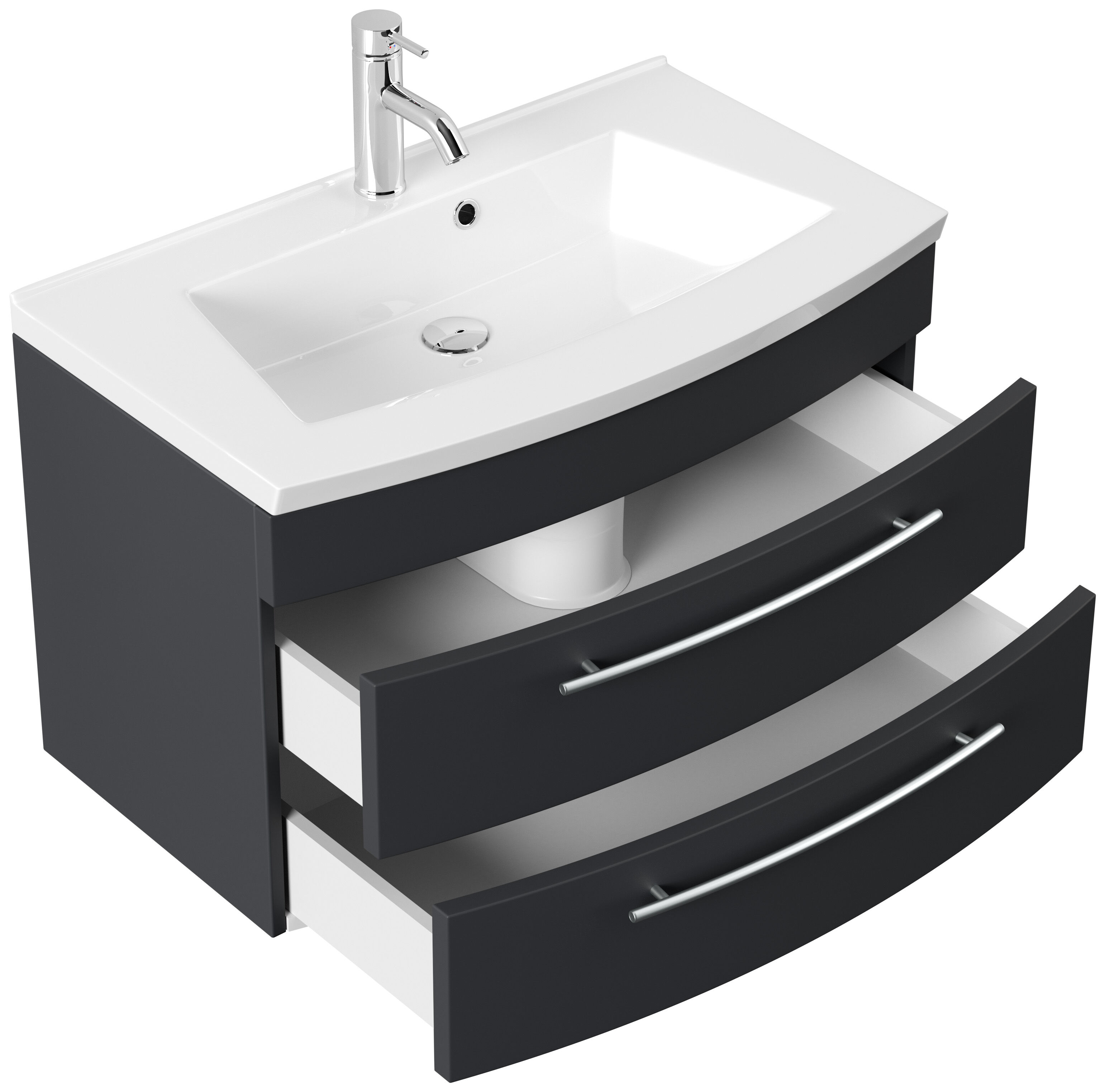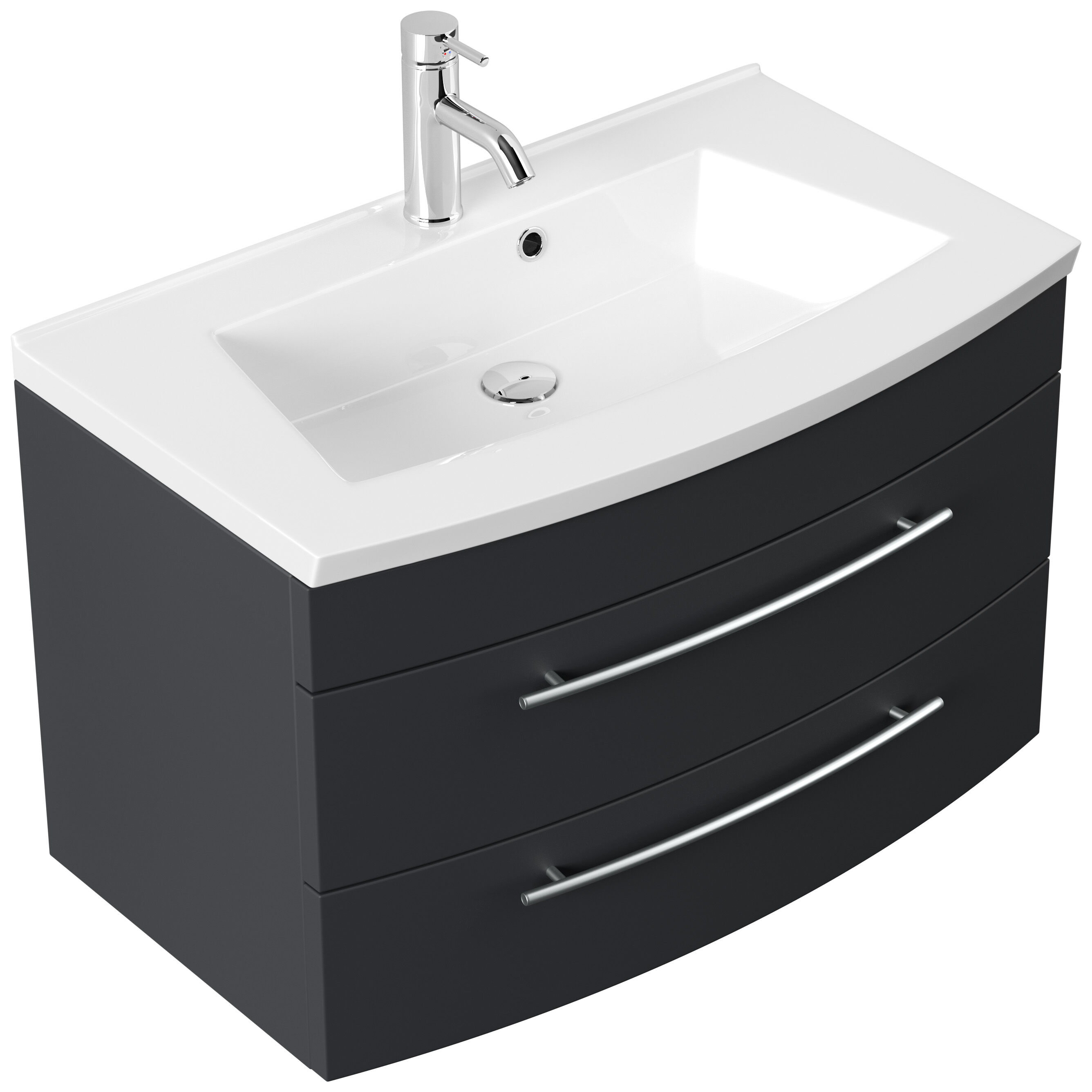 Badmöbel Bella 80 mit runder Front SoftClose lackiert grafit matt LED Spiegel