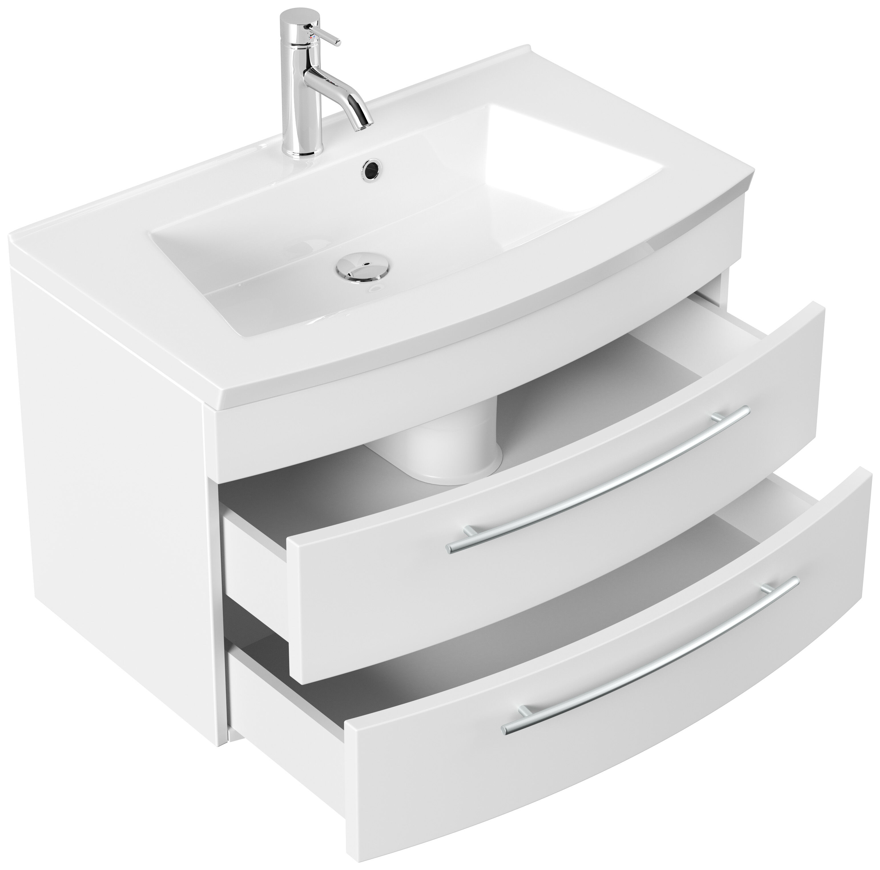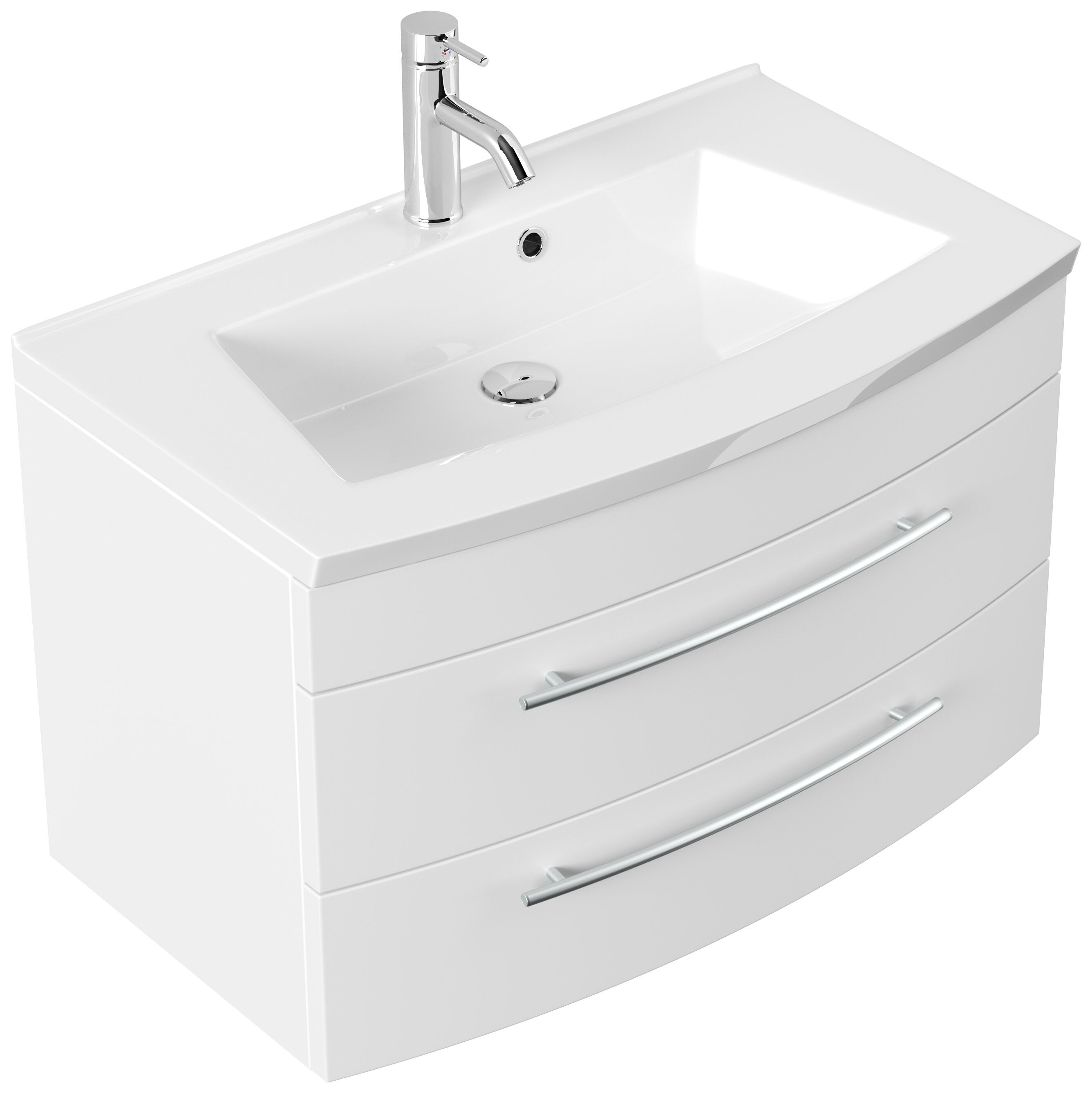 Badmöbel Bella 80 mit runder Front SoftClose lackiert weiss matt LED Spiegel