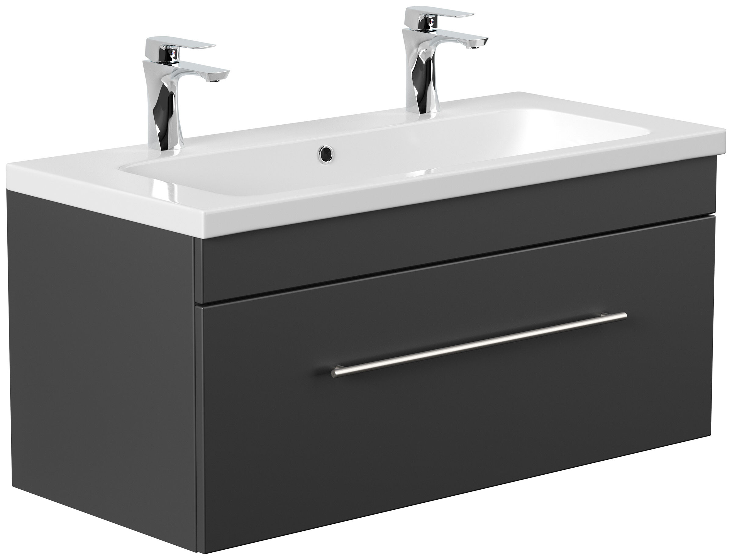 Badmöbel Diora 100cm Doppelbadmöbel Softclose schwarz