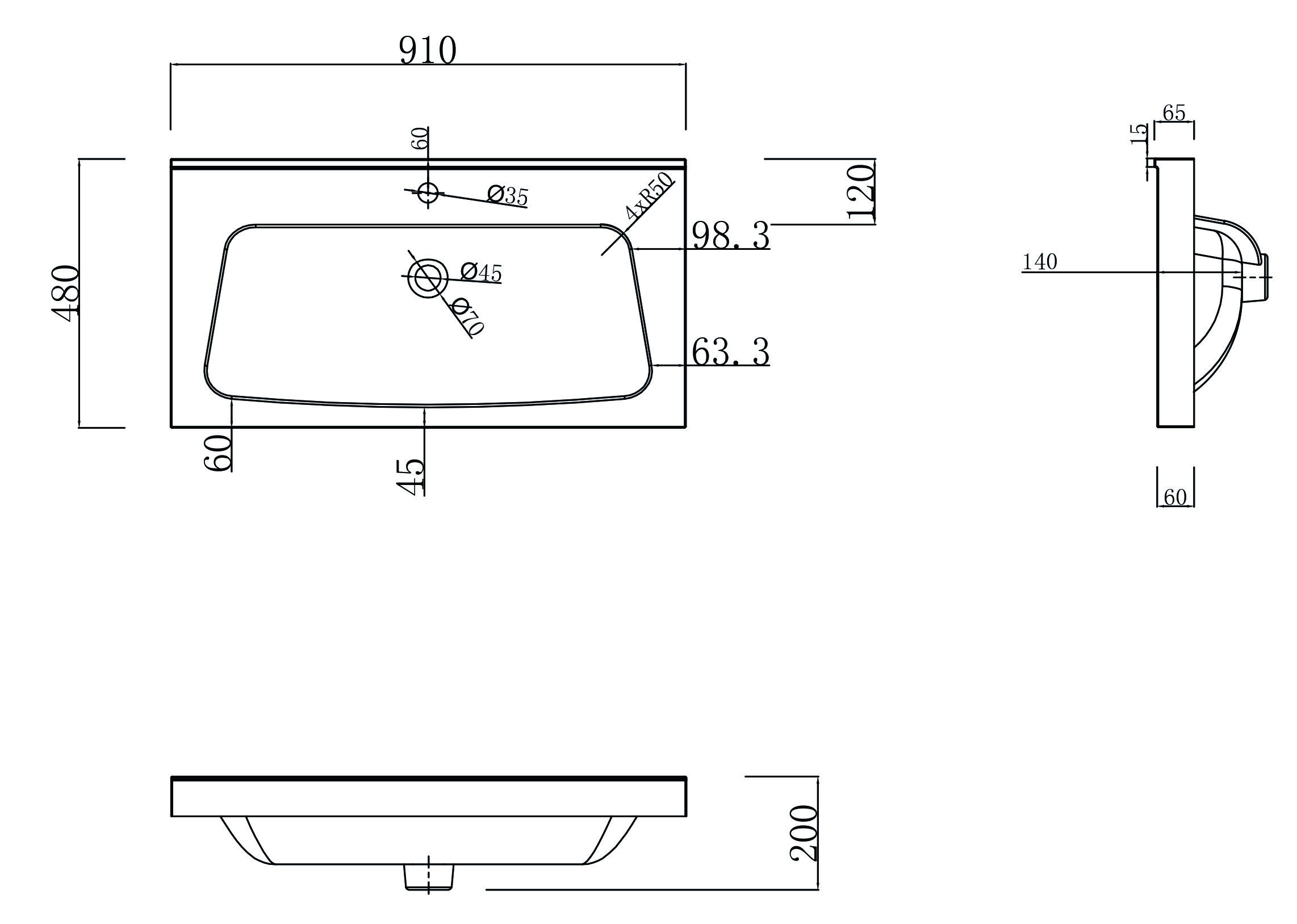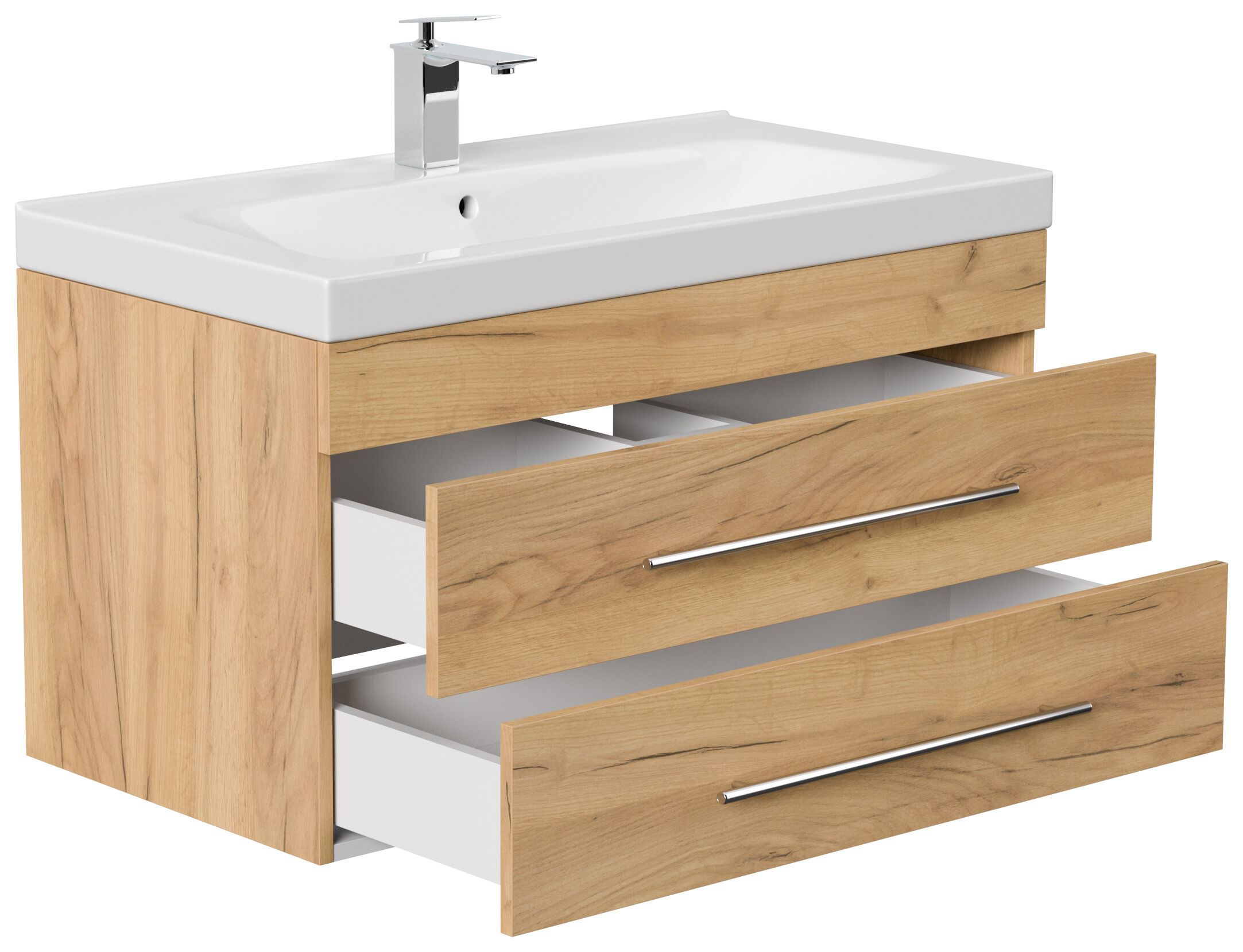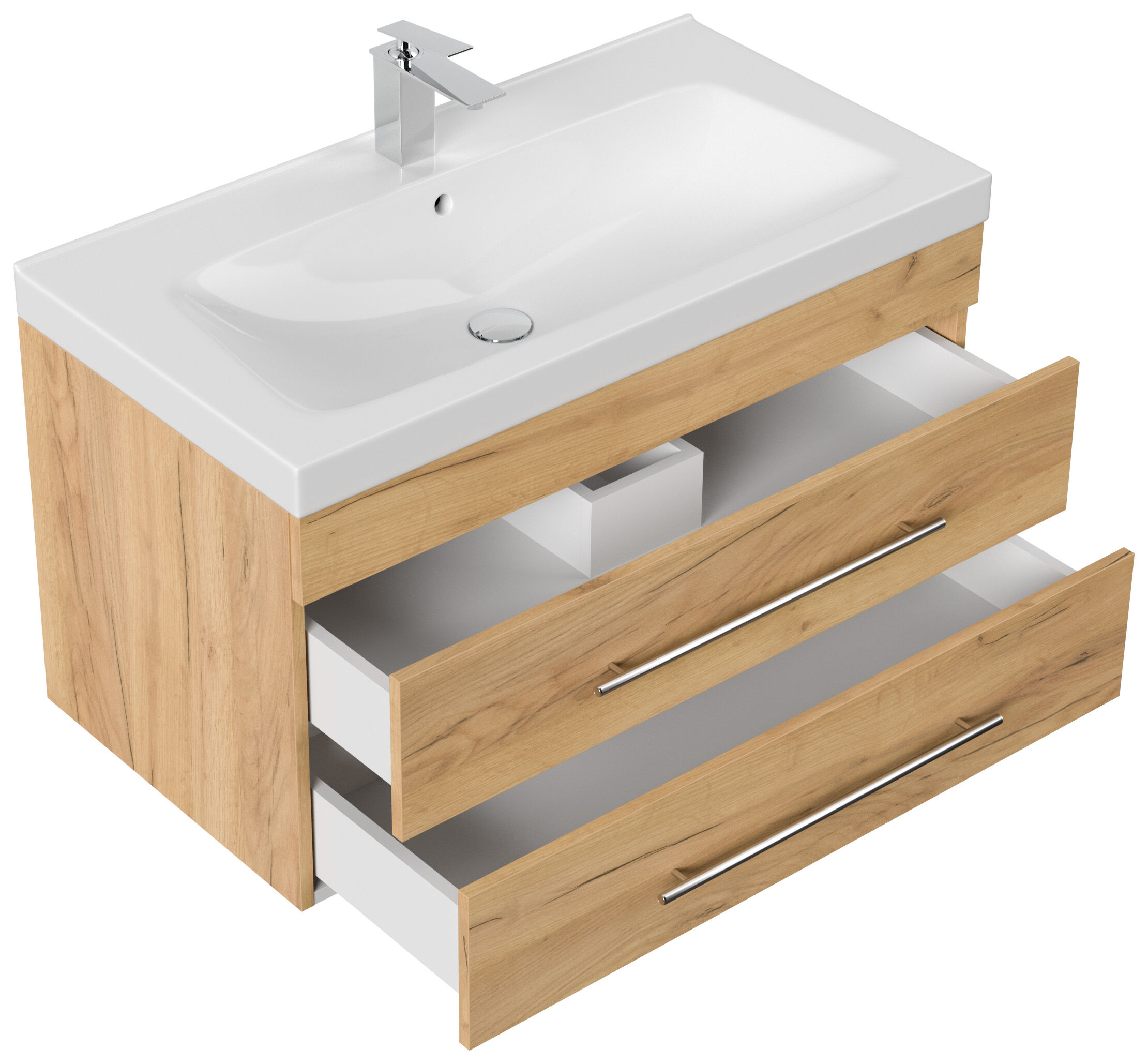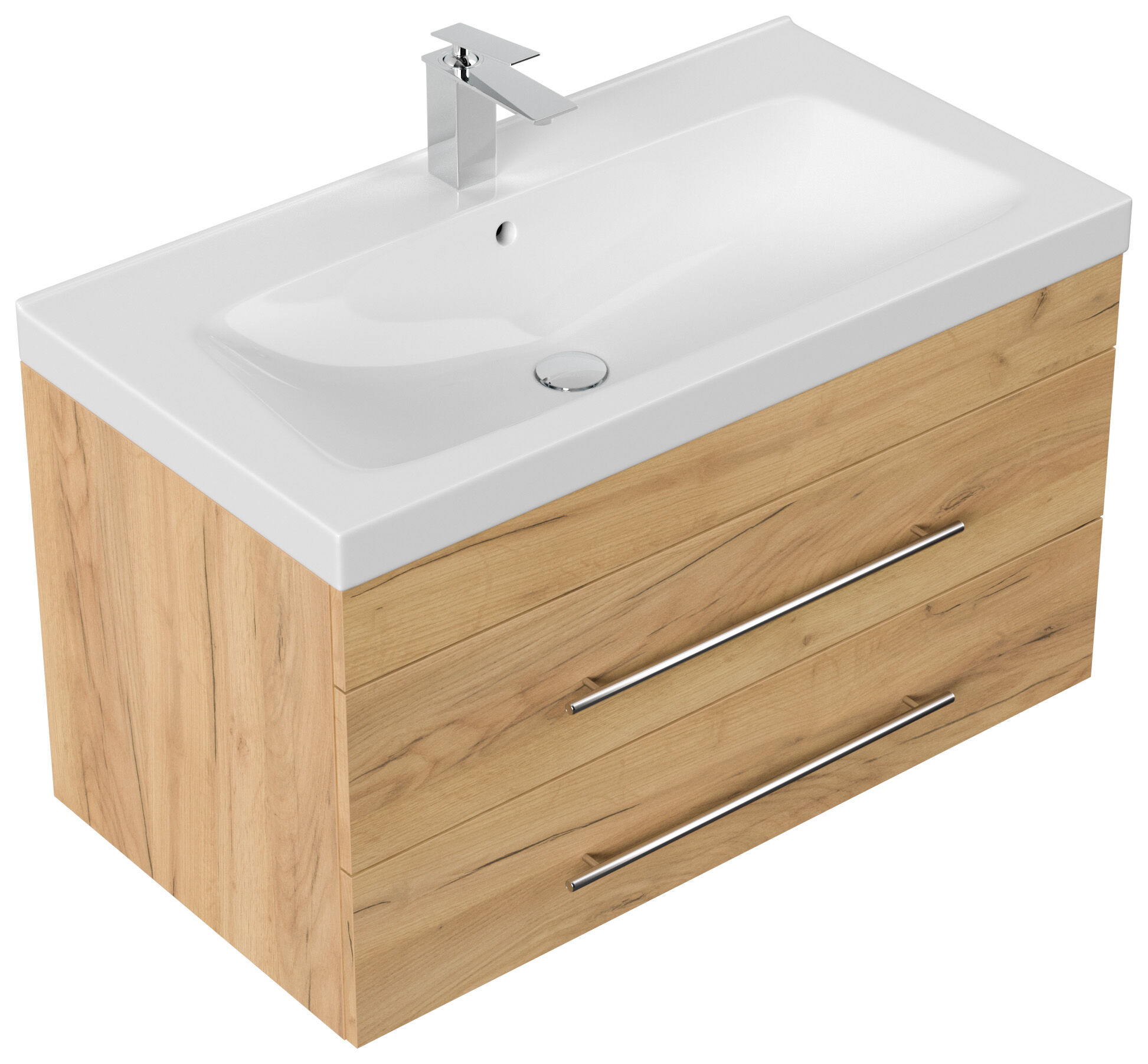 Waschtischunterschrank: (B/H/T) 90,7/48/48 cm,Waschbecken: (B/H/T) 91/6,5/48 cm.