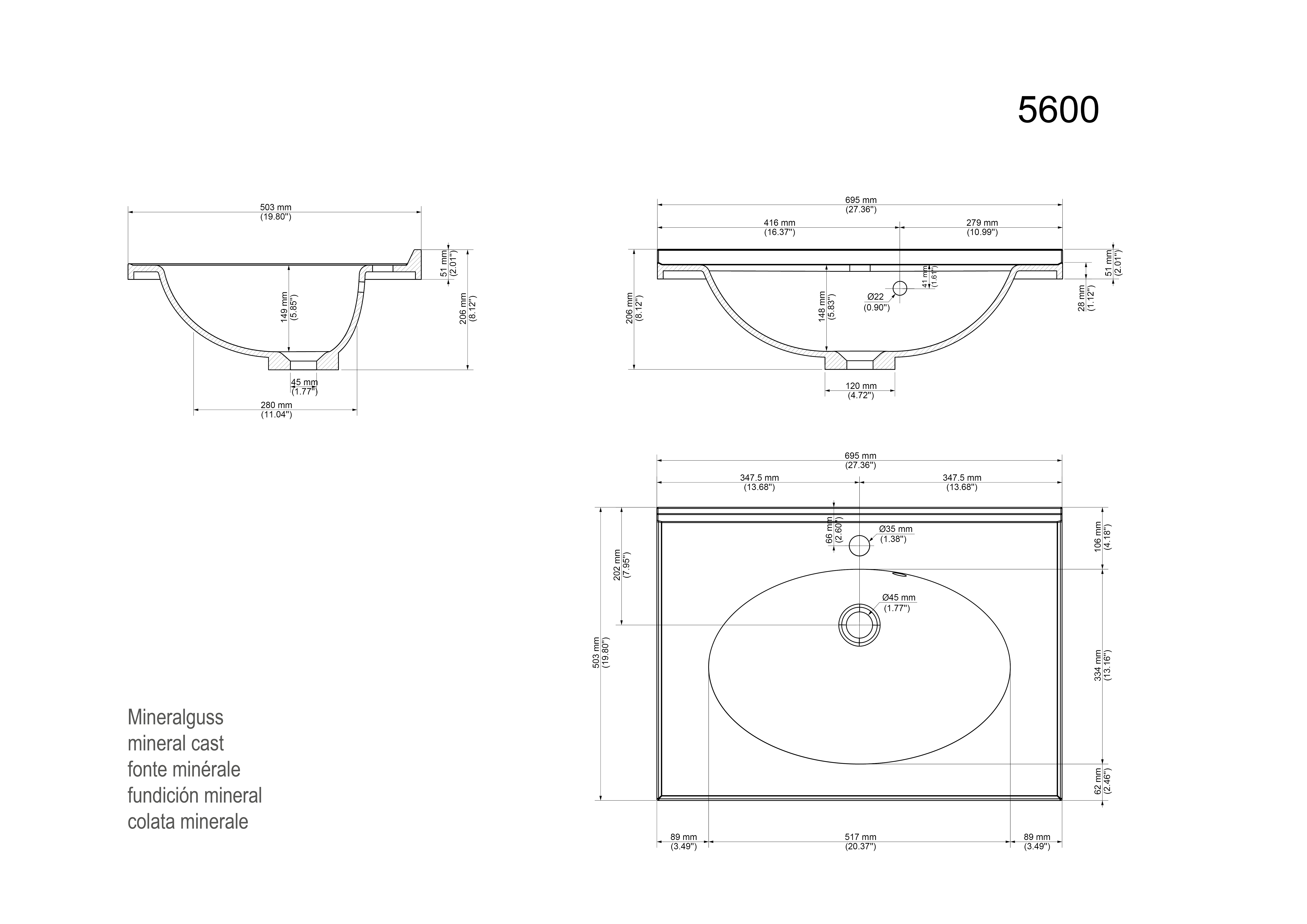 Waschbecken Mineralguss: (B/H/T) 69,5/2,7/50,3 cm.