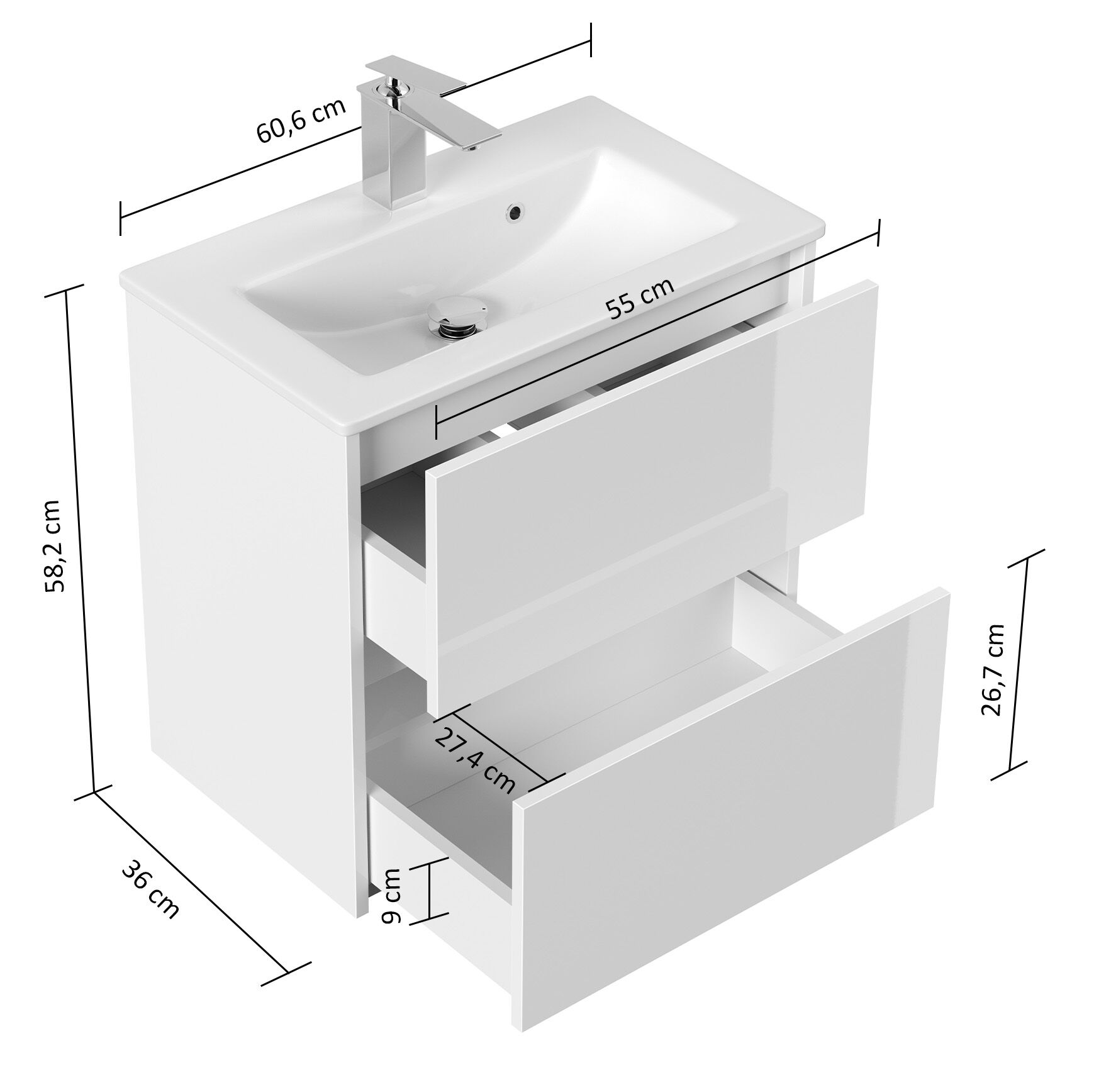 | Lieferumfang | Waschtischunterschrank, Waschbecken, Montageanleitung |