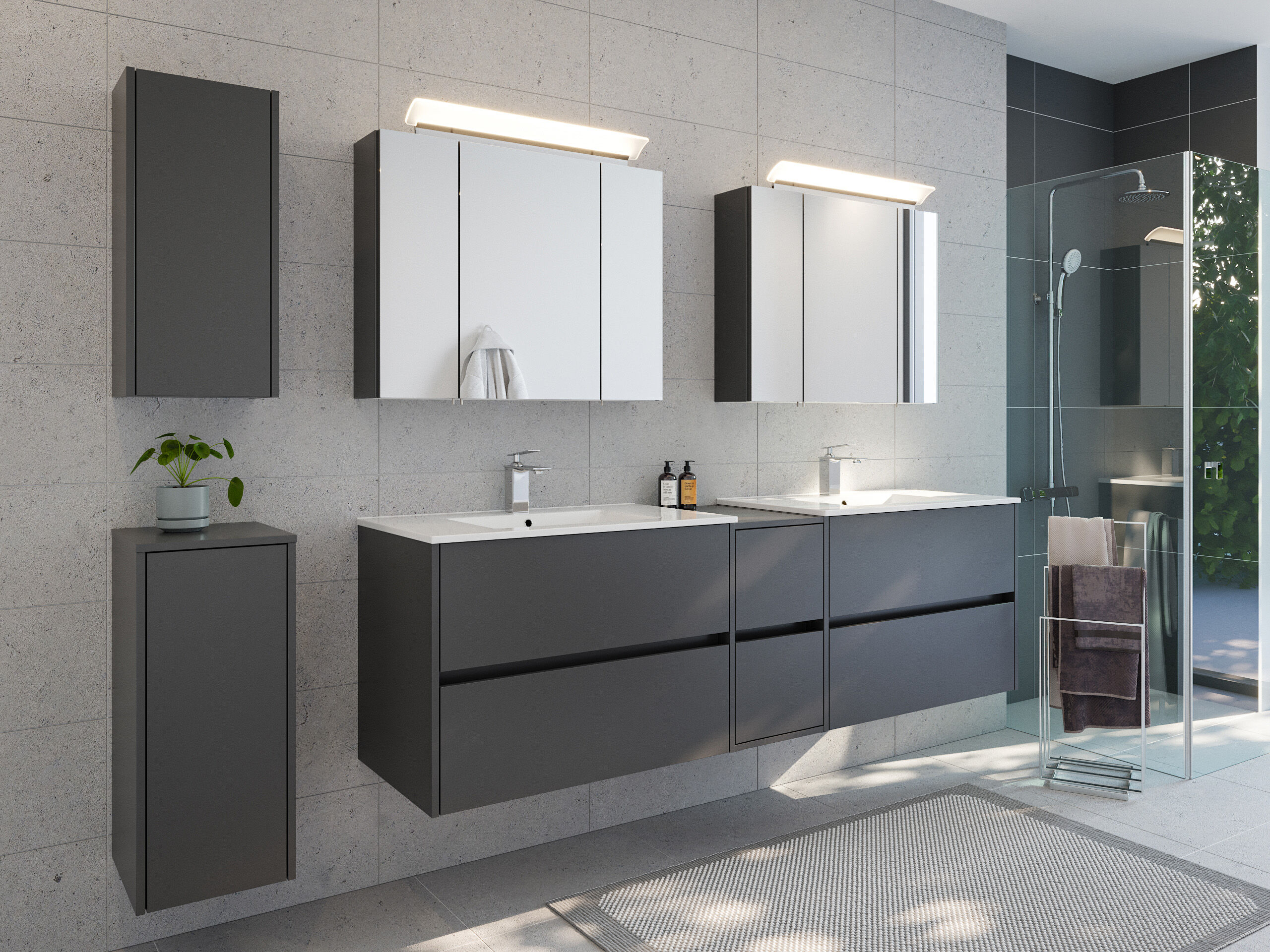 Badmöbelset Taifun 190cm 5tlg mit 2x Spiegelschrank & 2x Badschrank grafit