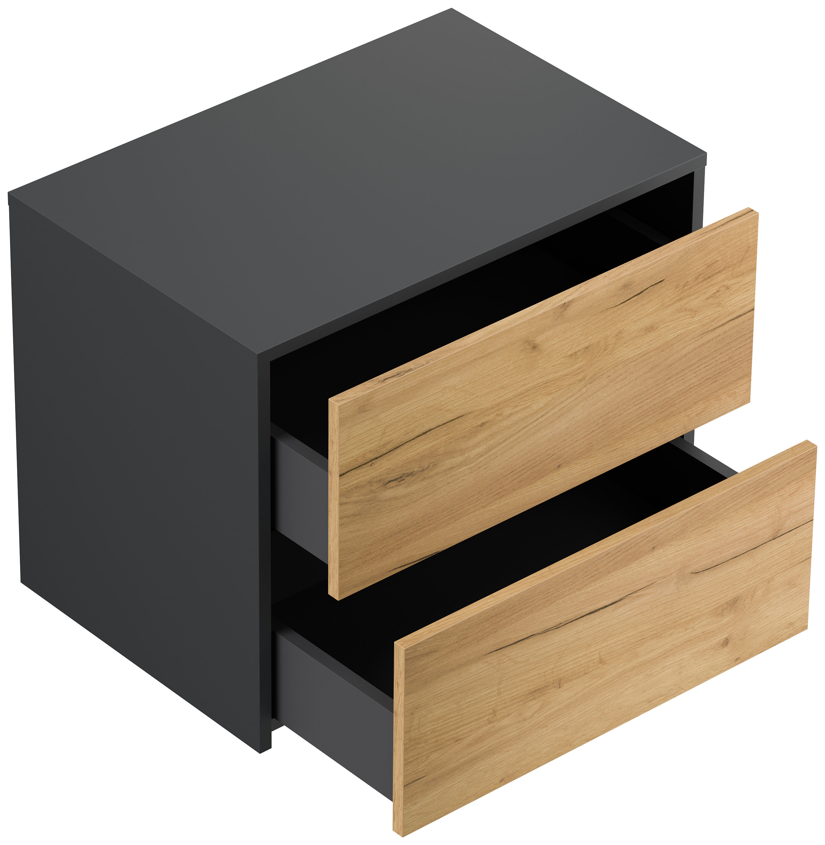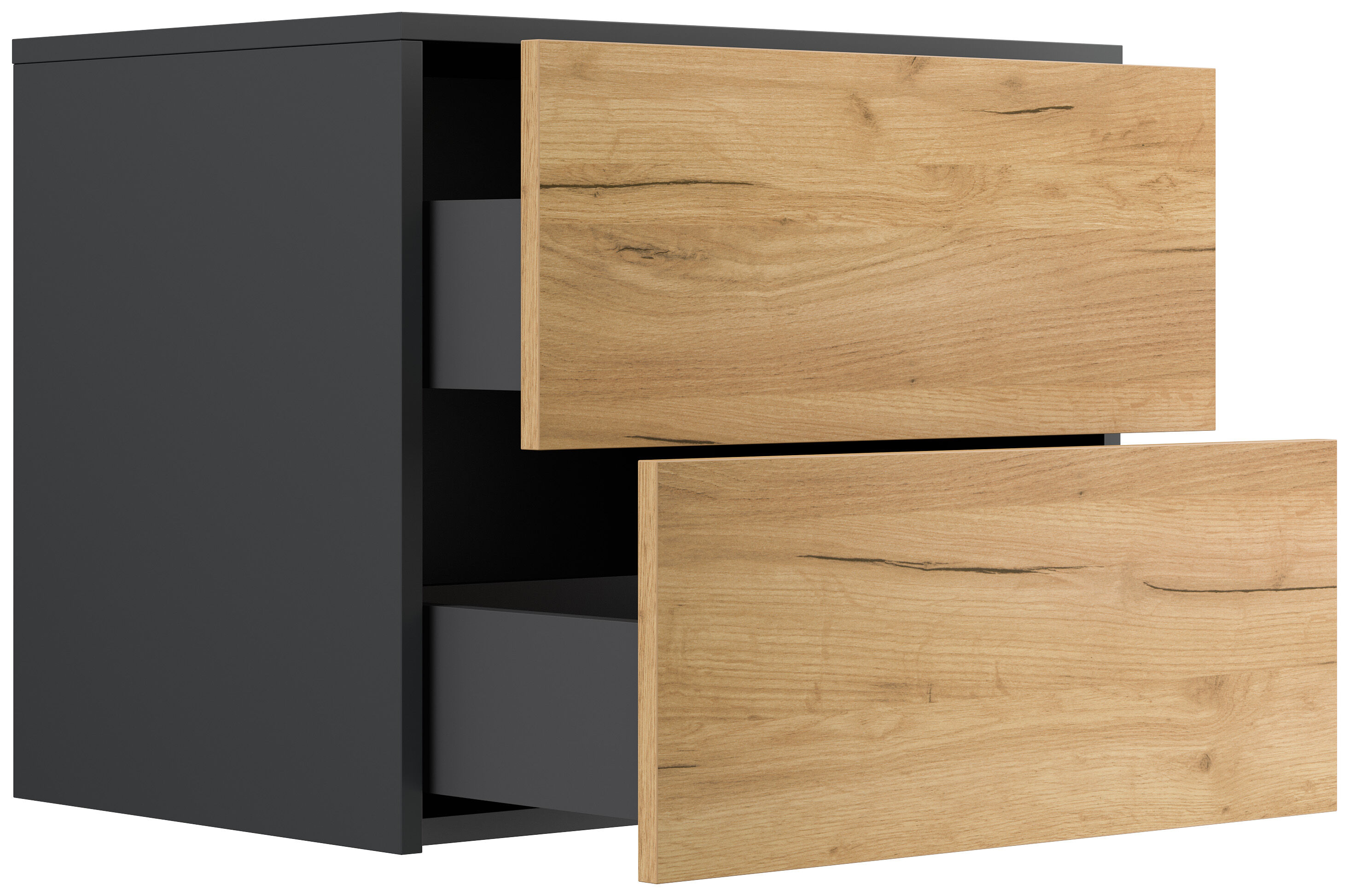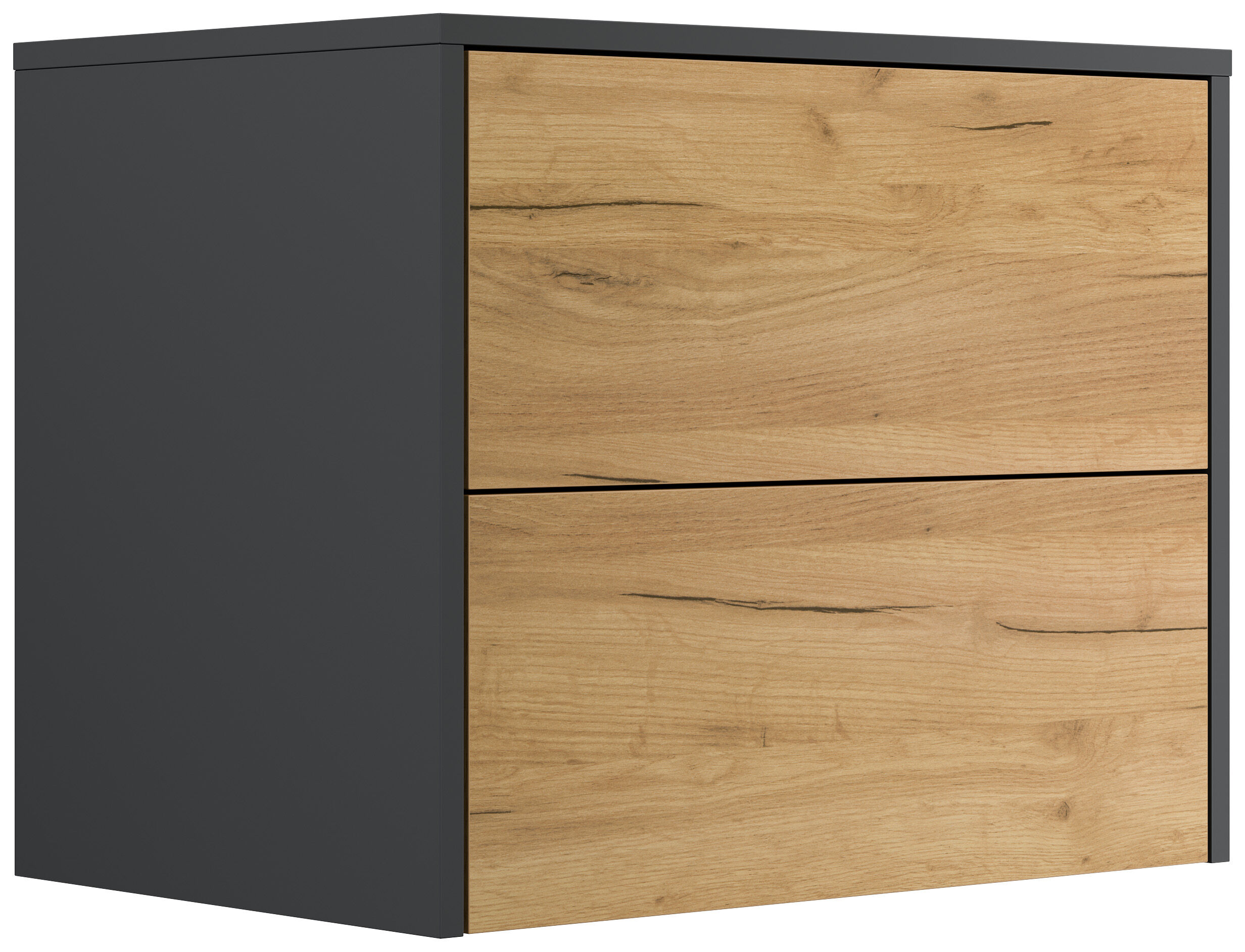 Design Nachttisch Concepto L 60cm hängend, 2 Pushauszüge Grafit Eiche