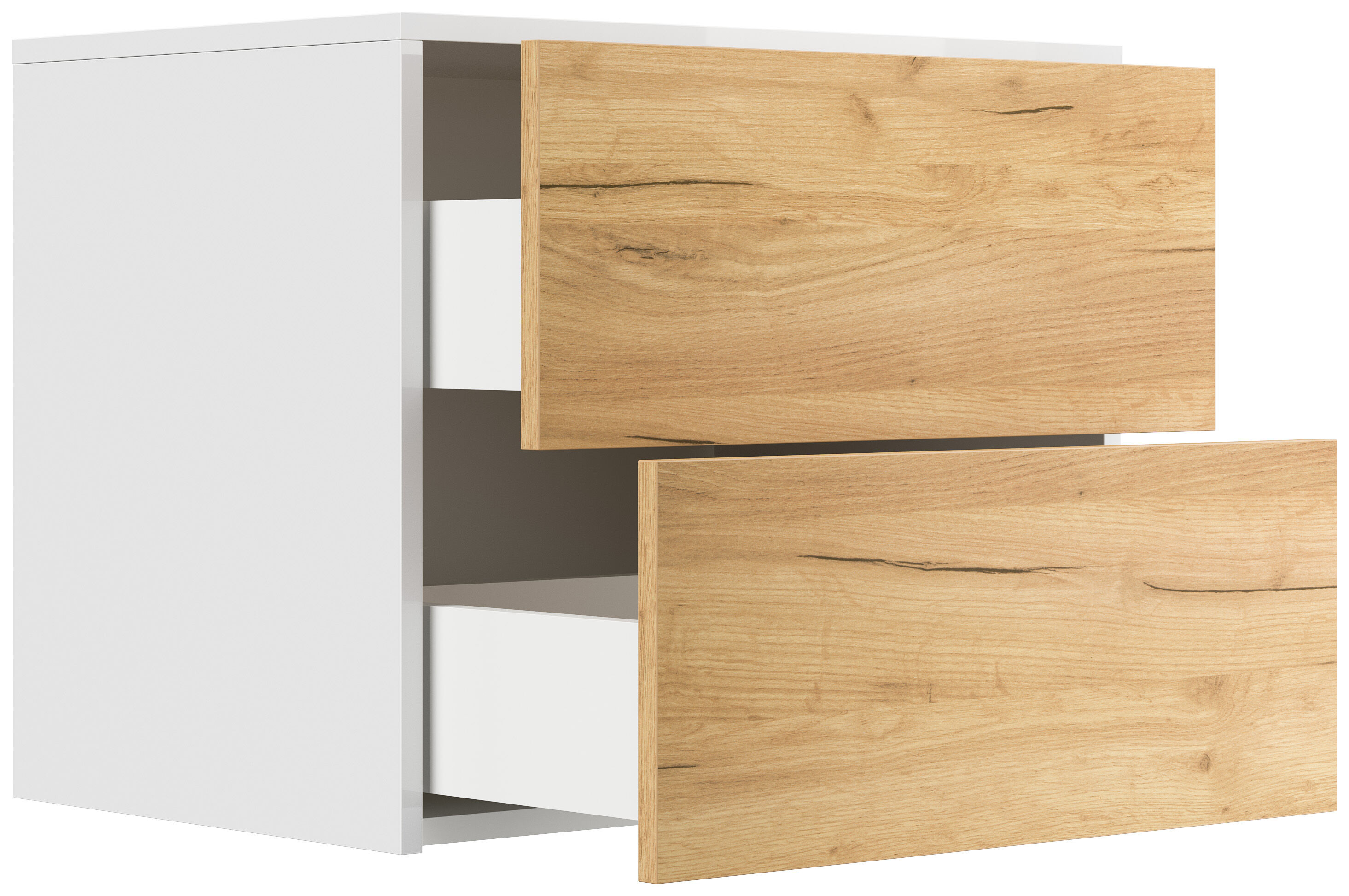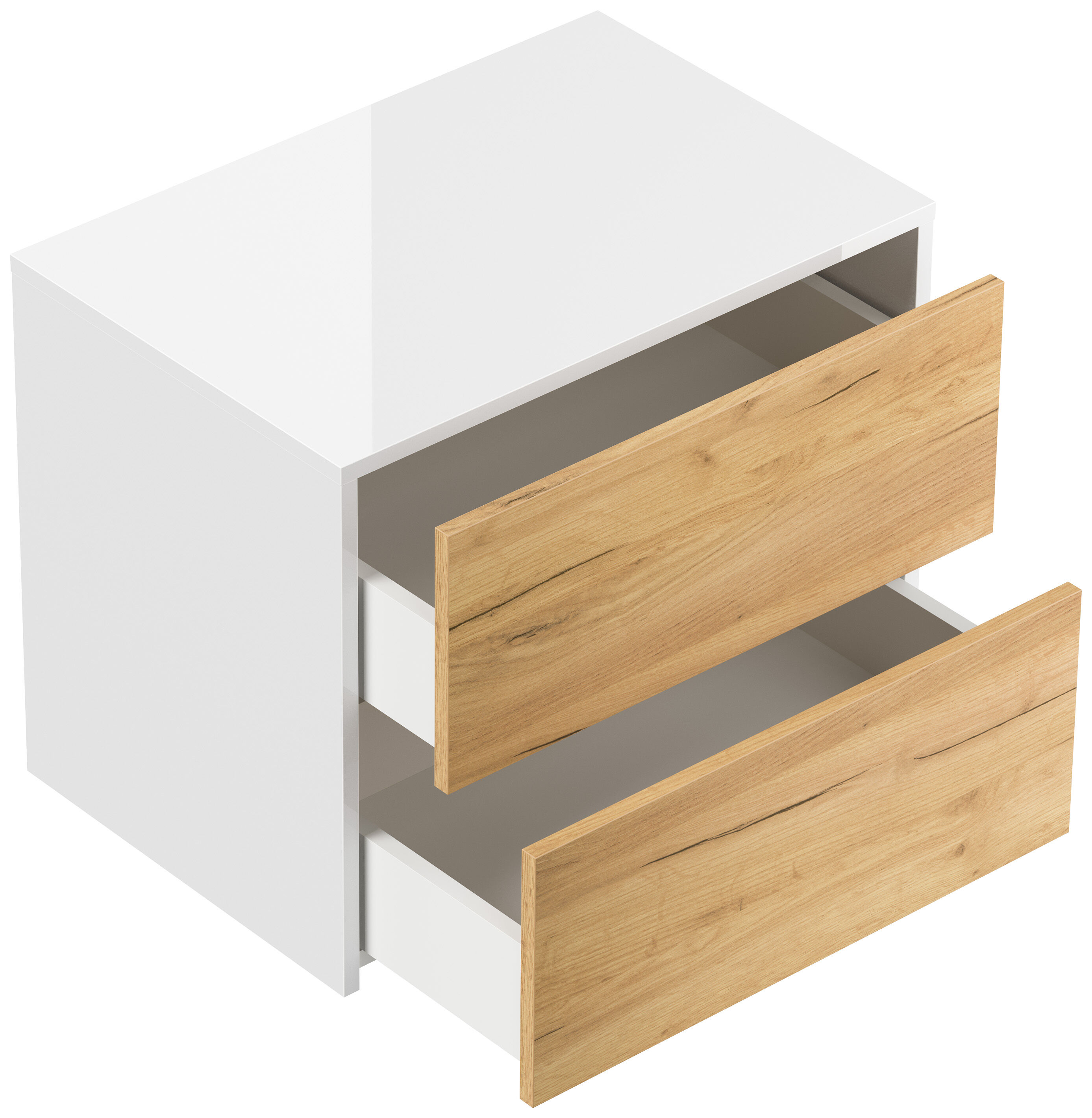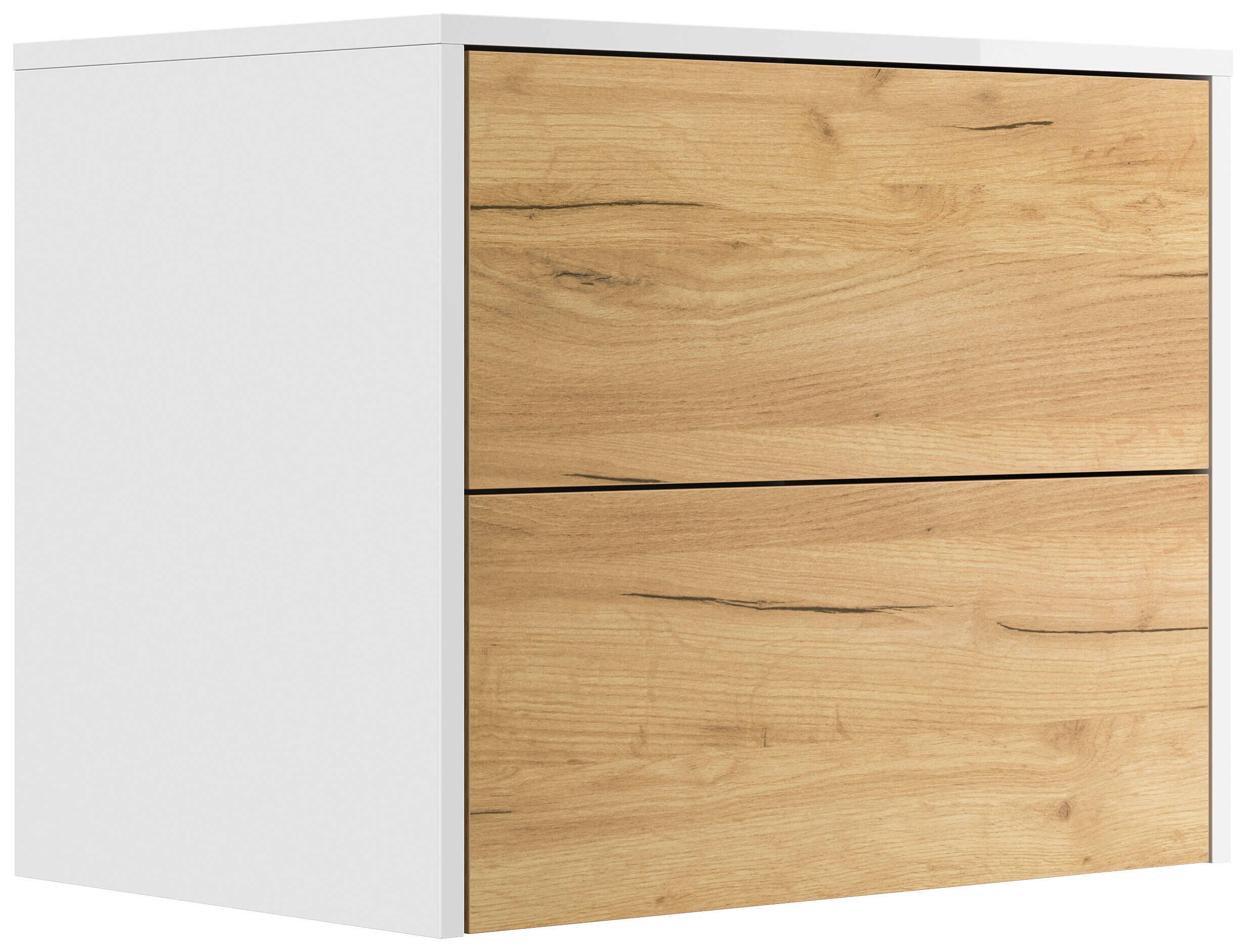 Design Nachttisch Concepto L 60cm hängend, 2 Pushauszüge Weiß Hgl Eiche
