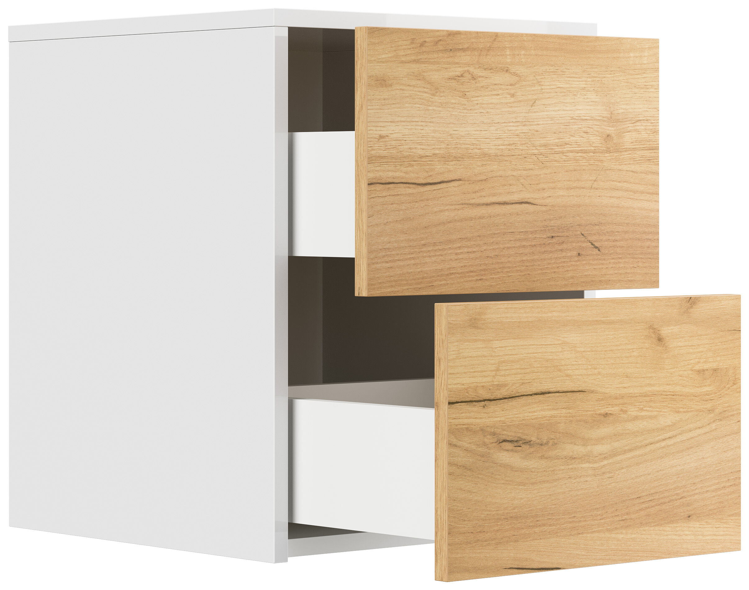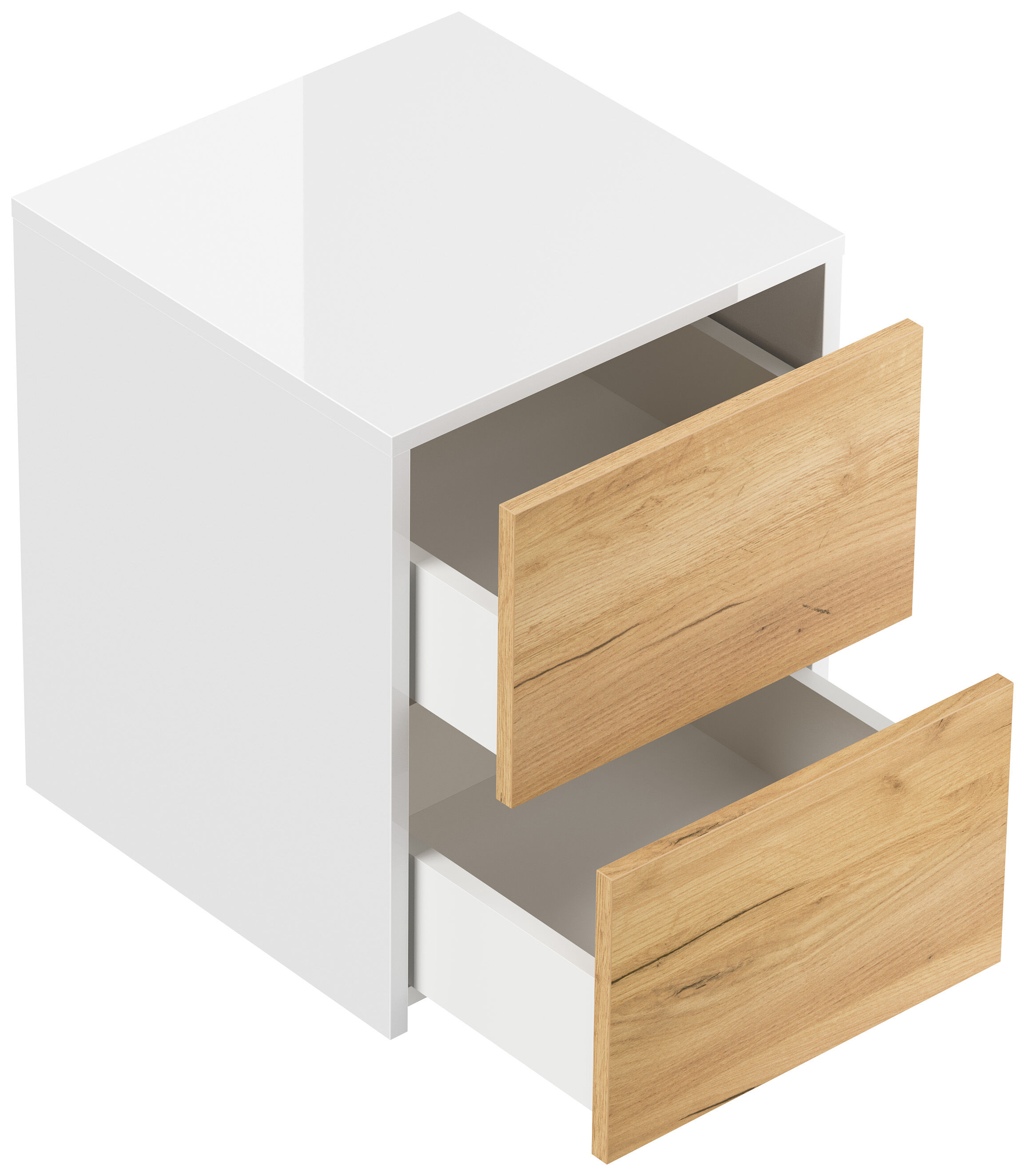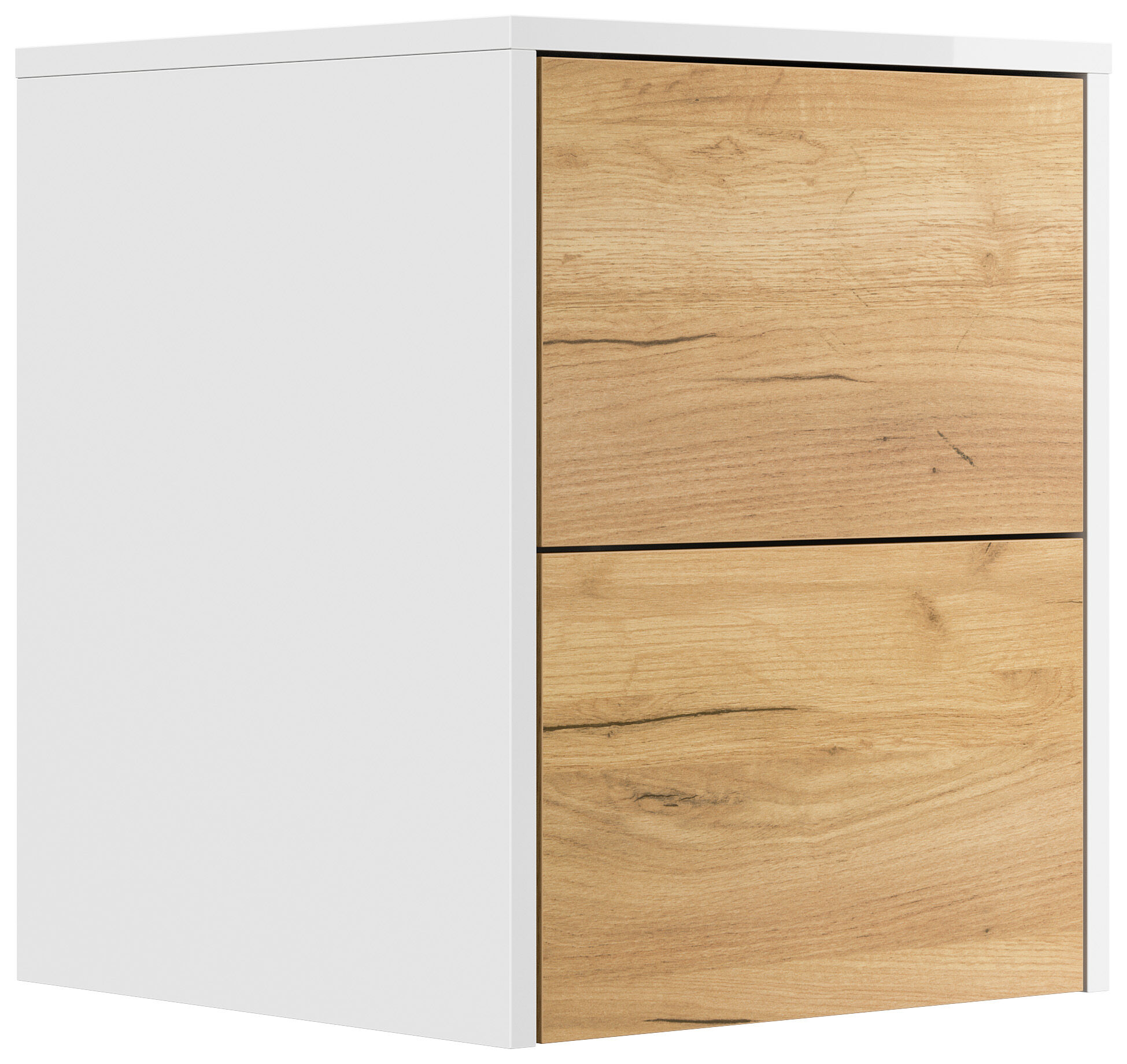 Design Nachttisch Concepto S 40cm hängend, 2 Pushauszüge Weiß Hgl Eiche