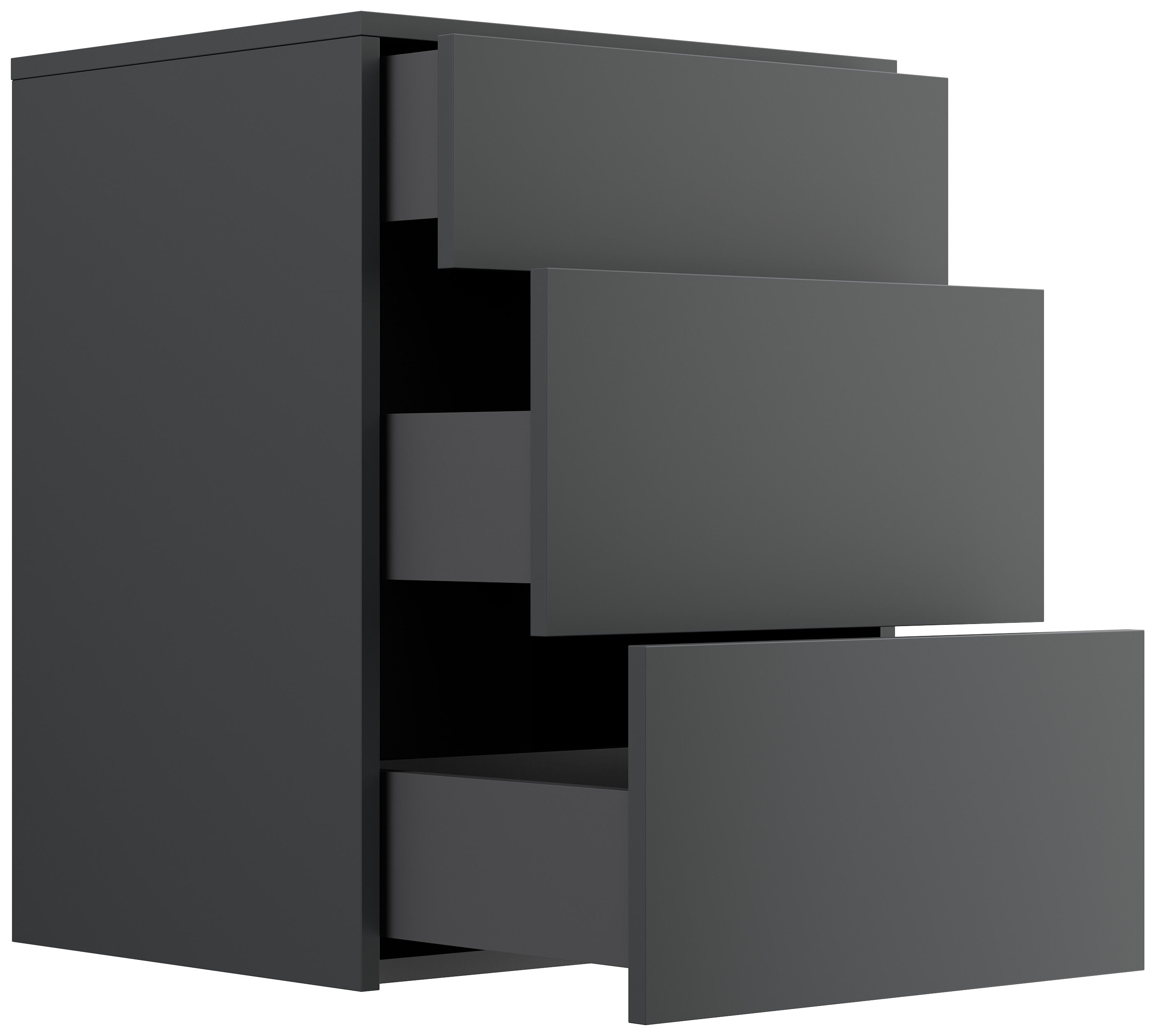 Design Nachttisch Lux M 50cm hängend, 3 Pushauszüge Grafit