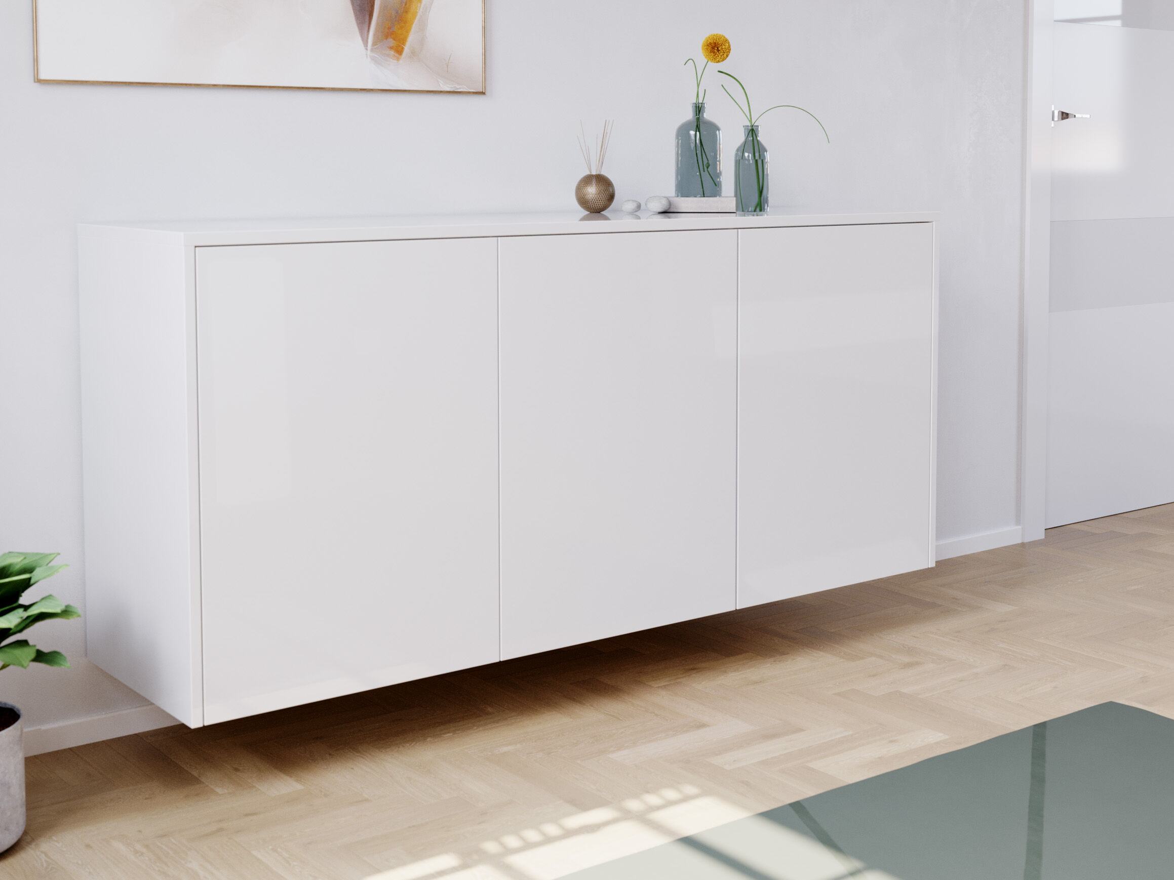 Design Sideboard Kommode Genesis B hängend 150cm 3 Türen Weiß Hgl