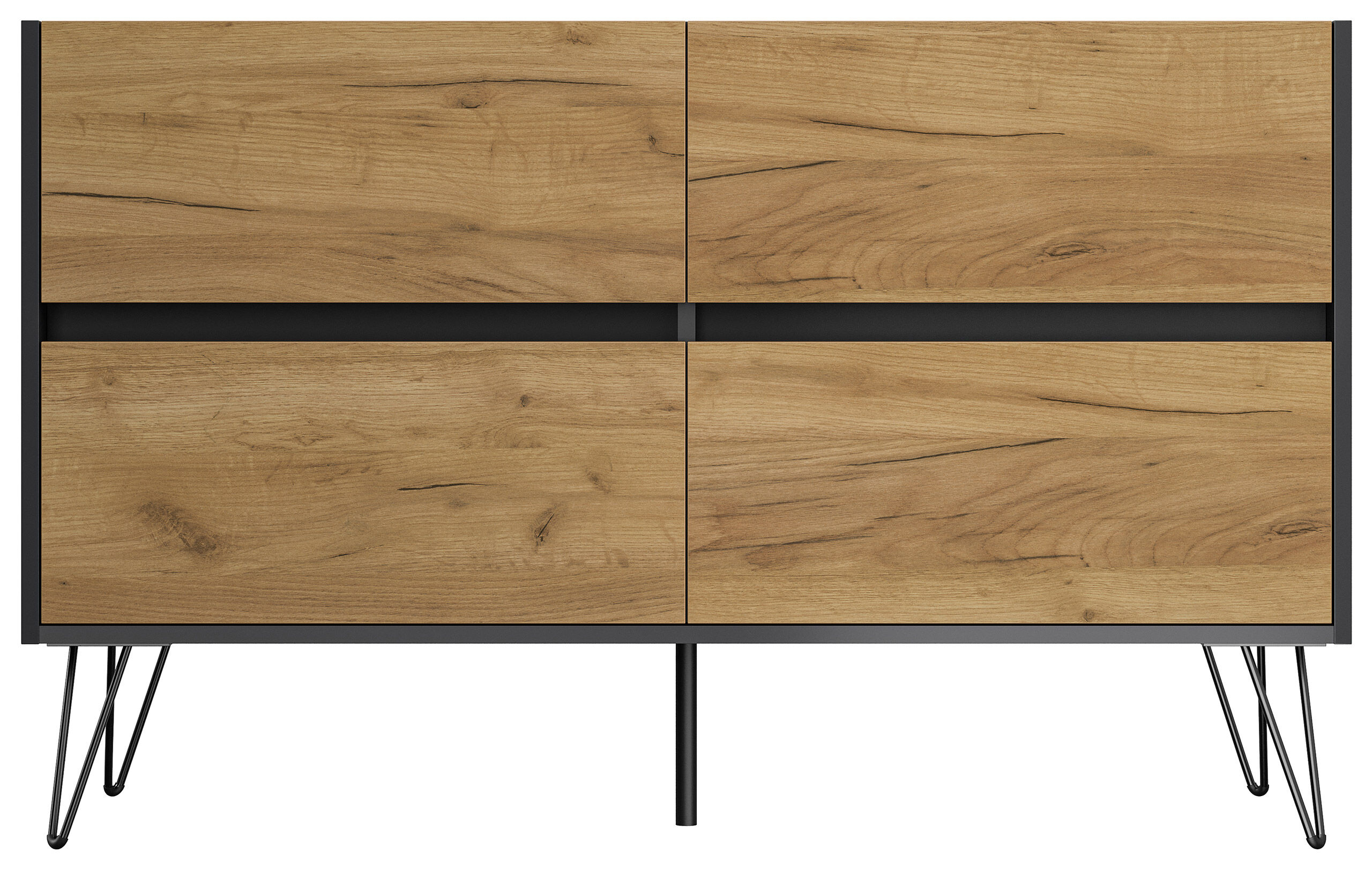 Kommode Dion 120cm 4 SoftClose Schubladen Grafit/Eiche Front