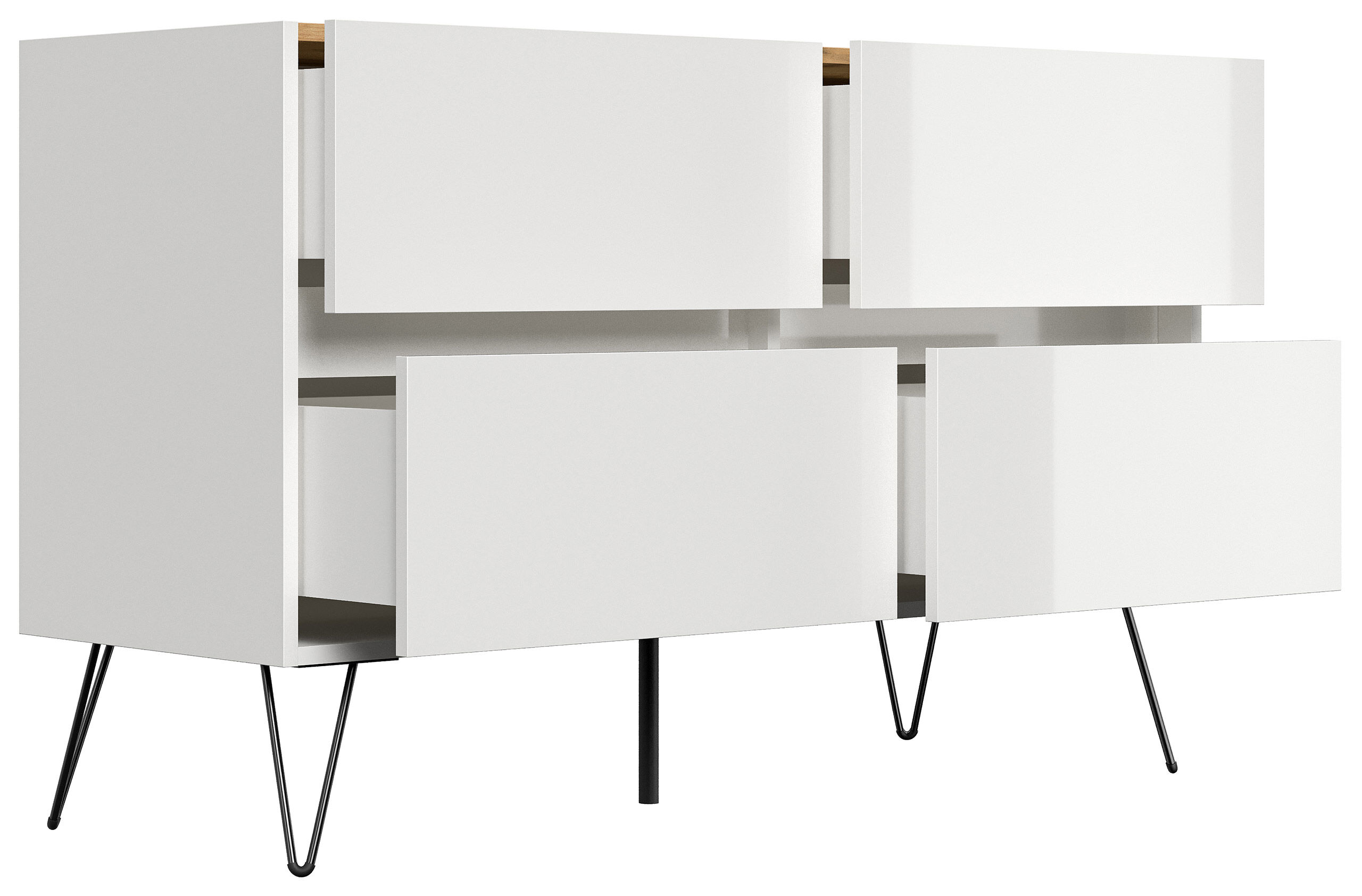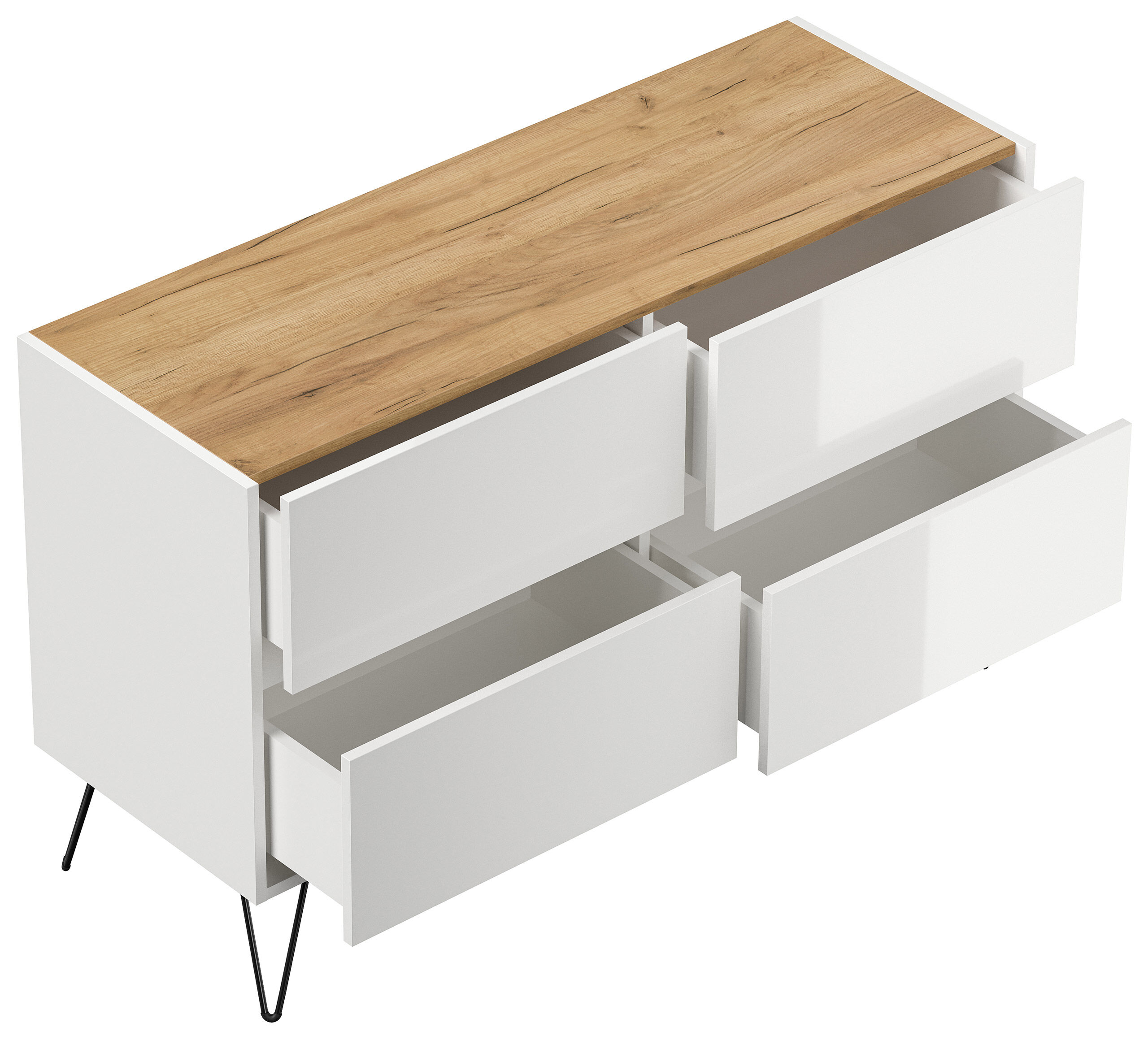 Kommode Dion 120cm 4 SoftClose Schubladen Weiß/Eiche Top
