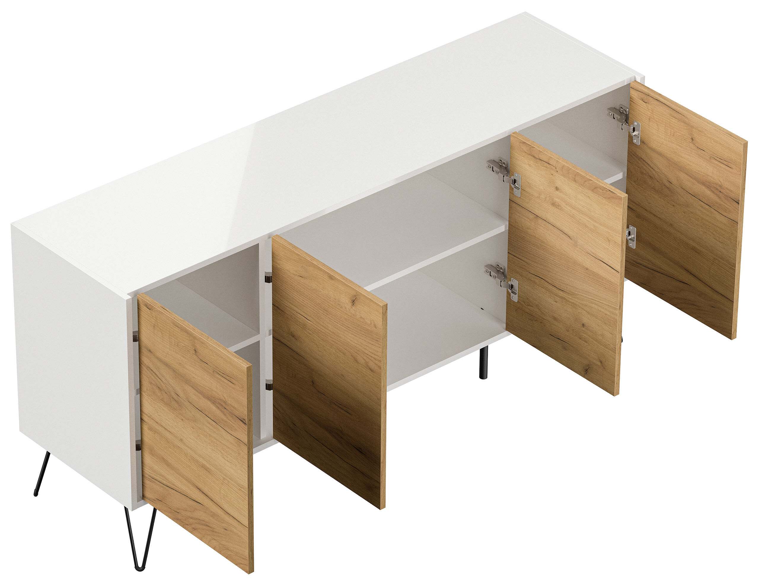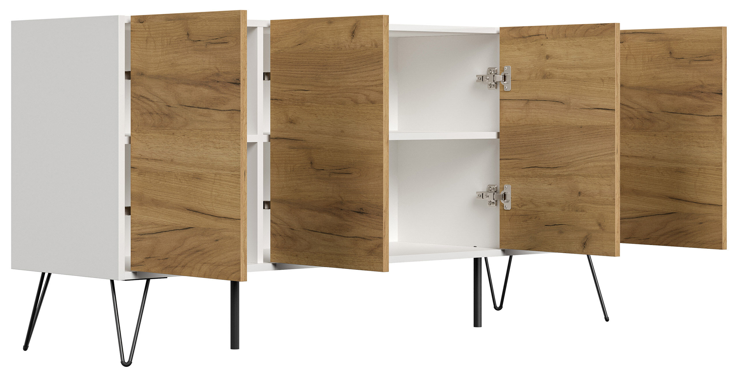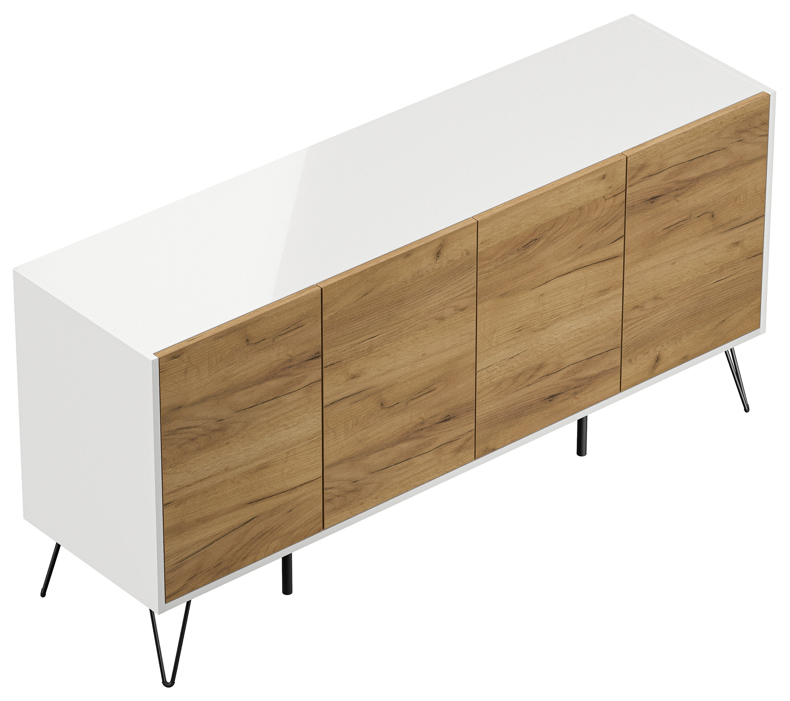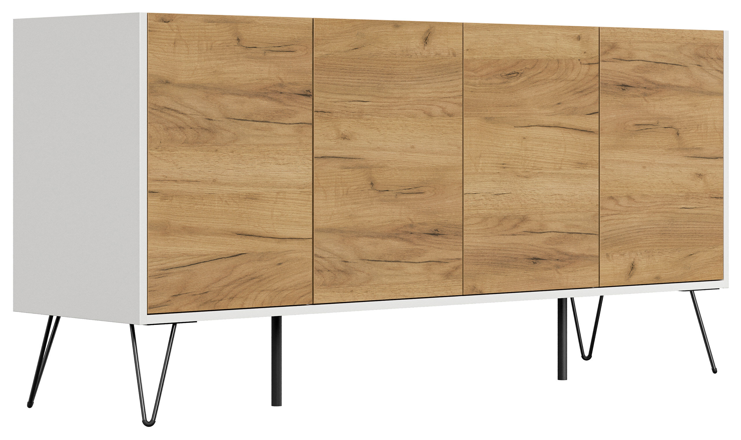 Kommode Maxim 155cm stehend 4 Türen Weiß/Eiche Front