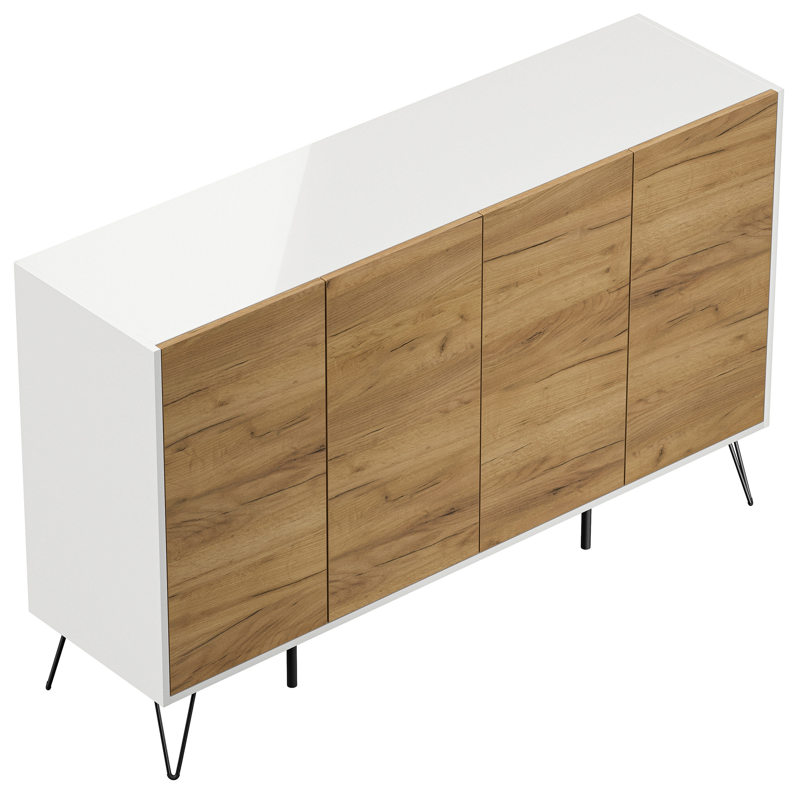 Kommode Maxim XL 155cm 4 Softclose Türen Weiß/Eiche Front