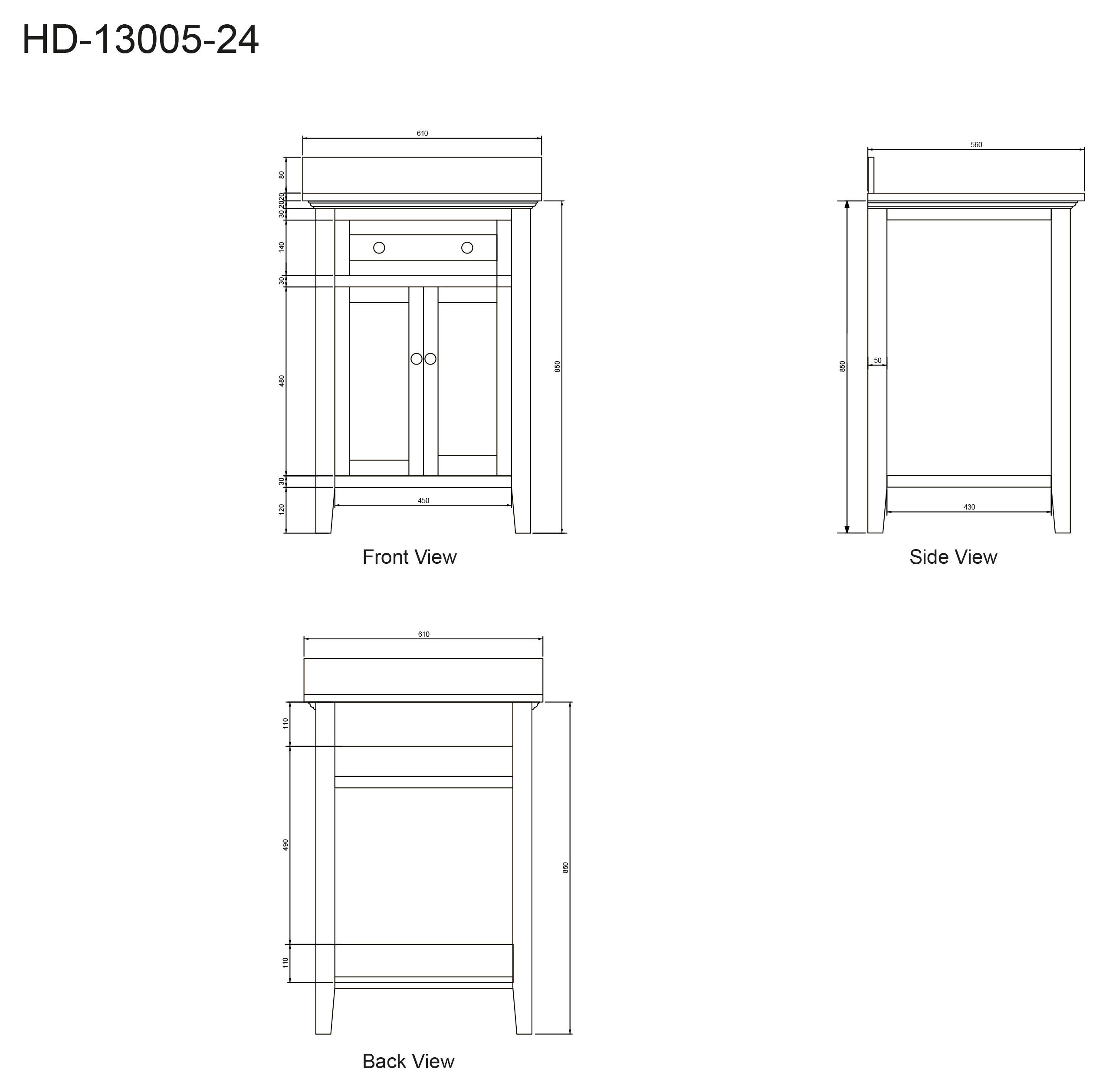 Landhaus Badmöbel-Set 2tlg Postigo 60 Quarz schwarz montiert grau lackiert