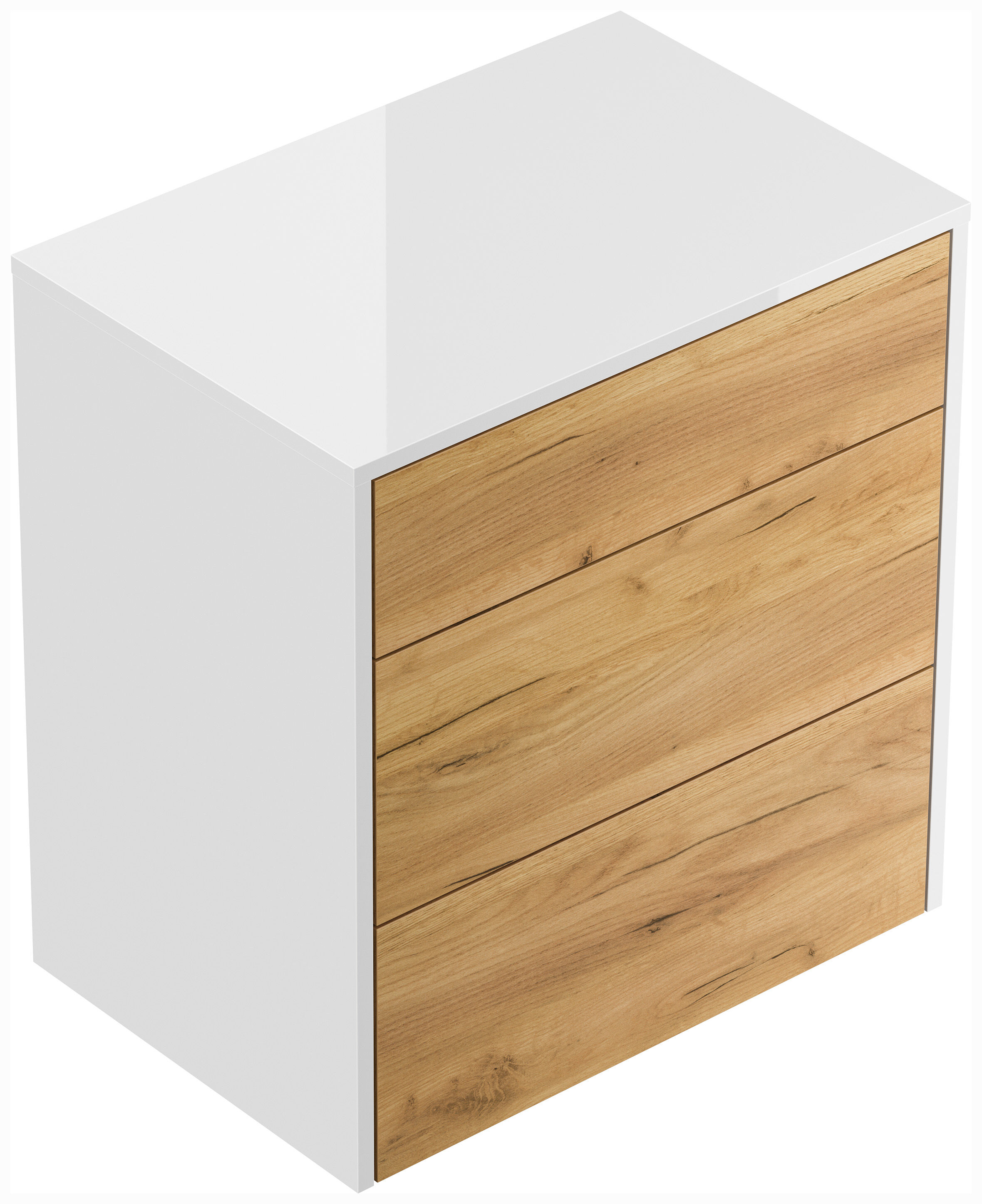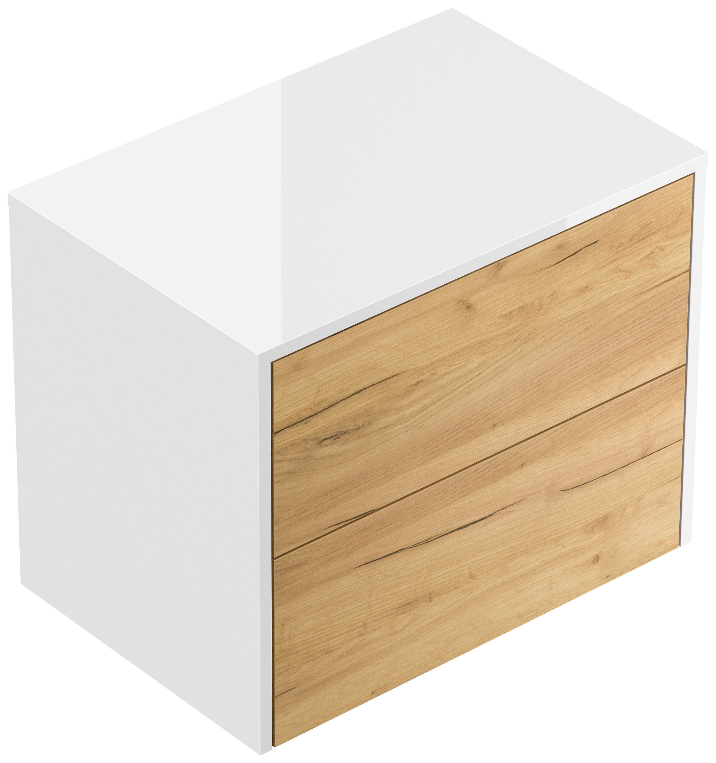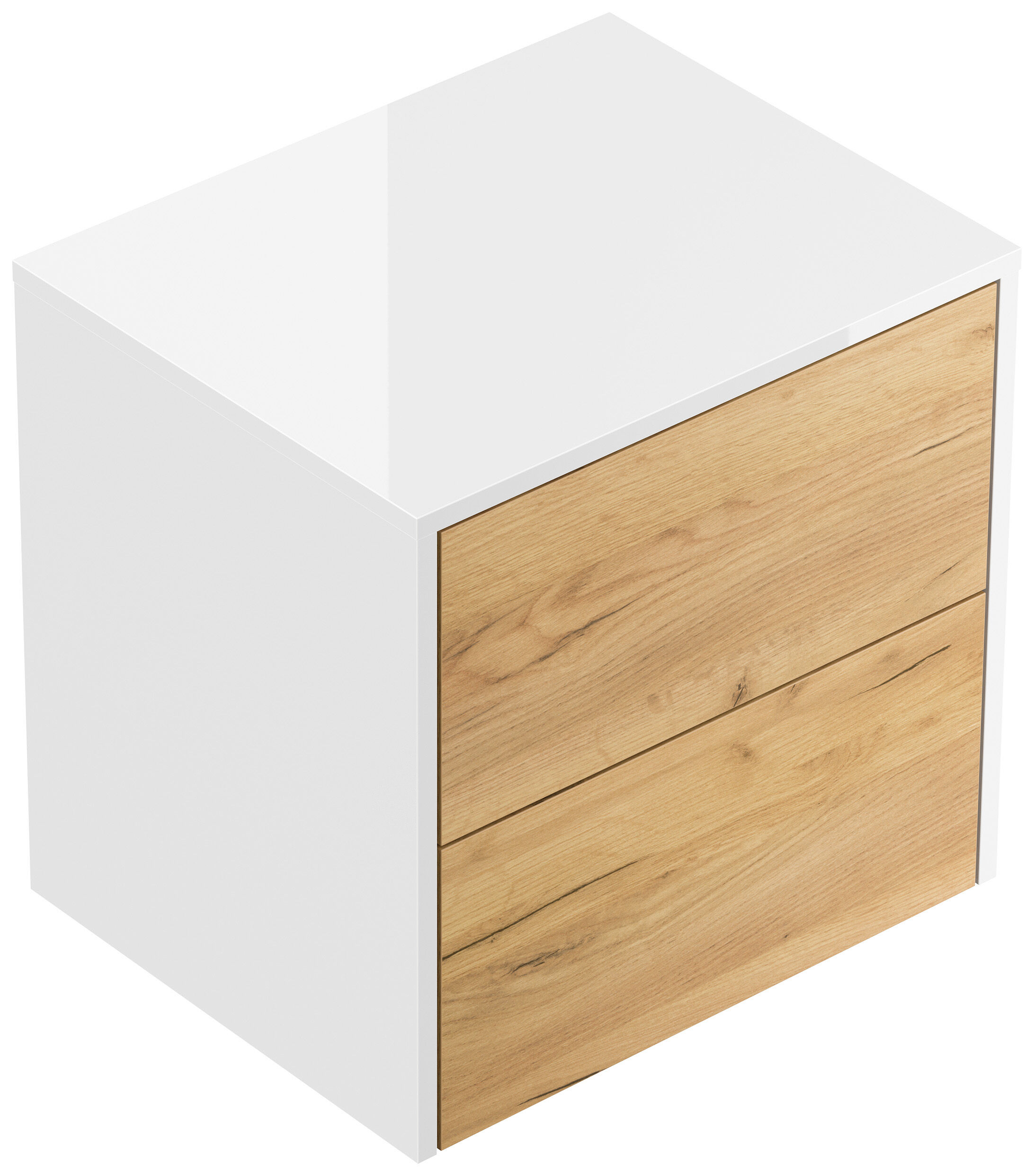 Nachttisch Yako 50cm 2 SoftClose-Einzüge stehend Weiß & Eiche Front