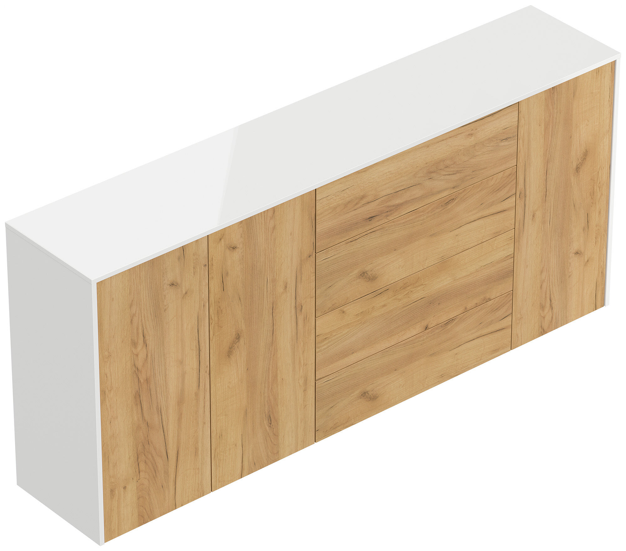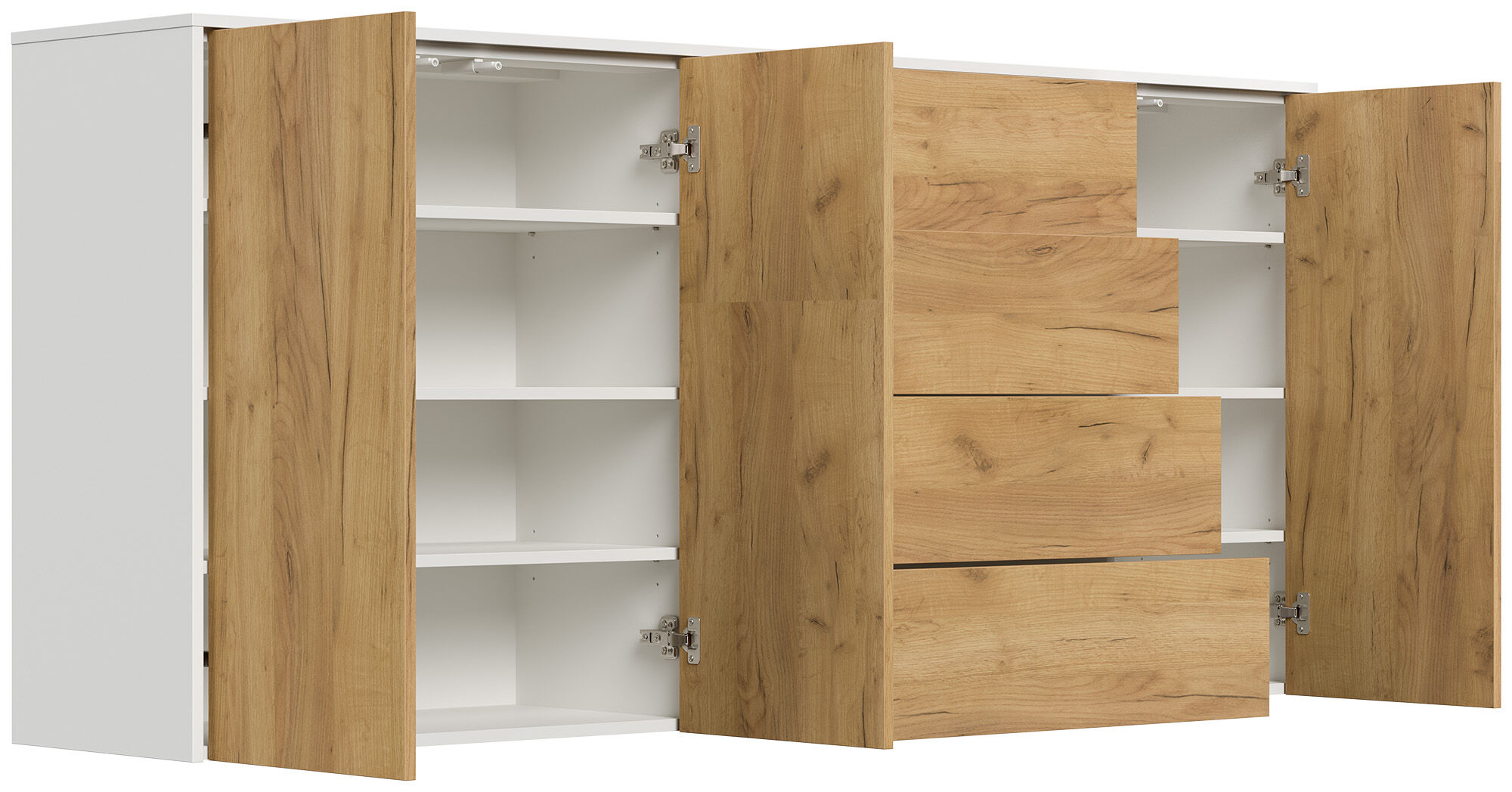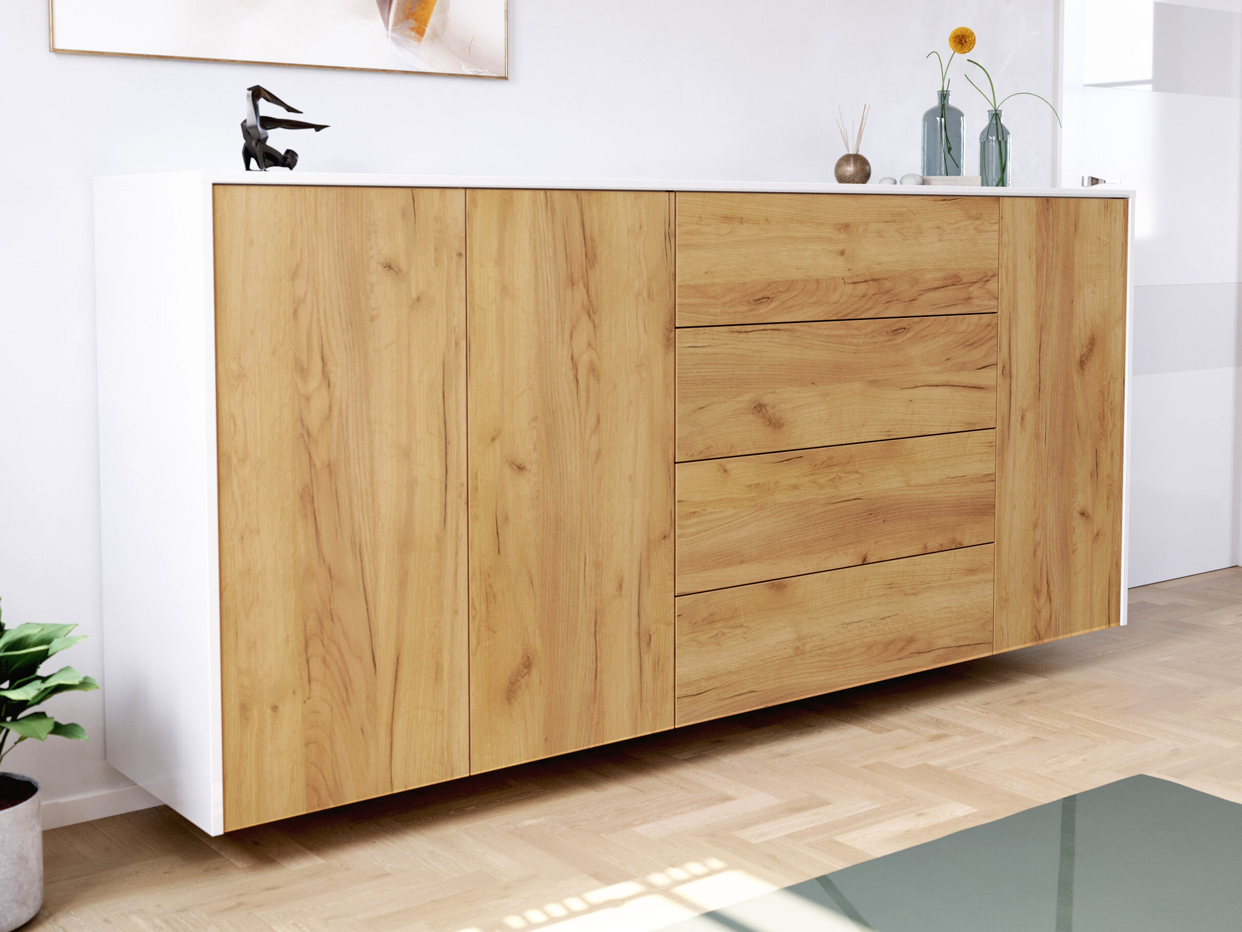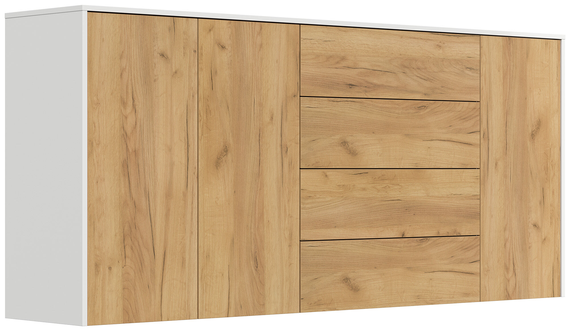 Sideboard Impulse 200cm 3 Türen 4 Pushauszüg Weiß Hgl Eiche