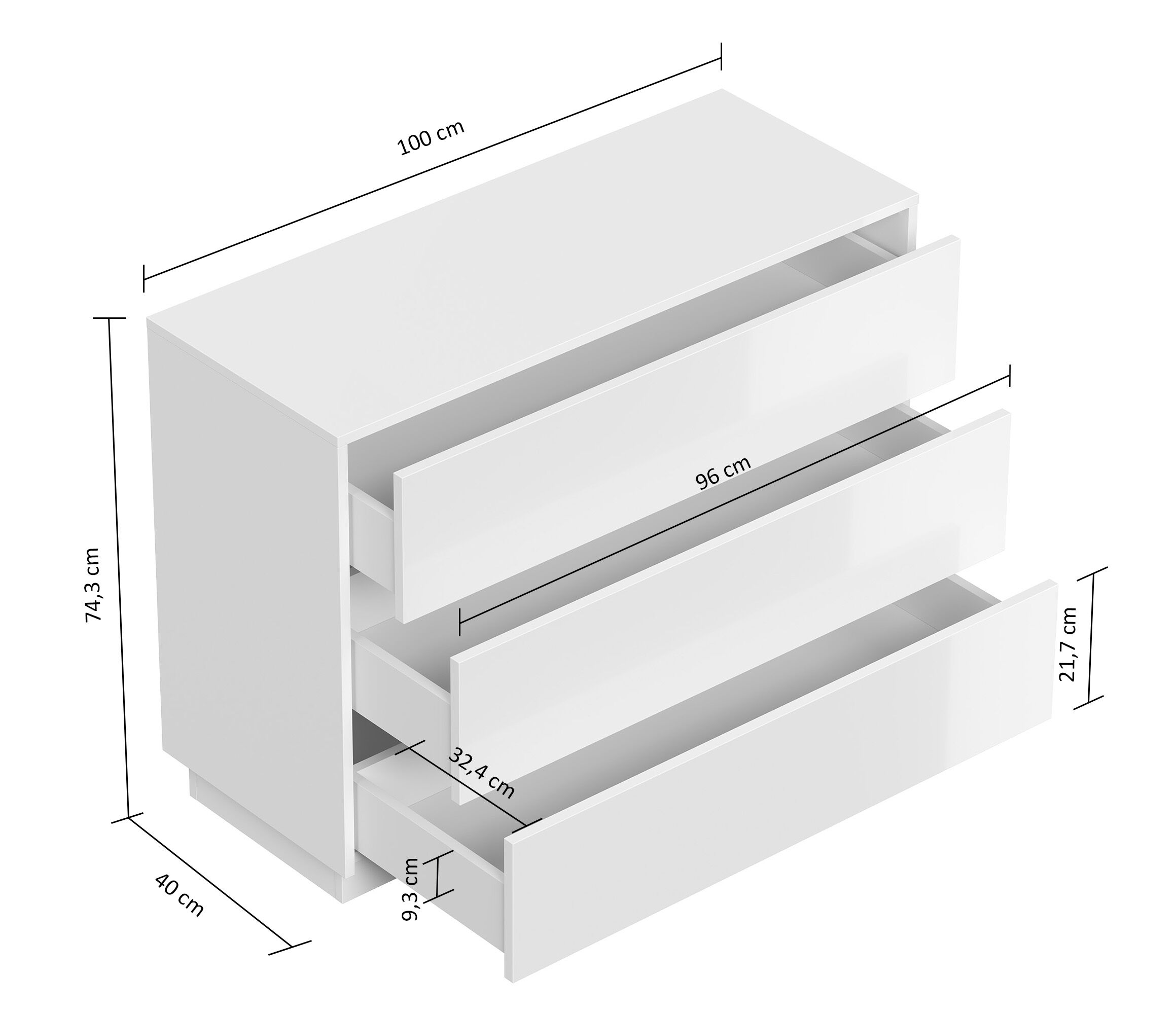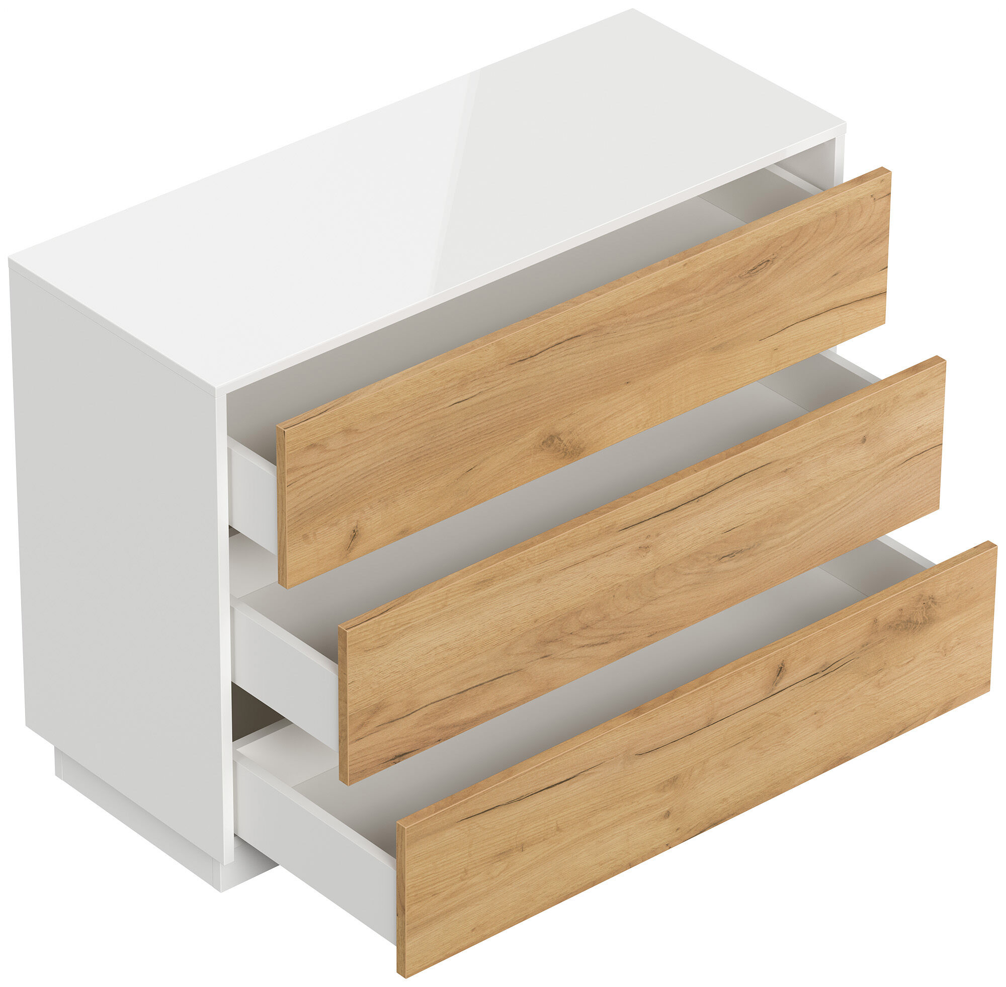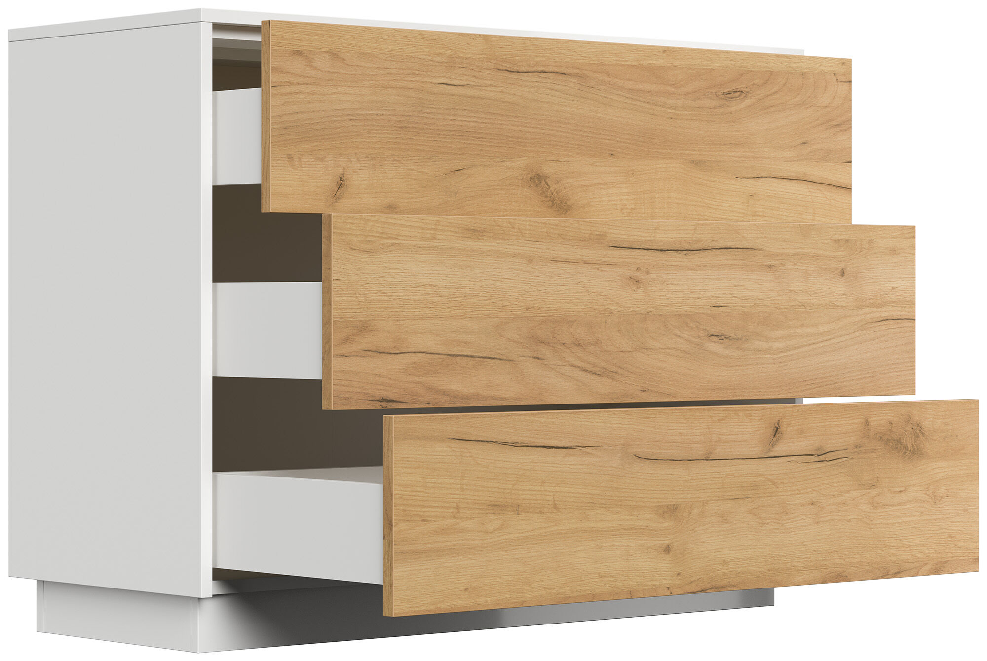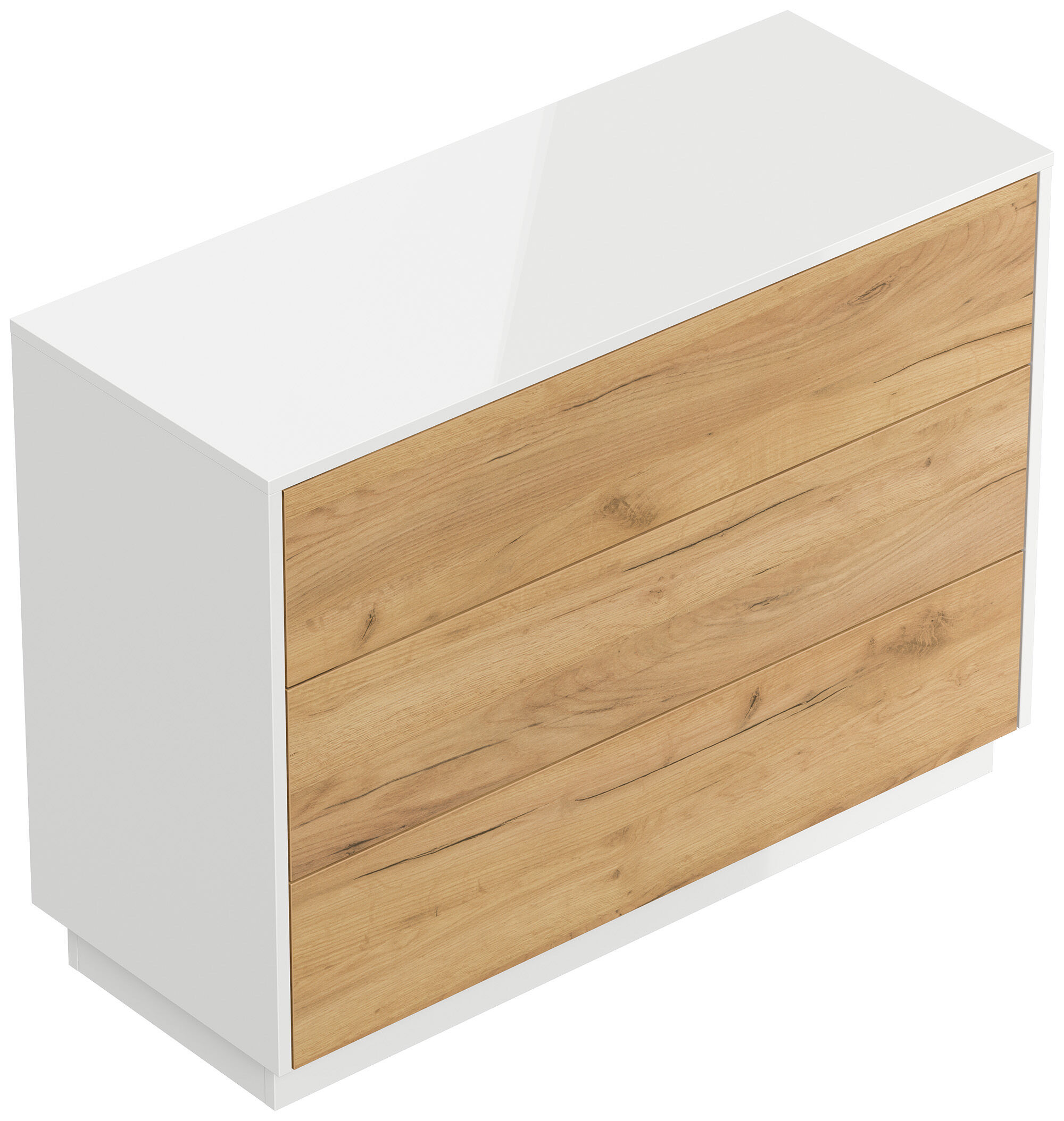 Sideboard Kommode Hero B stehend 100cm 3 Pushauszüge Weiß Hgl Eiche
