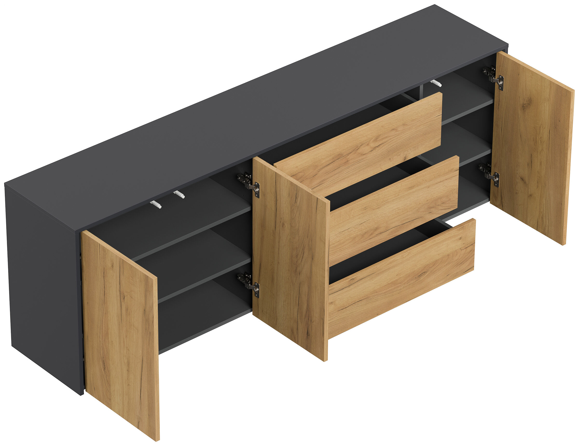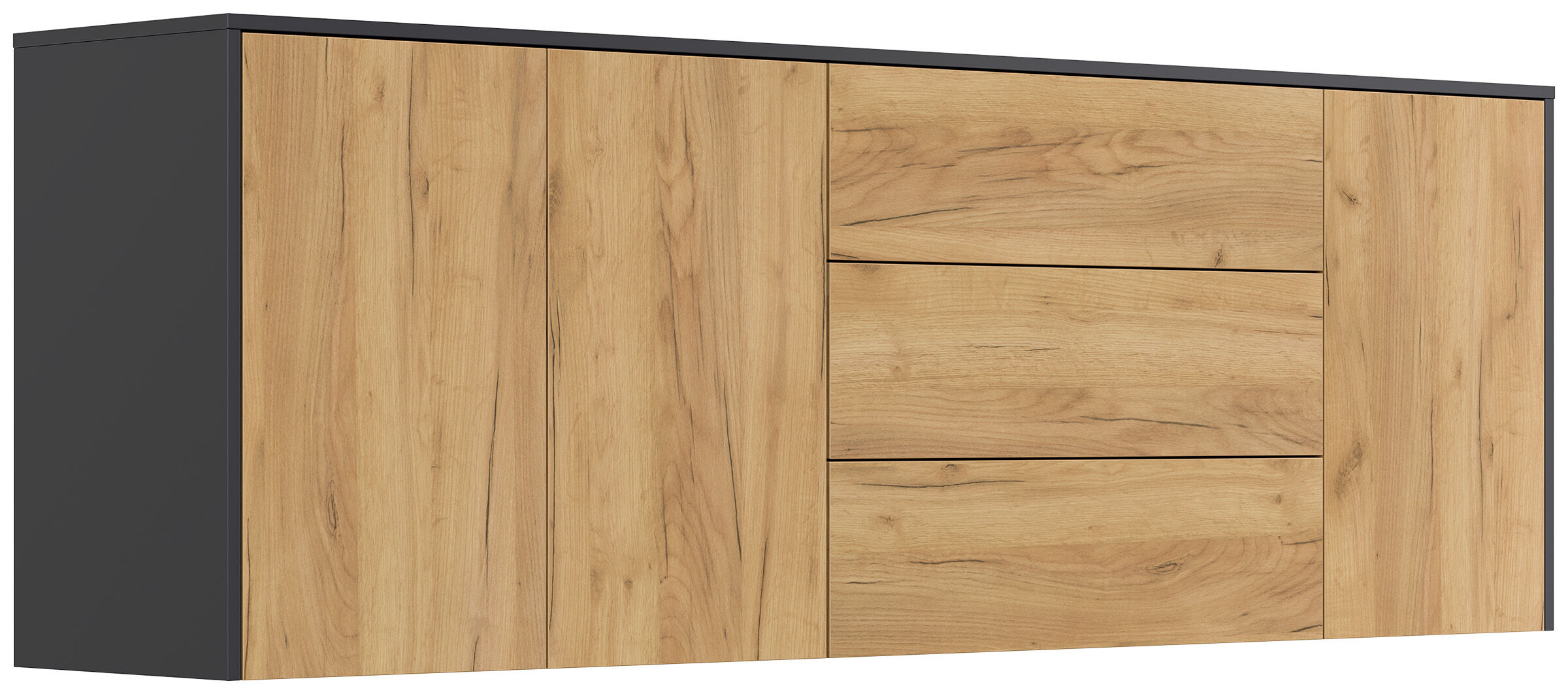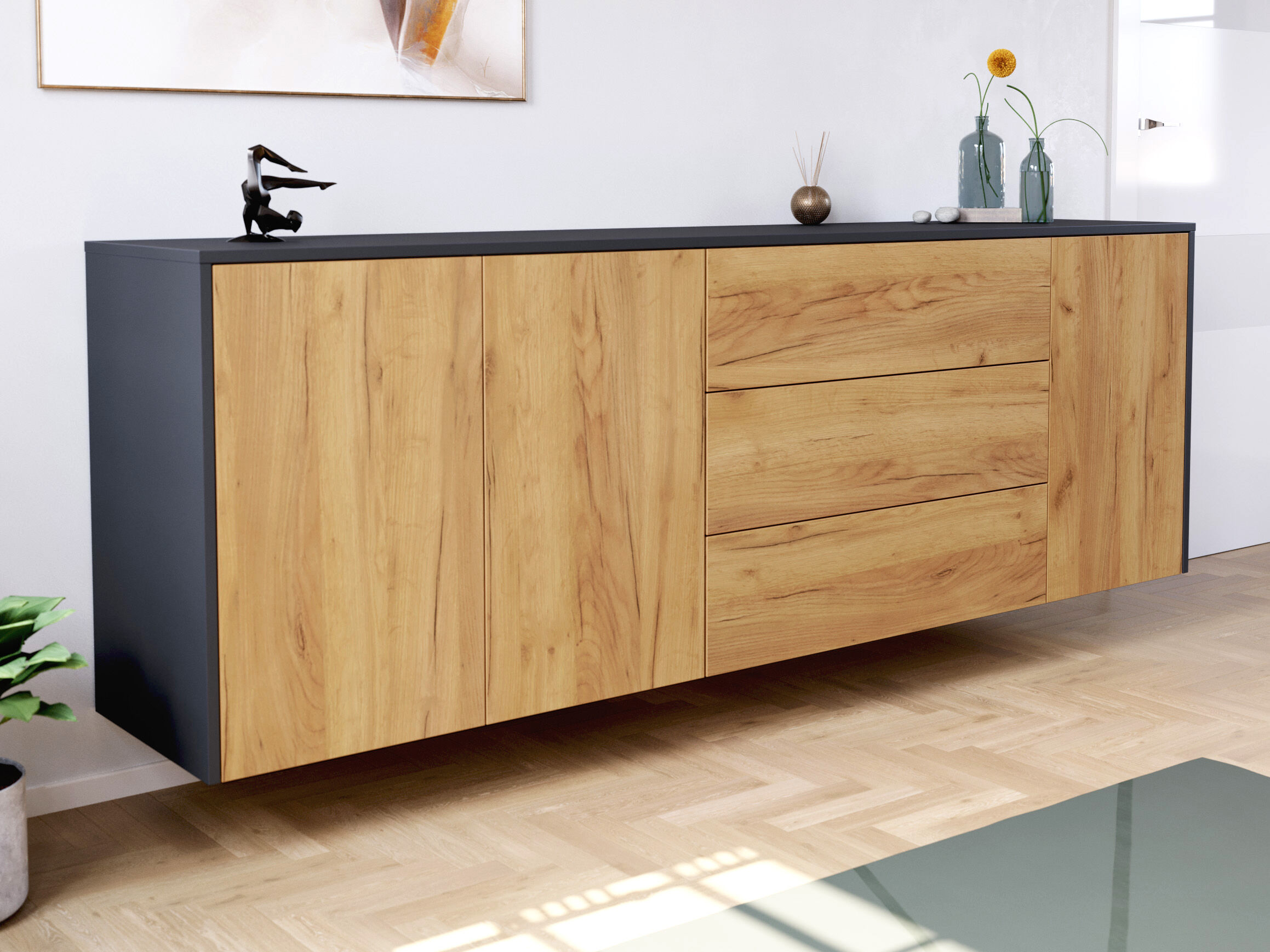 Sideboard Silia B hängend 200cm 3 Türen 3 Pushauszüge Grafit Eiche