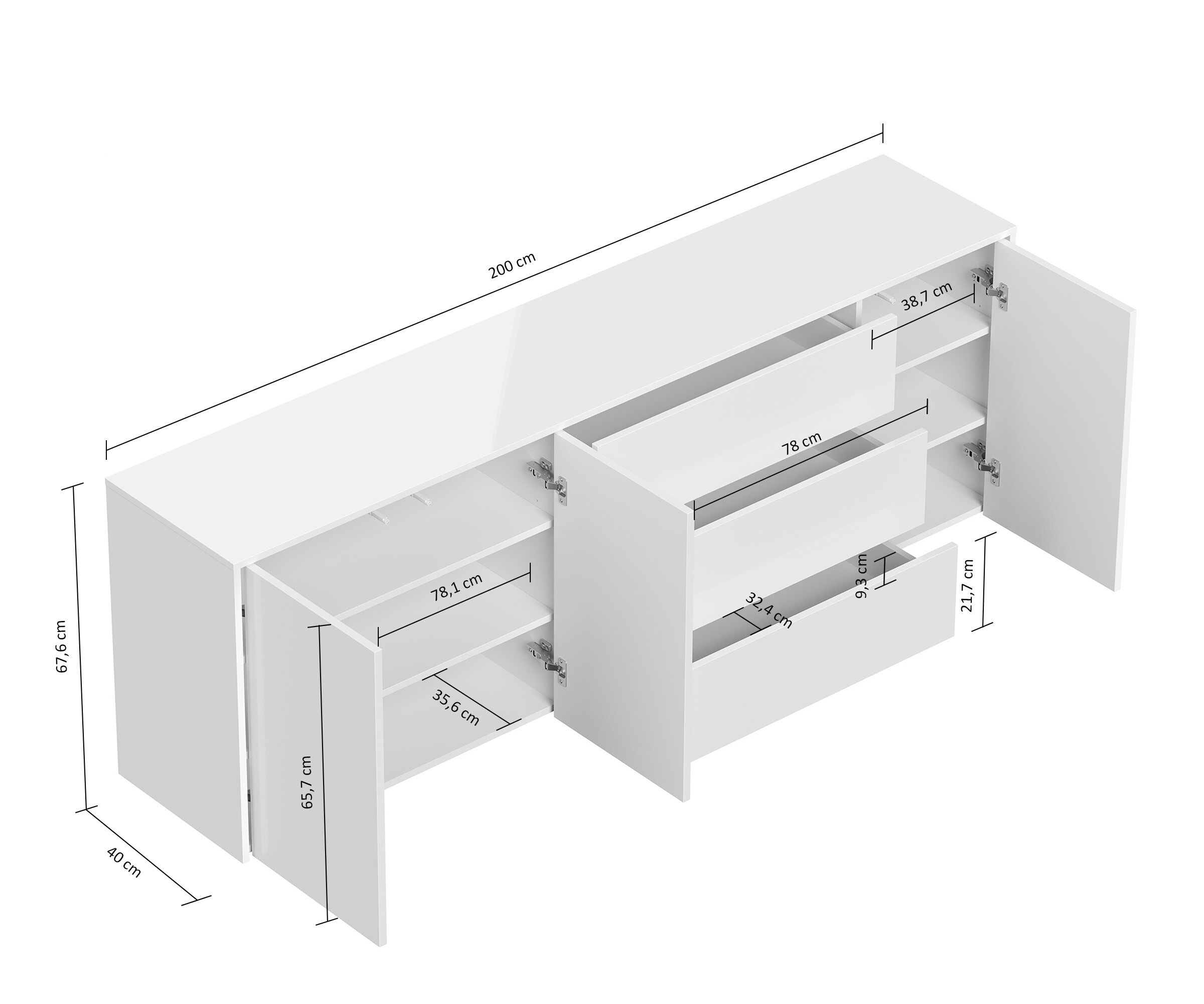Sideboard Silia B 200cm hängend 3 Türen und 3 Push-to-open Schubladen B/H/T 200/67,7/40 cm