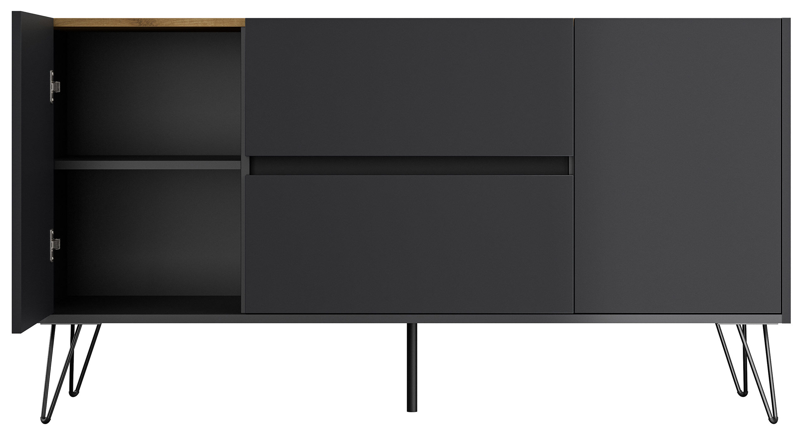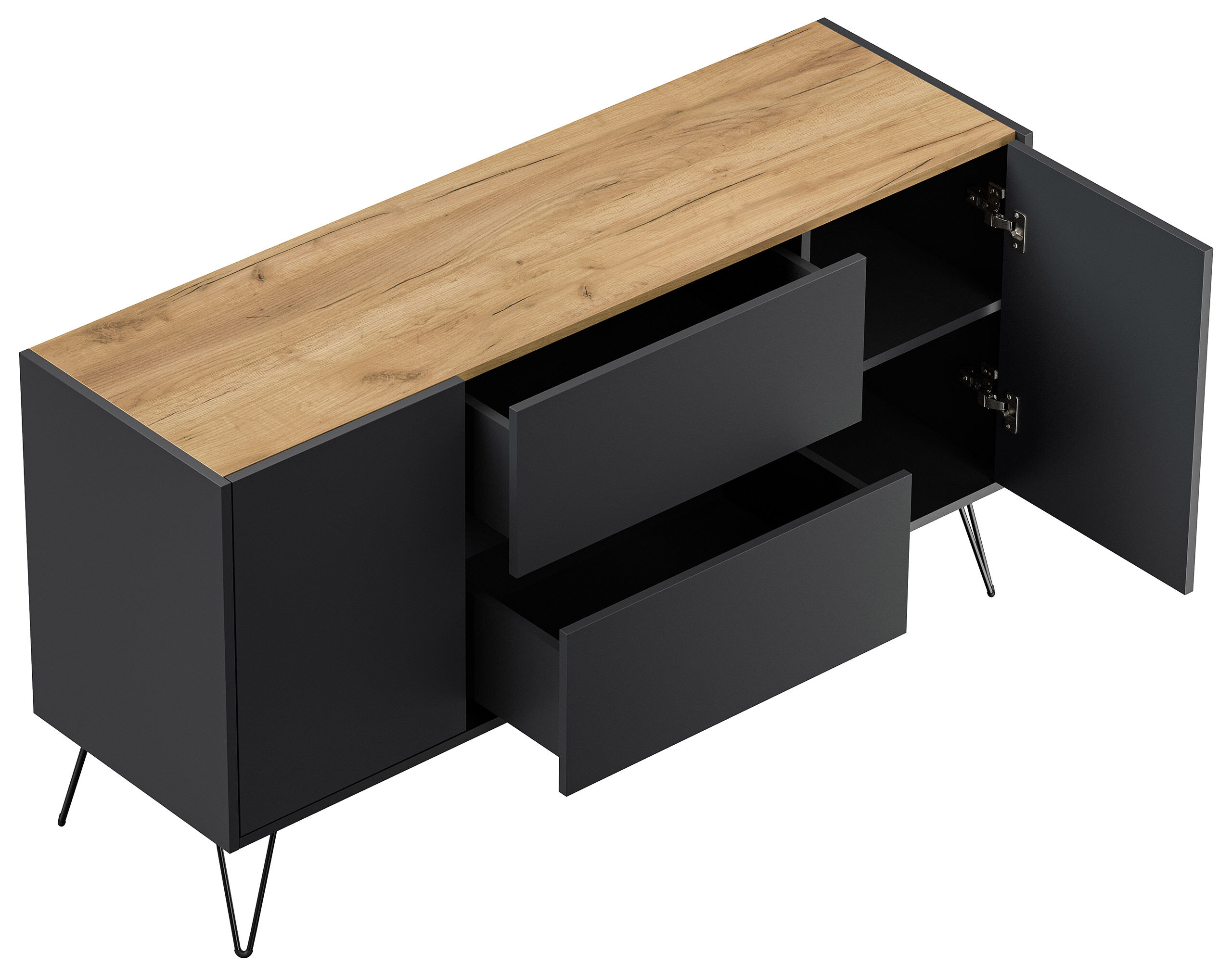 Sideboard Yako 140cm 2 SoftClose 2 Türen Grafit/Eiche Top