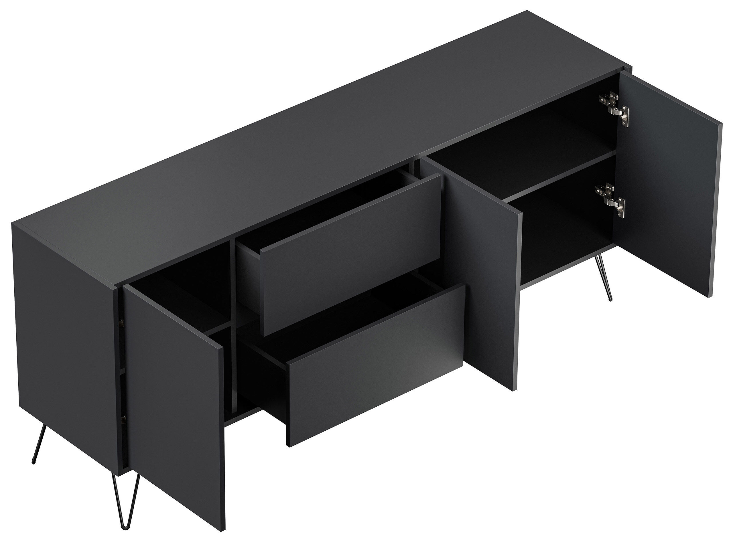 Yako Sideboard stehend mit Industriefüßen 180cm mit 2 SoftClose Schubladen und 3 Türen