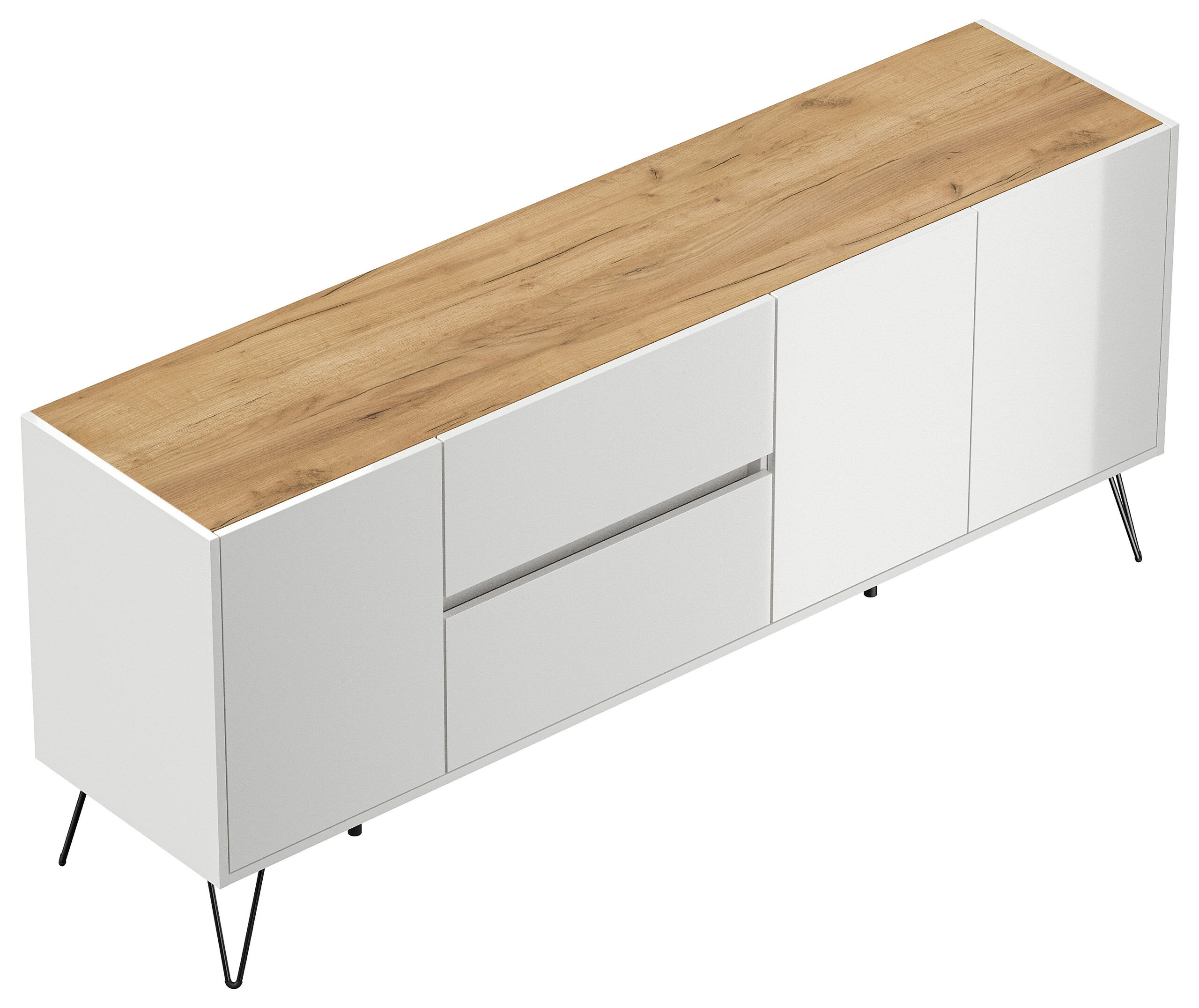 Sideboard Yako 180cm 2 SoftClose 3 Türen Weiß/Eiche Top