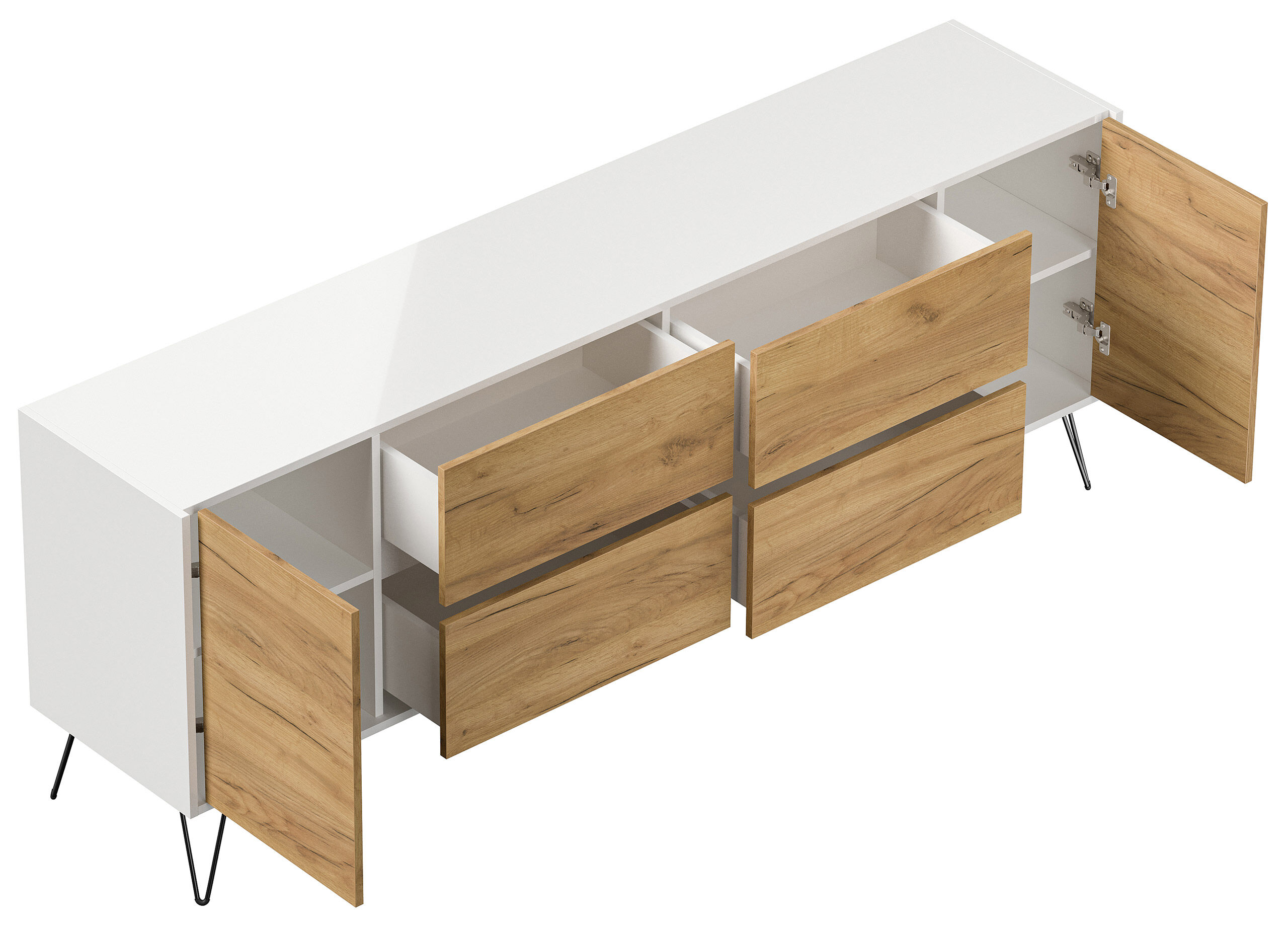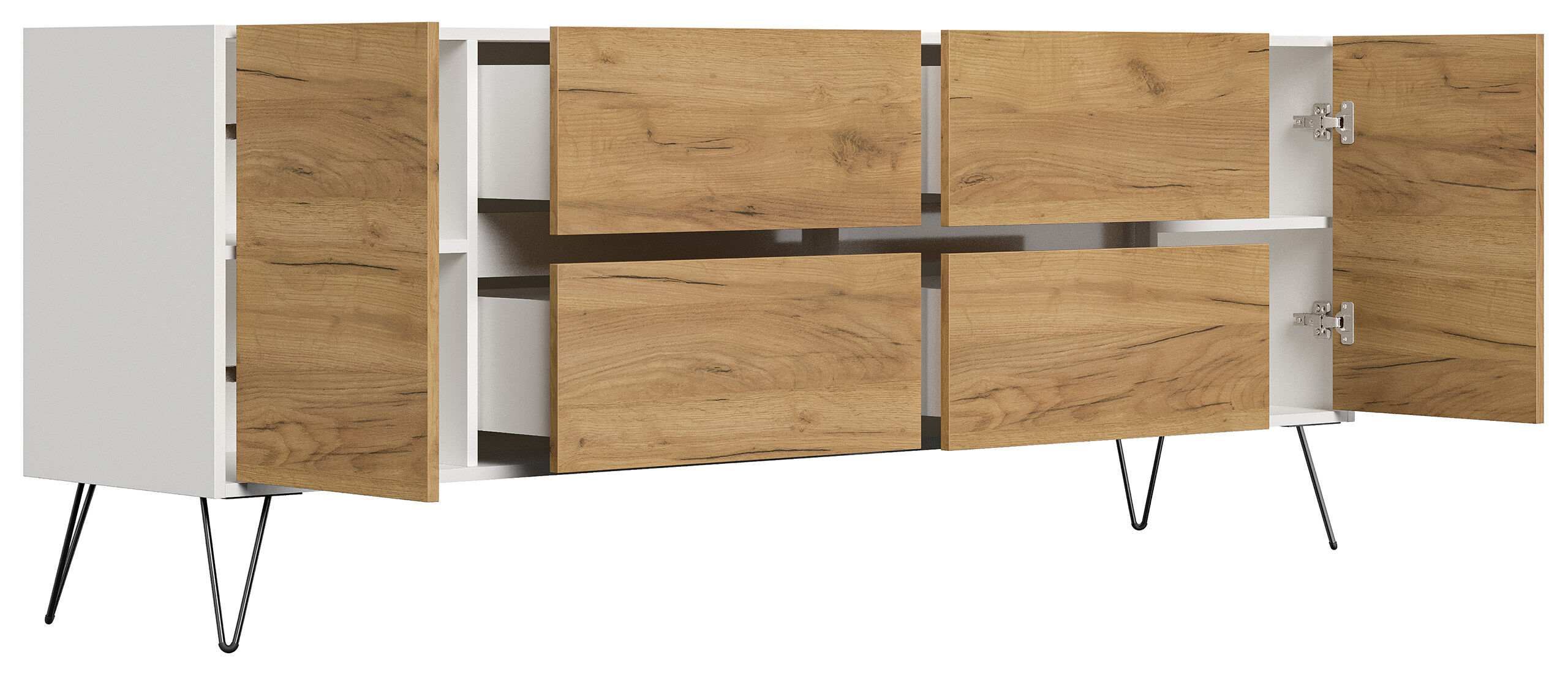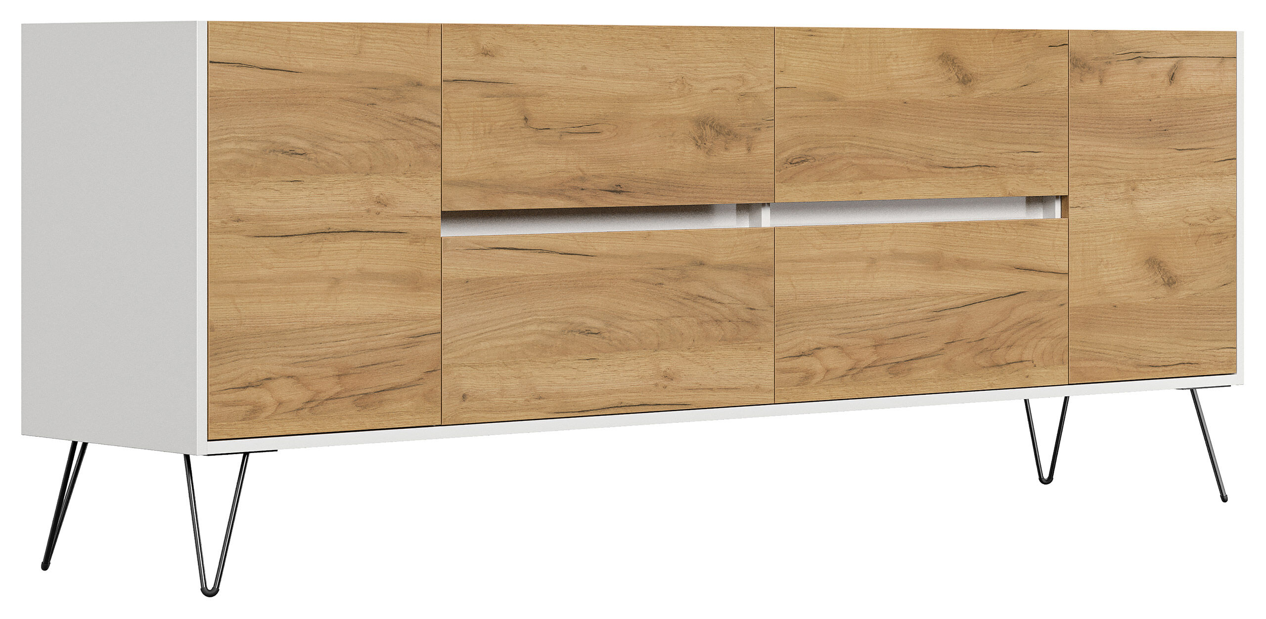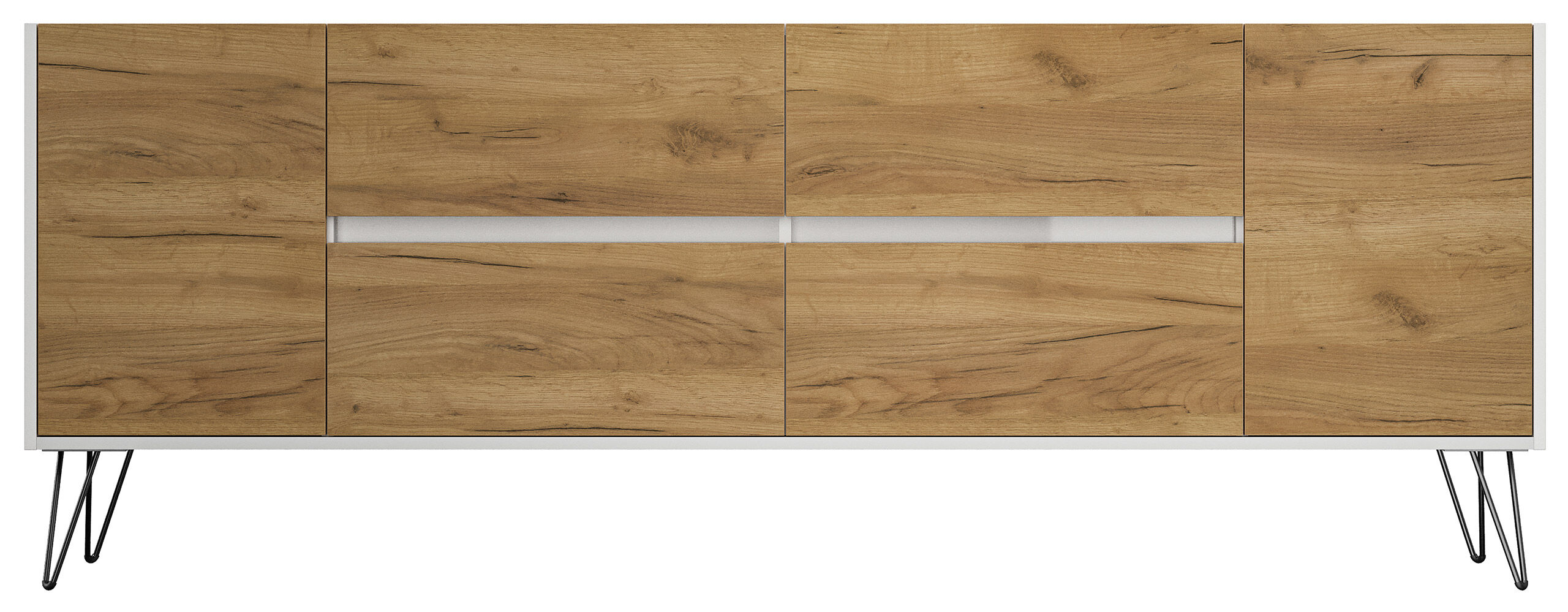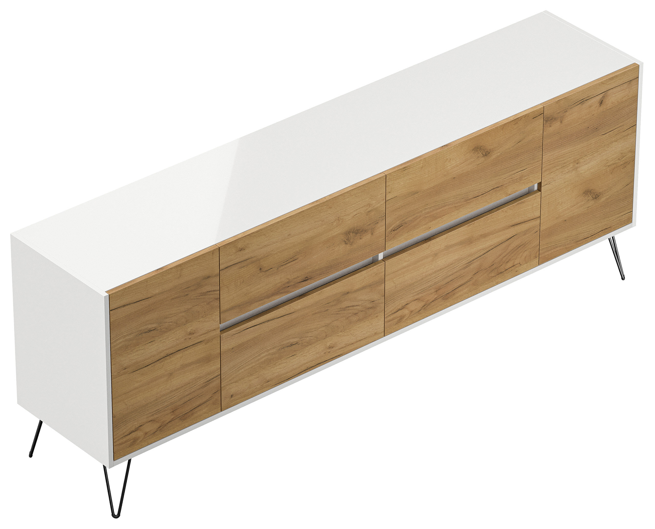 Sideboard Yako 200cm 4 SoftClose 2 Türen Weiß/Eiche Front