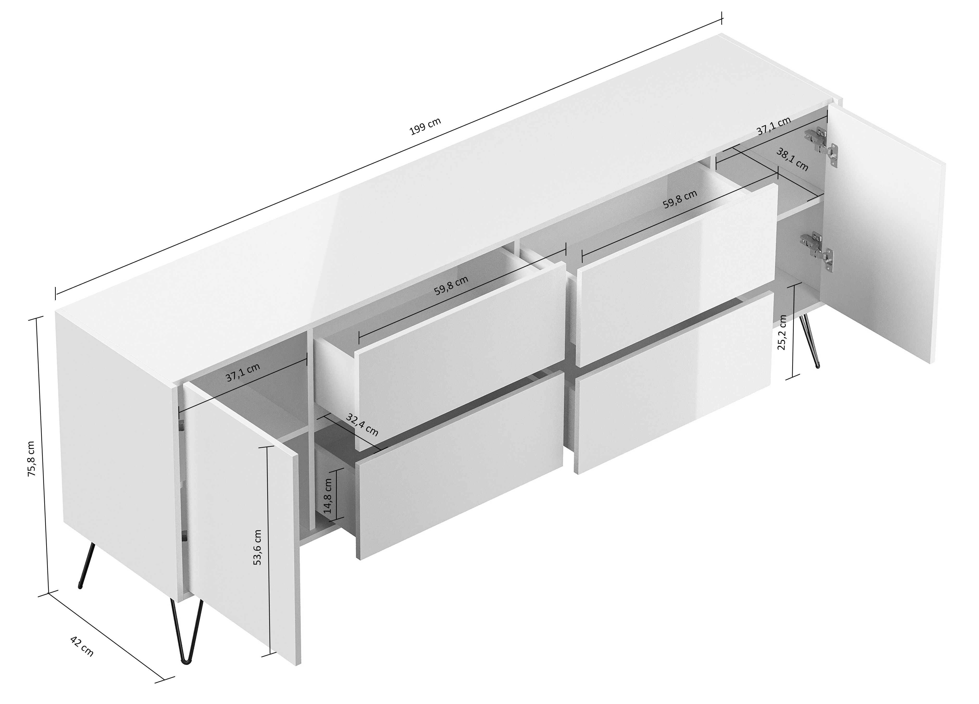 Maße (H/B/T): 75.8 / 199 / 42 cm