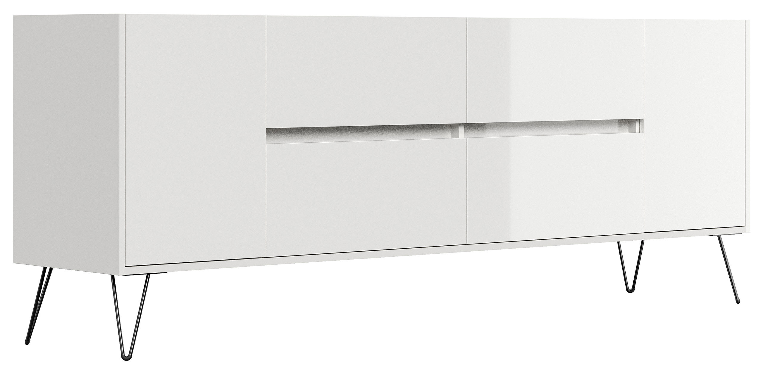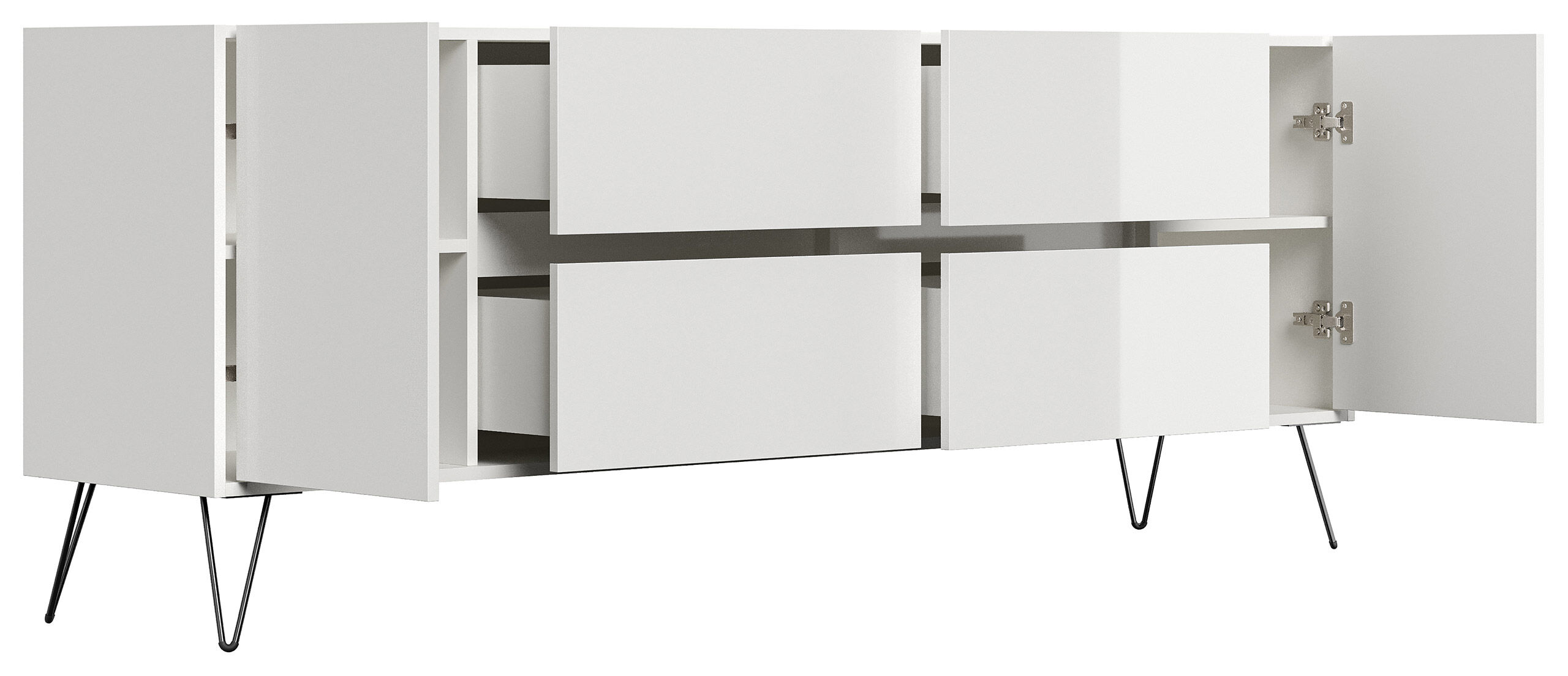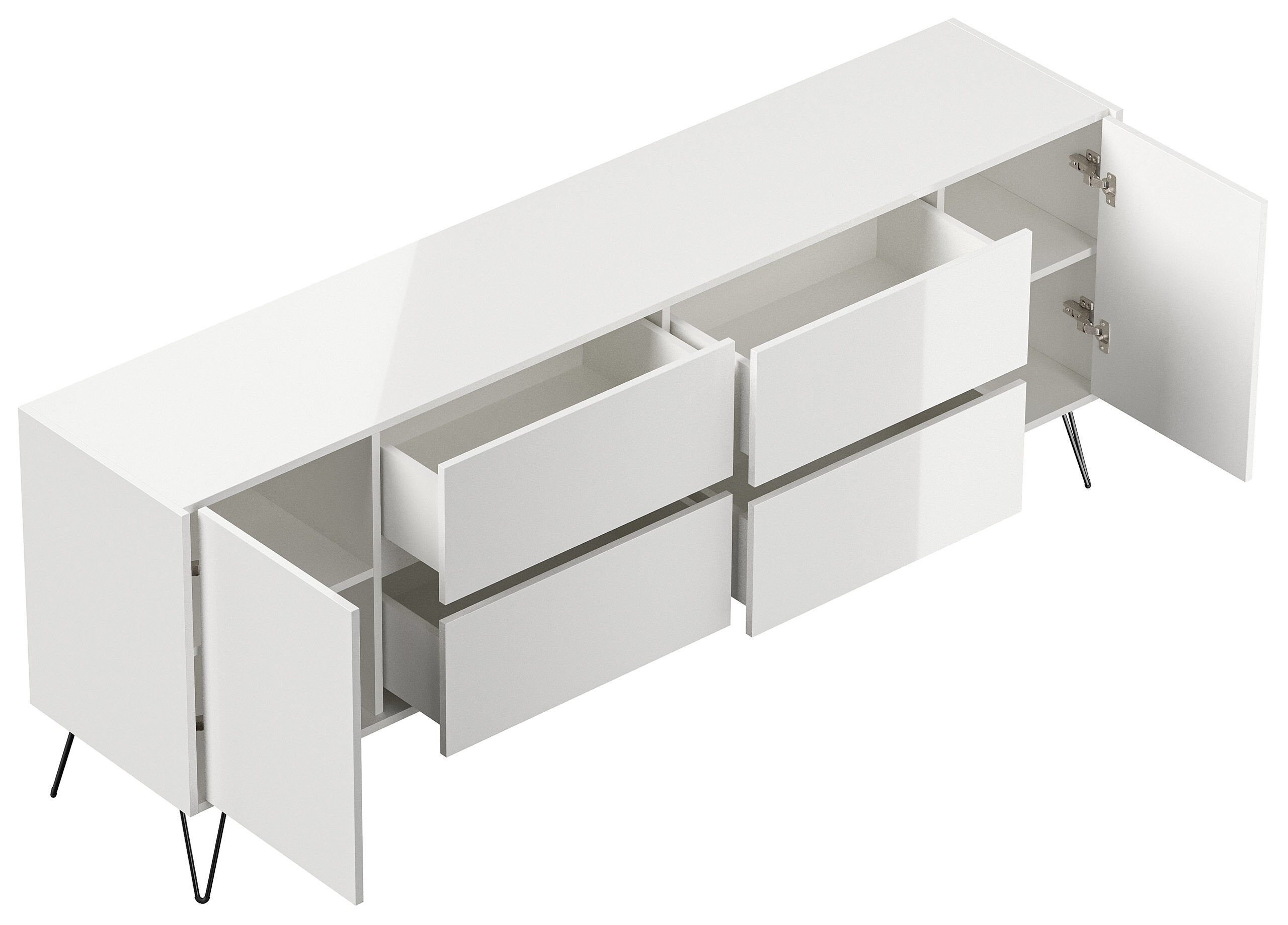 Sideboard Yako 200cm 4 SoftClose 2 Türen Weiß hochglanz