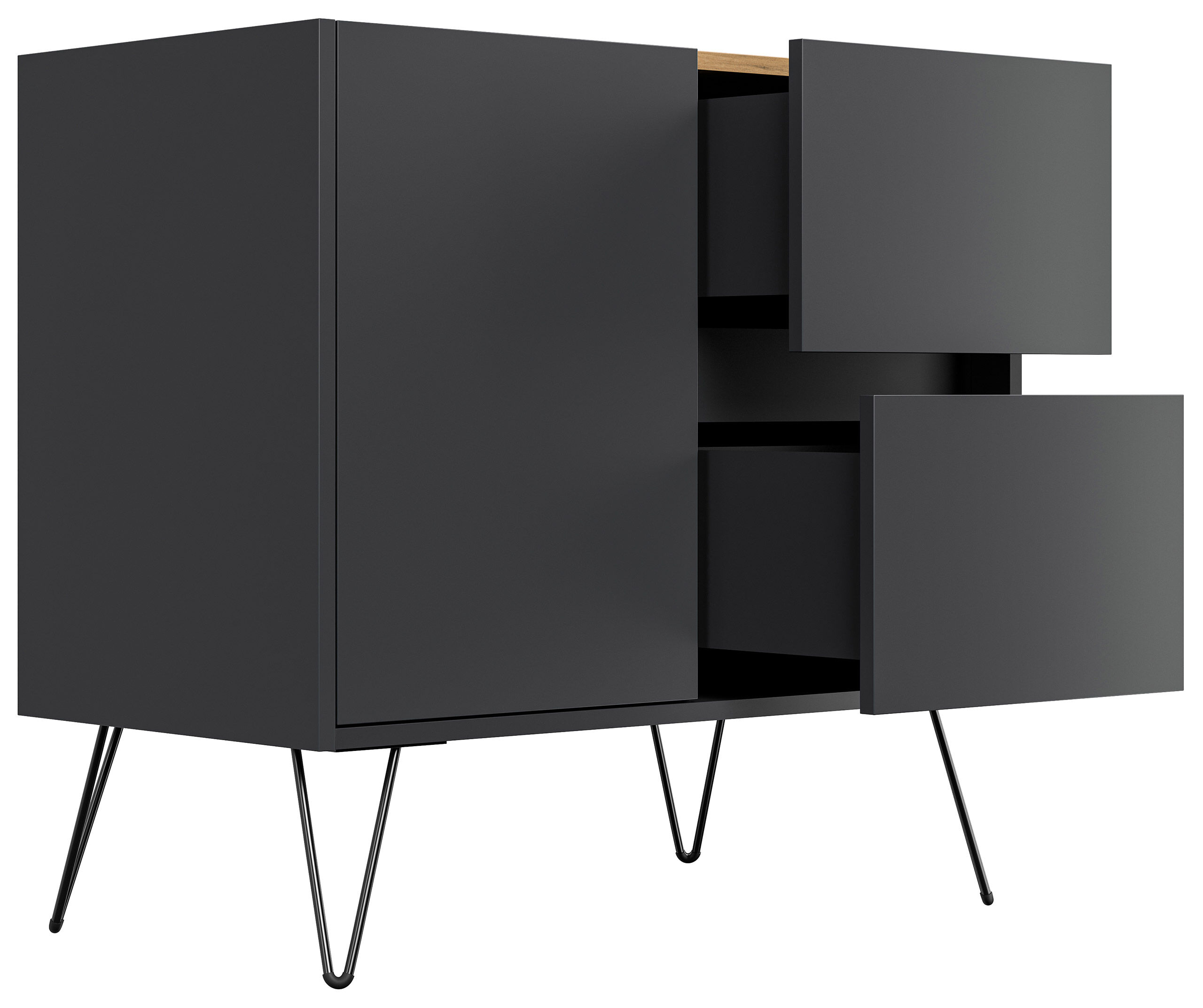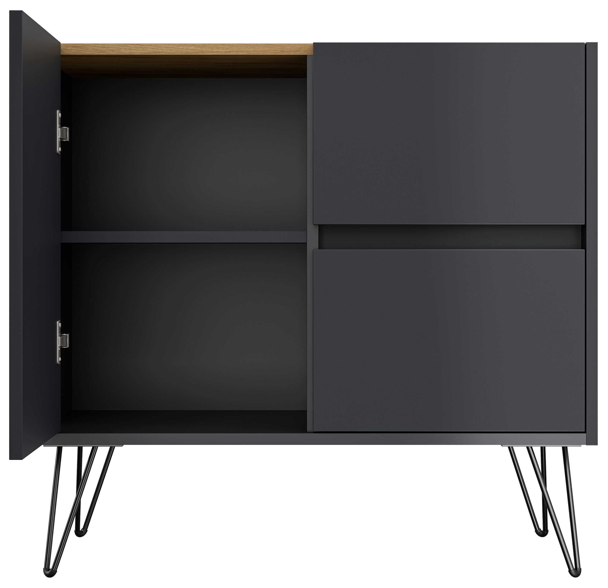 Sideboard Yako 80cm 2 SoftClose 1 Tür Grafit/Eiche Top
