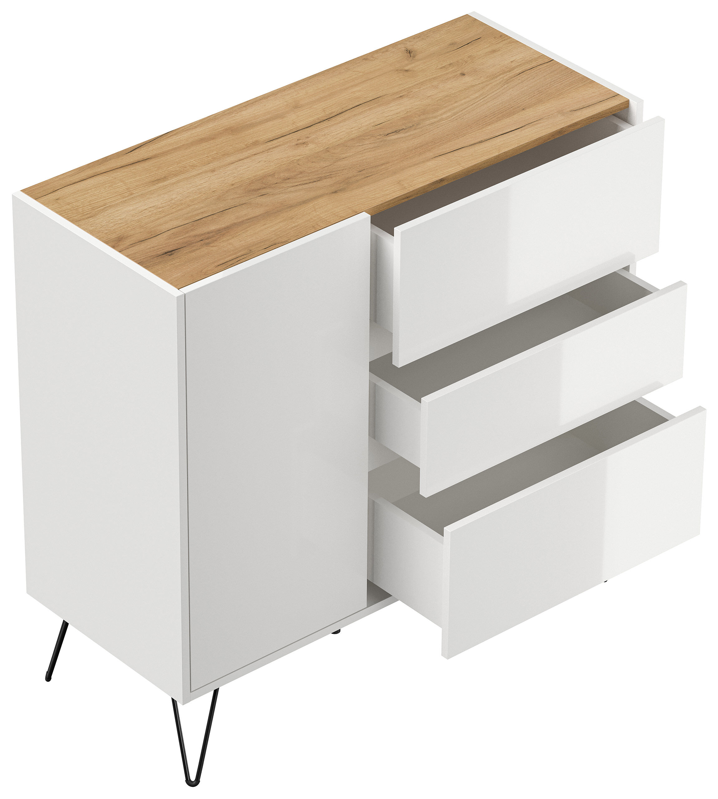 Sideboard Yako XL 100cm 3 SoftClose 1 Tür Weiß/Eiche Top