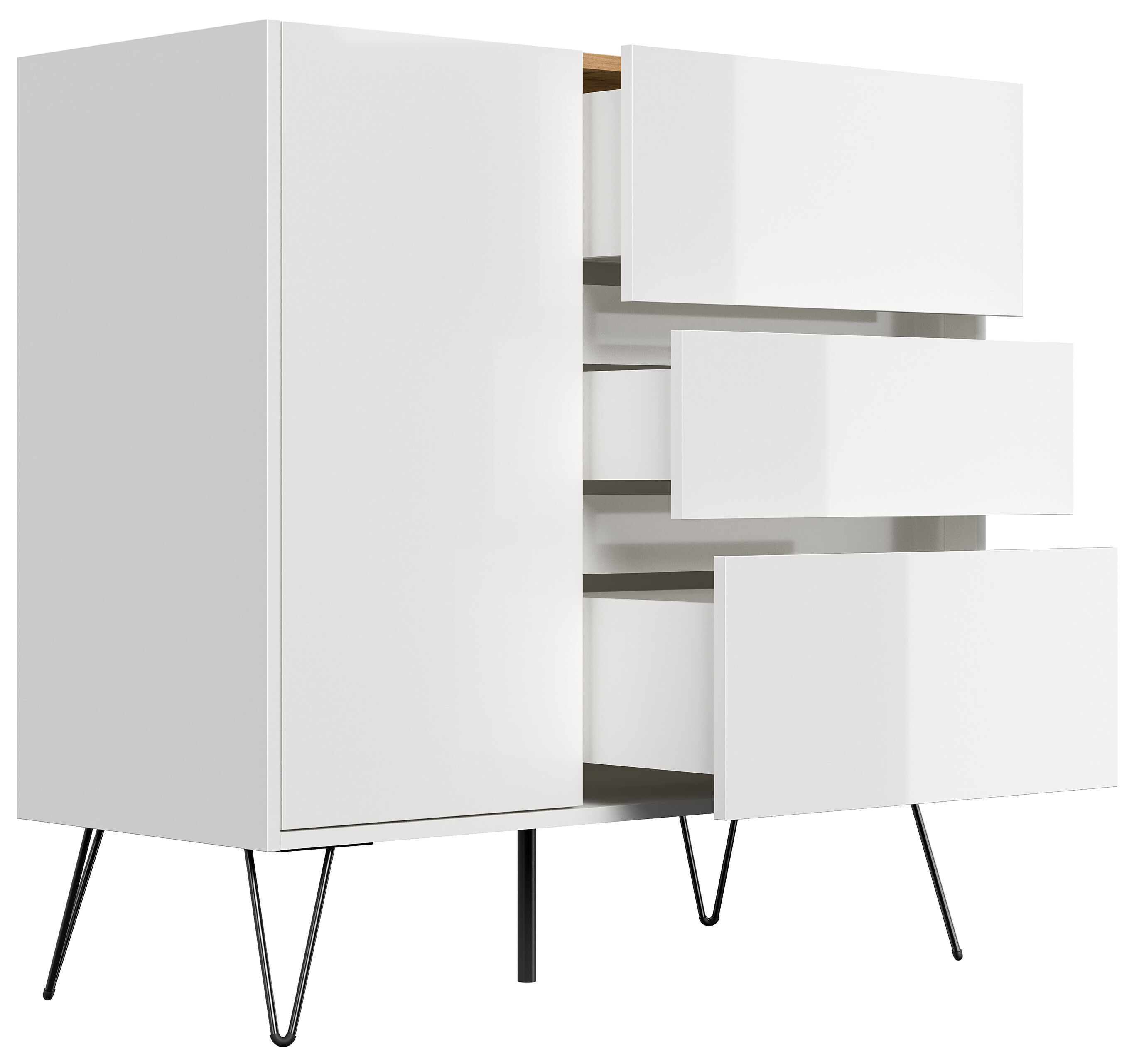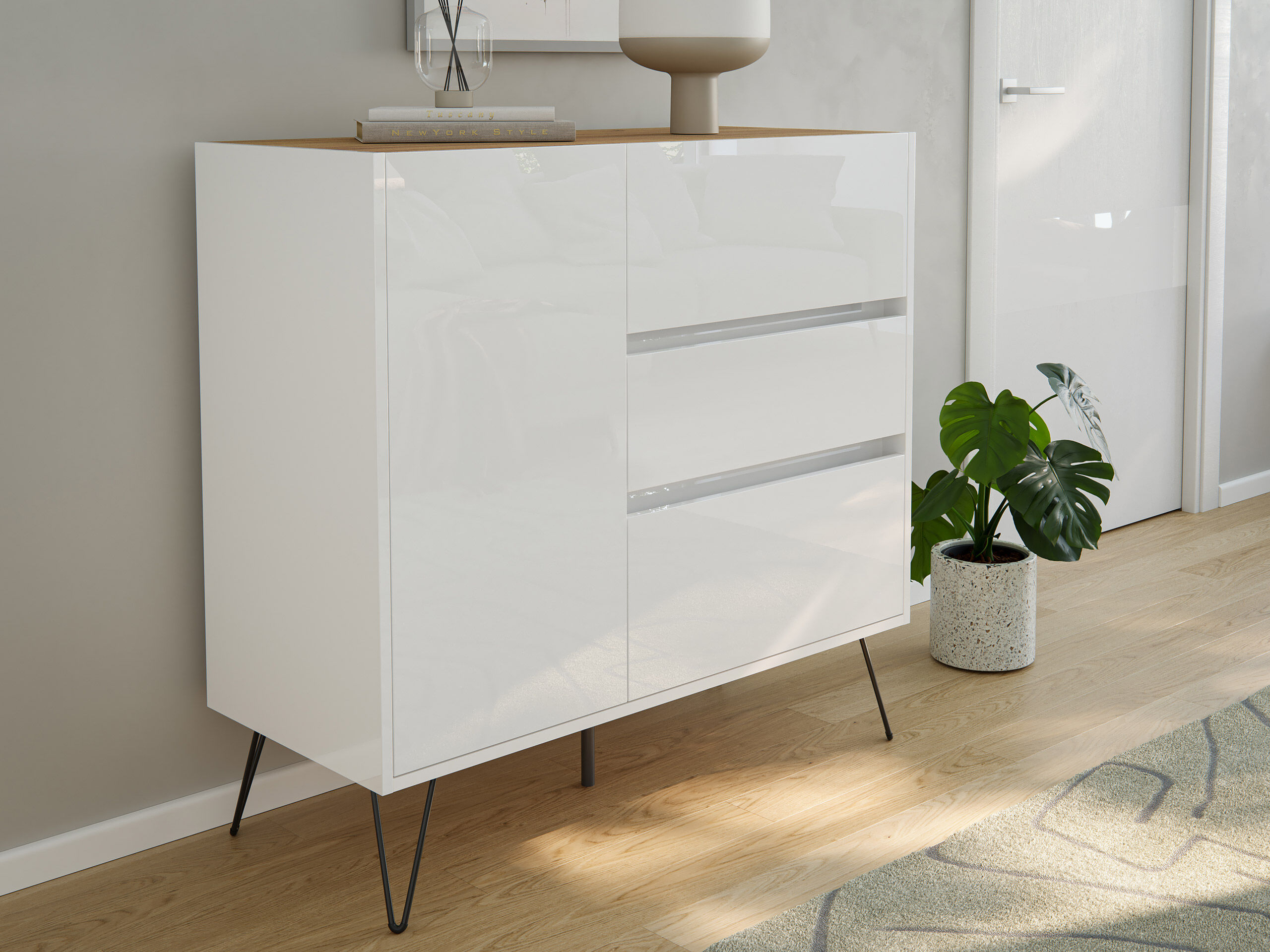 Sideboard Yako XL stehend mit Industriefüßen 100cm mit 3 SoftClose Schubladen und einer Tür