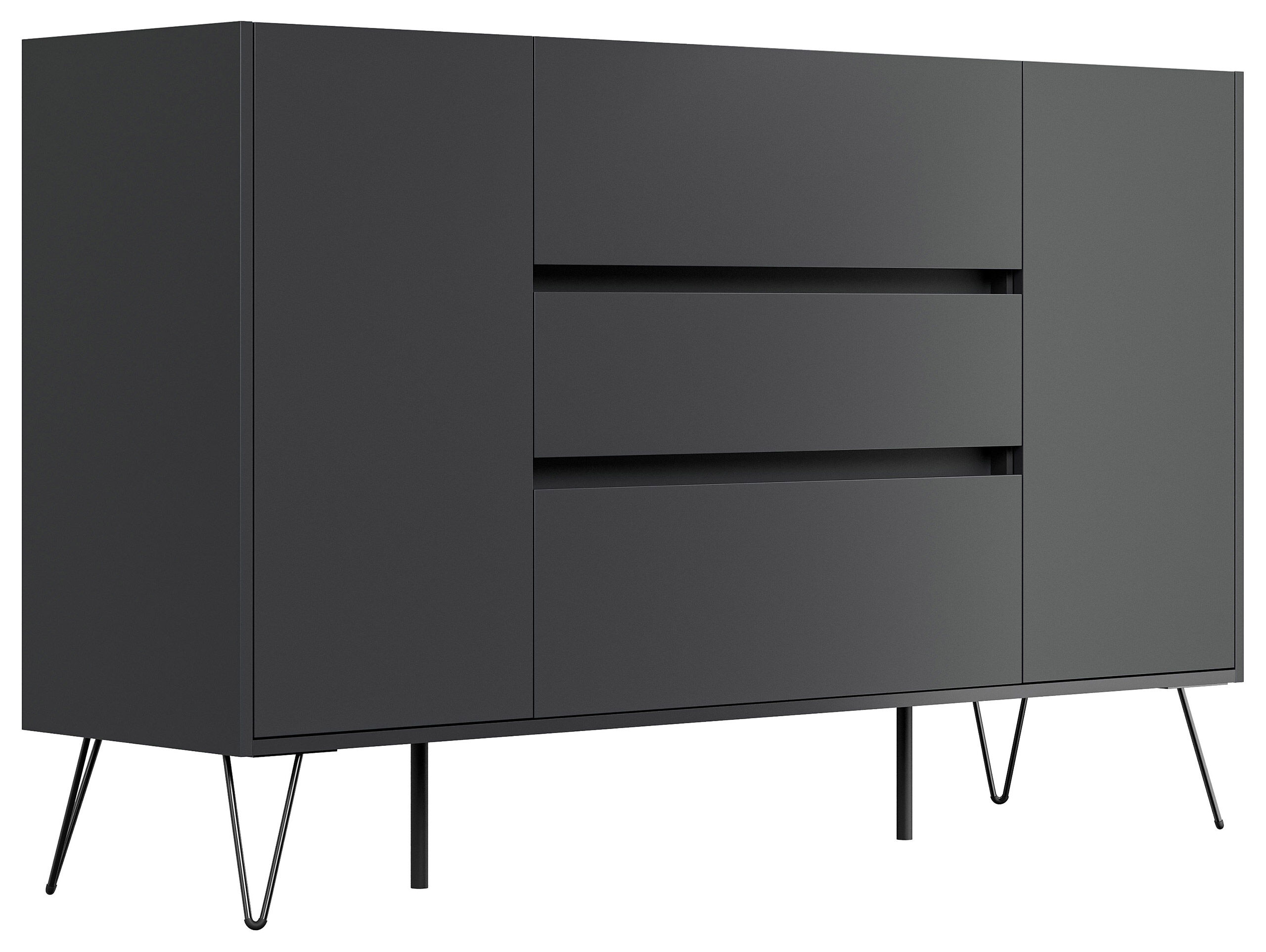 Sideboard Yako XL stehend mit Industriefüßen 155cm mit 3 SoftClose Schubladen und 2 Türen