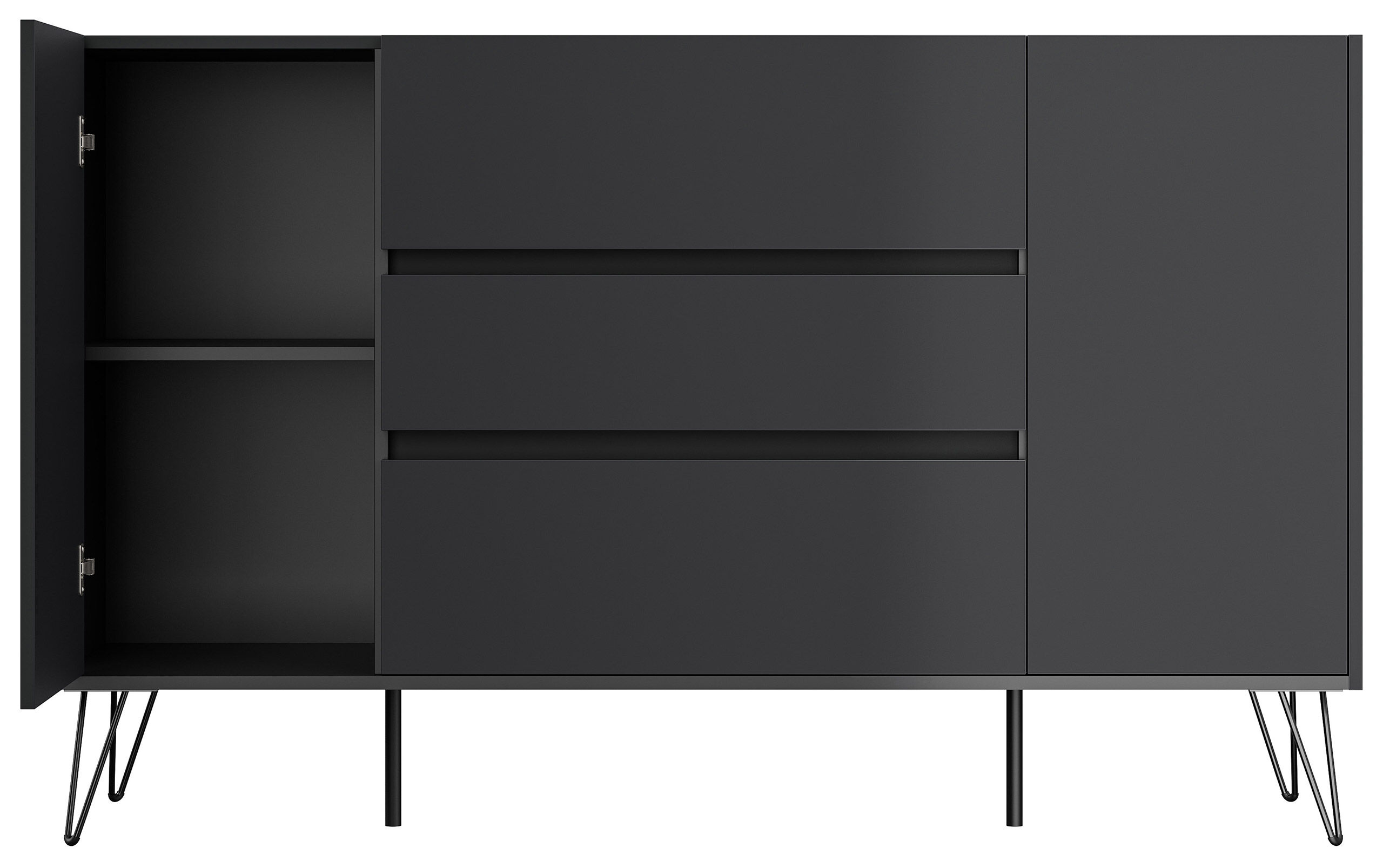 Sideboard Yako XL stehend mit Industriefüßen 155cm mit 3 SoftClose Schubladen und 2 Türen