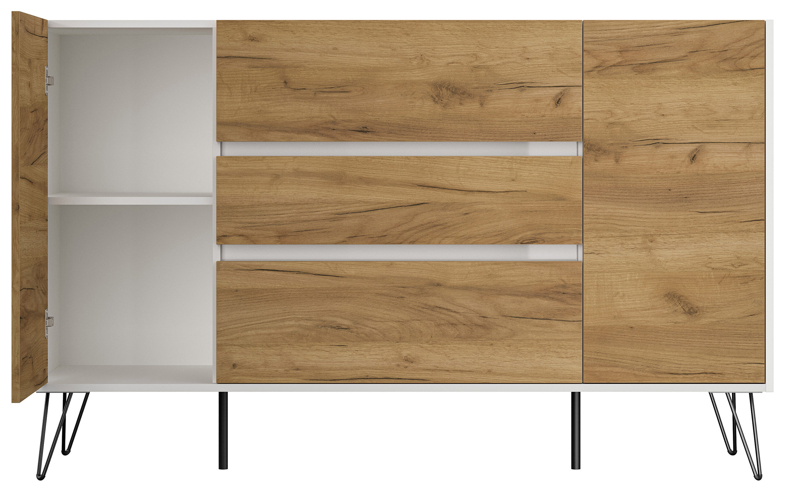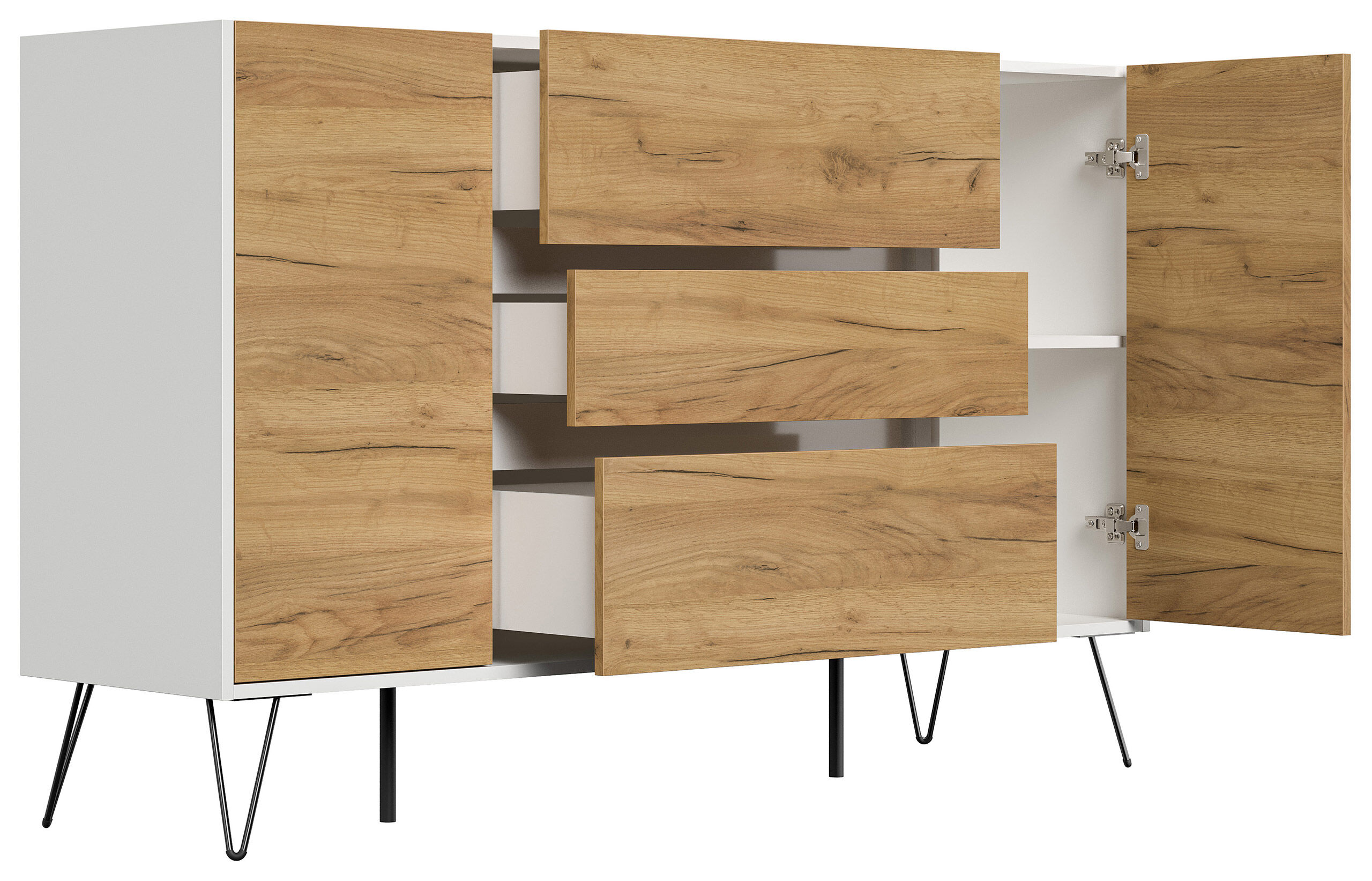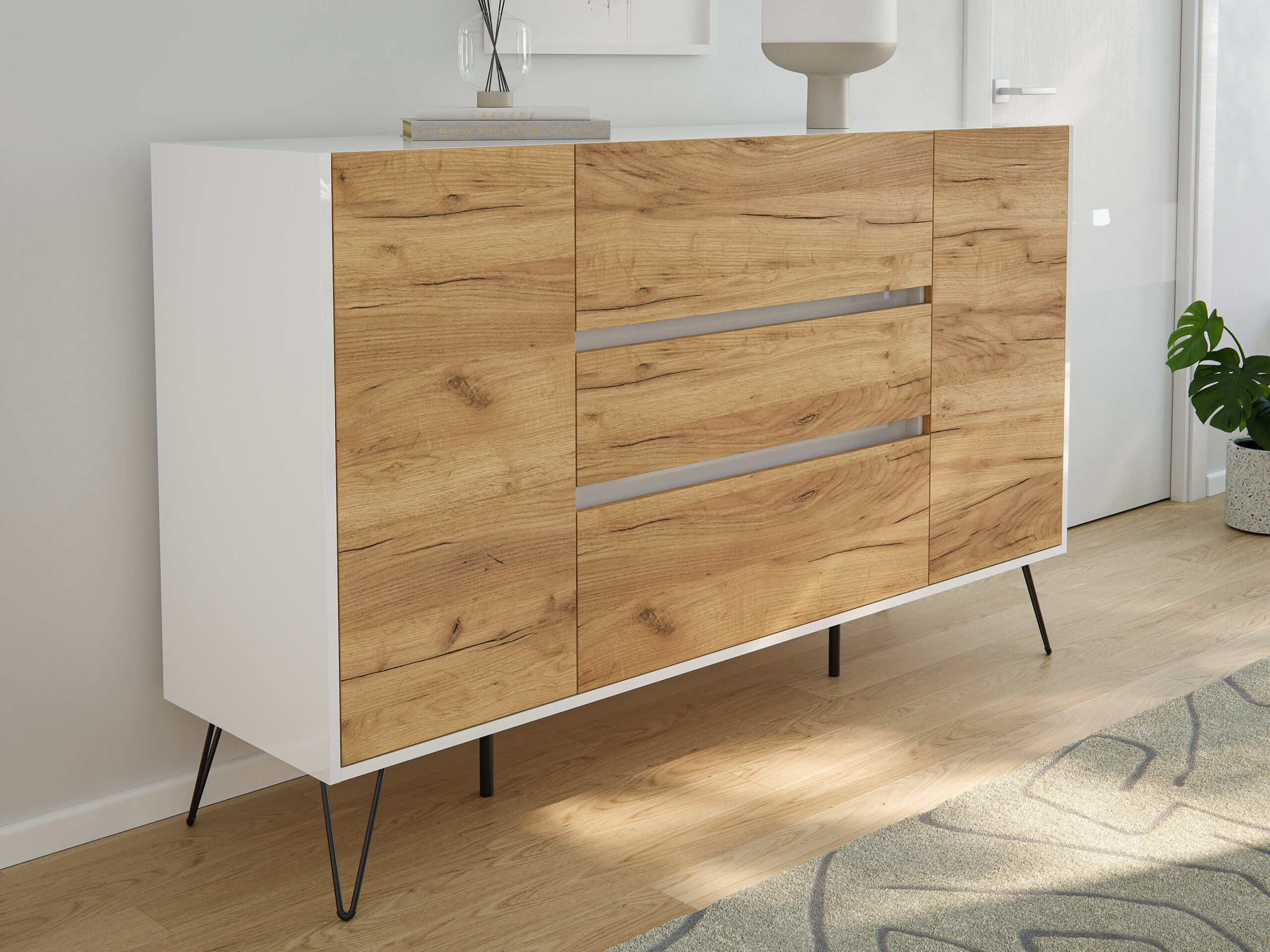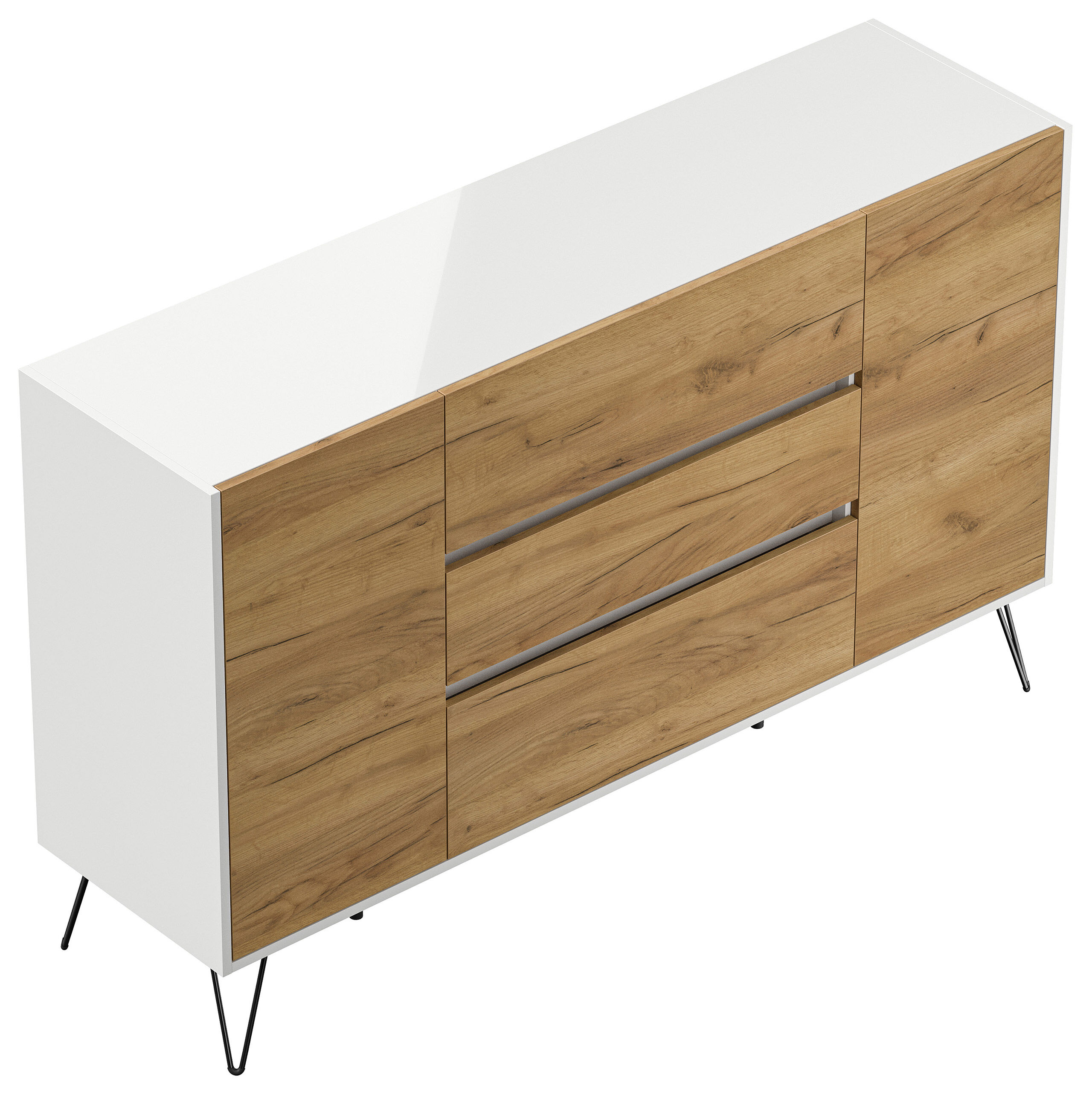 Sideboard Yako XL 155cm 3 SoftClose 2 Türen Weiß/Eiche Front