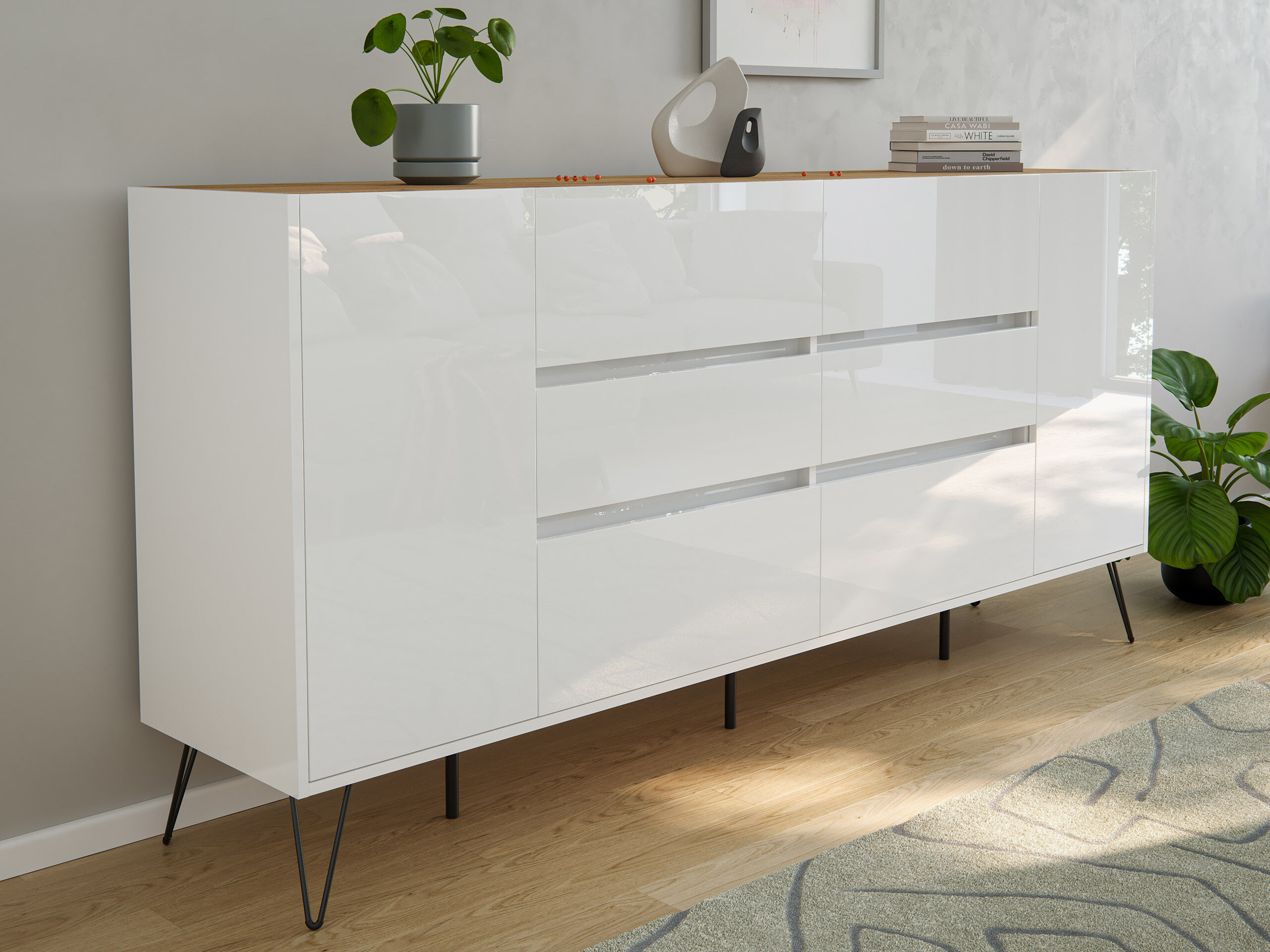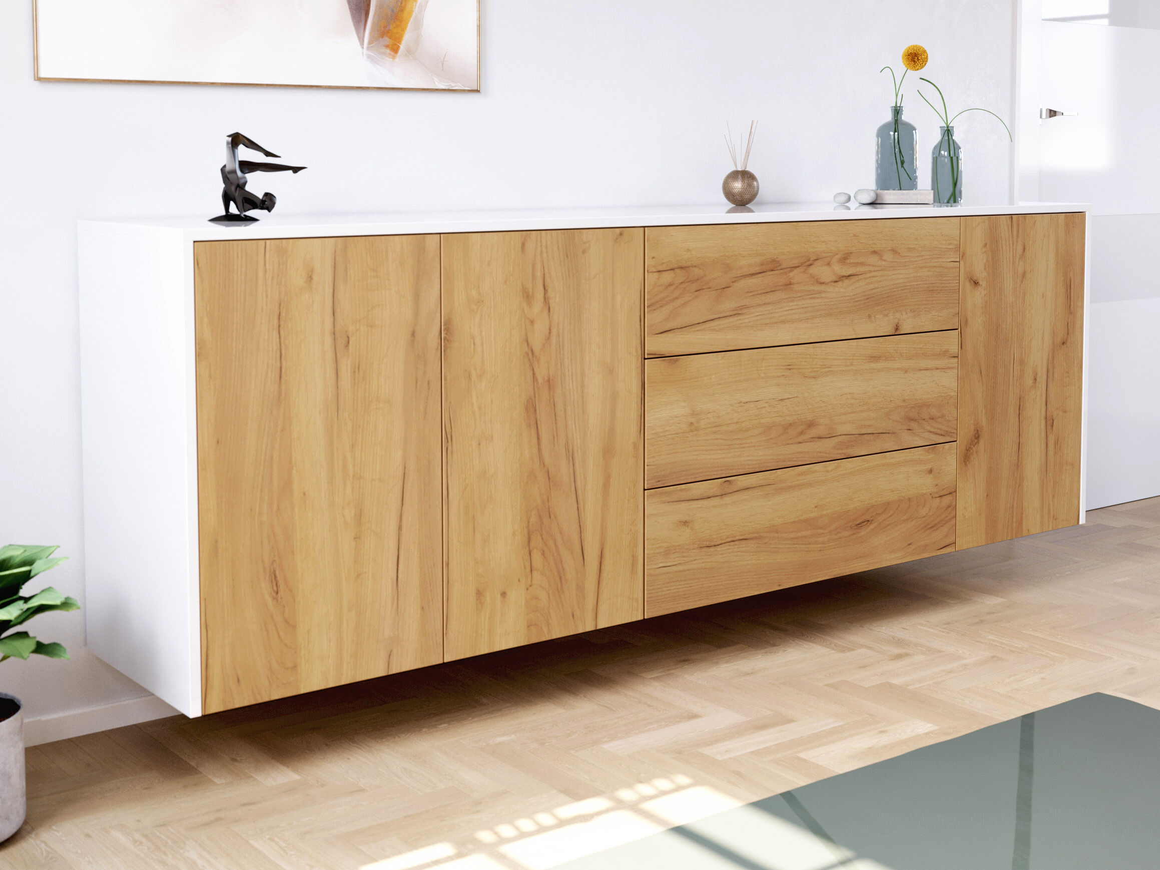 Sideboard Silia B hängend 200cm 3 Türen 3 Pushauszüge Weiß Hgl Eiche