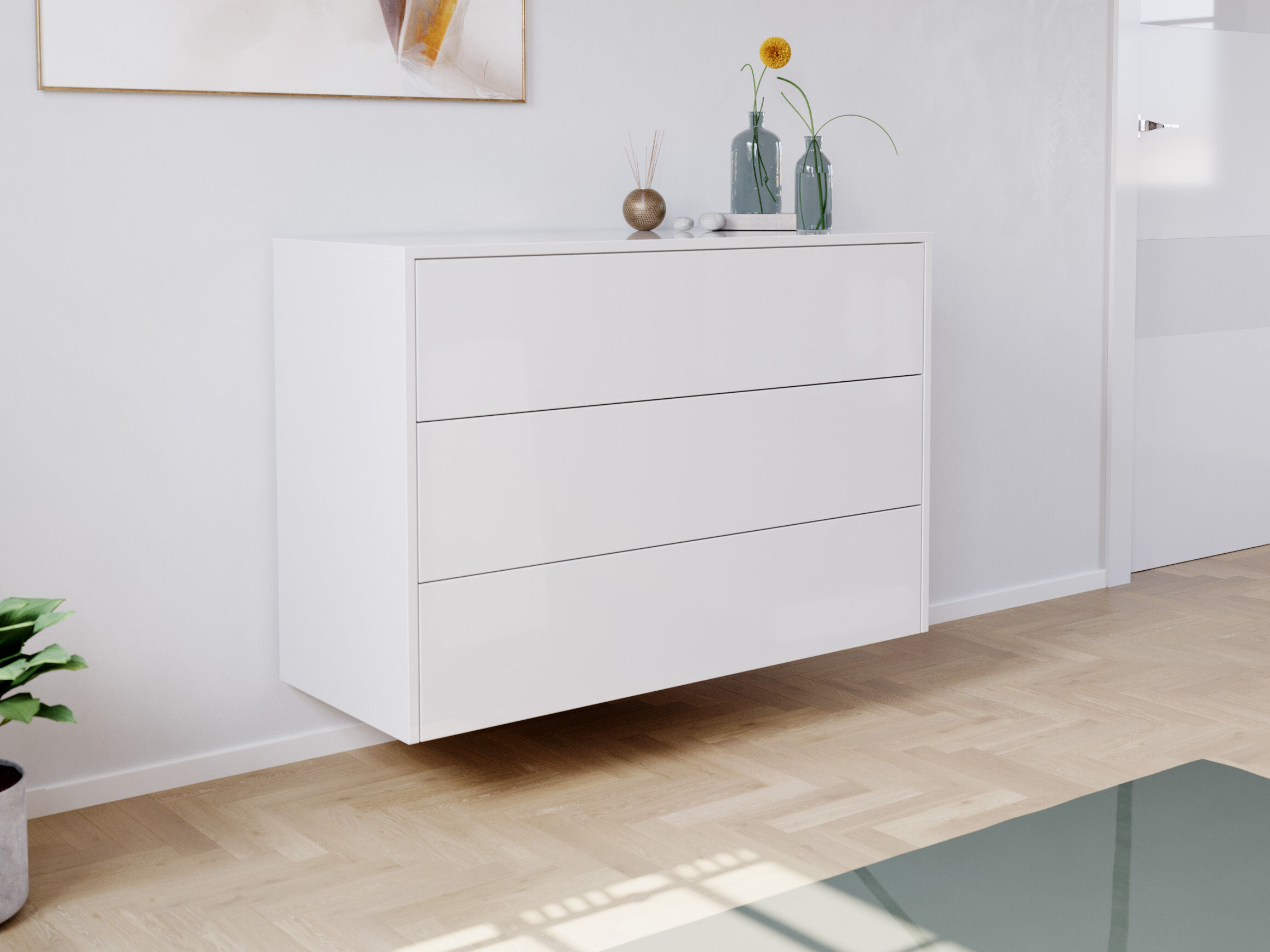 Sideboard Kommode Hero B hängend 100cm 3 Pushauszüge Weiß Hgl