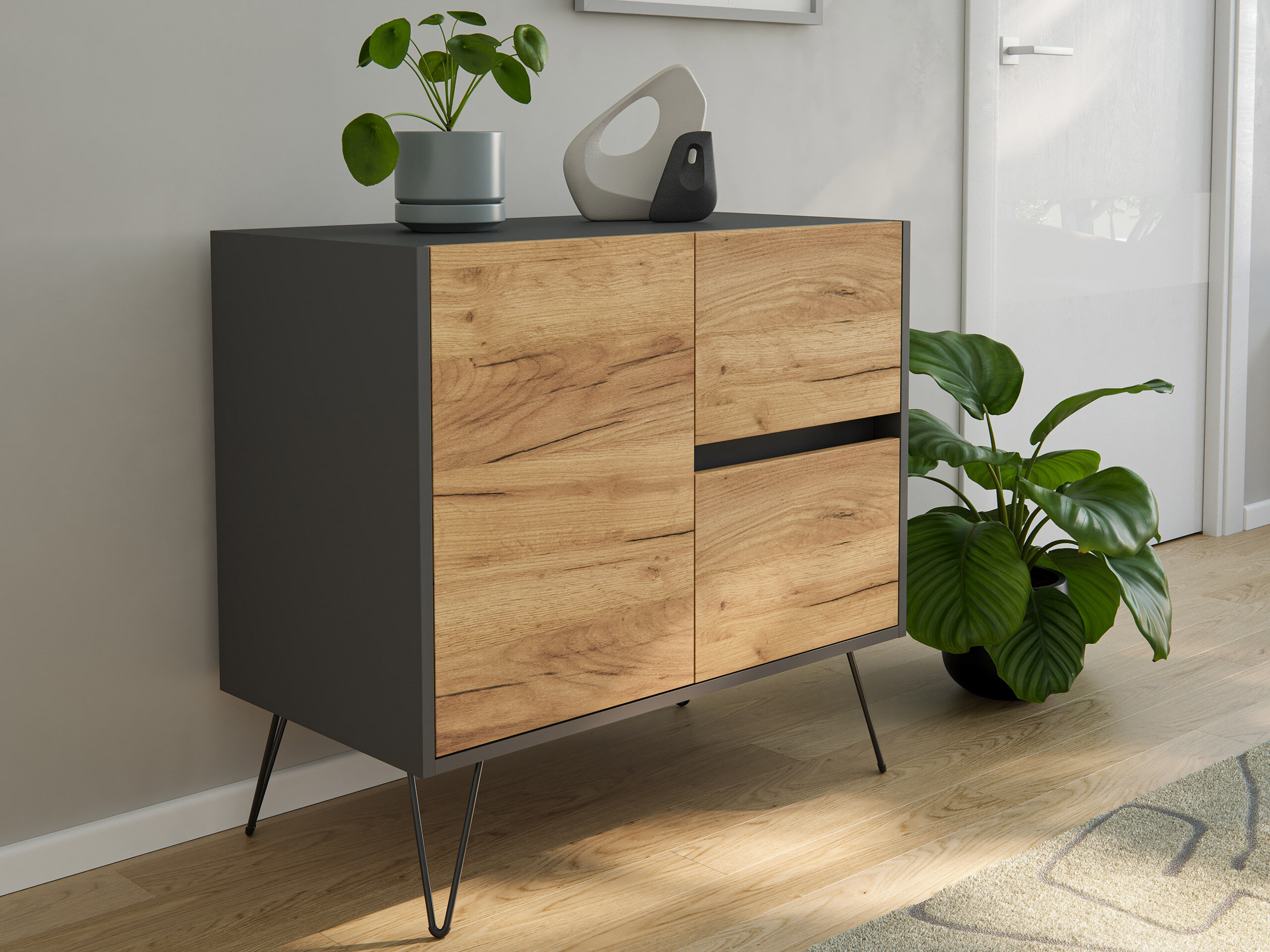 Sideboard Yako 80cm 2 SoftClose 1 Tür Grafit/Eiche Front